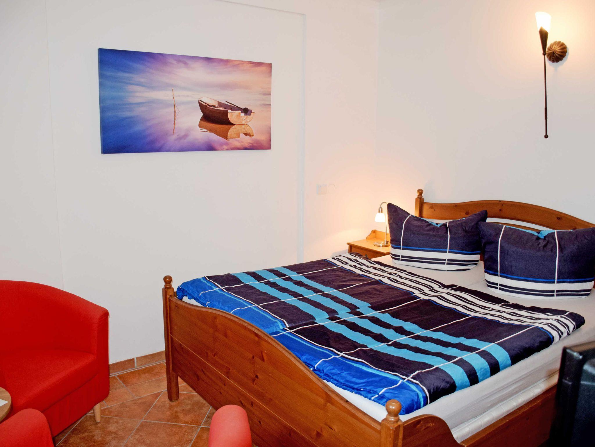 Die vier Nichtraucher-Ferienwohnungen (separater Eingang, 25-35 qm, 1 Wohnzimmer, 1-2 Schlafzimmer, Küchenzeilen, Bad mit Dusche oder Wanne und WC, WLAN-Internet, max. 2 - 4 erwachsene Gäste und ein Kind im Kinderreisebett) sind modern und komfortabel eingerichtet. Zum Objekt gehört im Erdgeschoss ein großer Aufenthaltsraum mit kleiner Bibliothek und Kamin, der zum Verweilen und Entspannen einlädt. Der Innenhof mit einem Grillkamin sowie einer allgemein zugänglichen Terrasse ist für alle Urlauber des Hauses nutzbar.