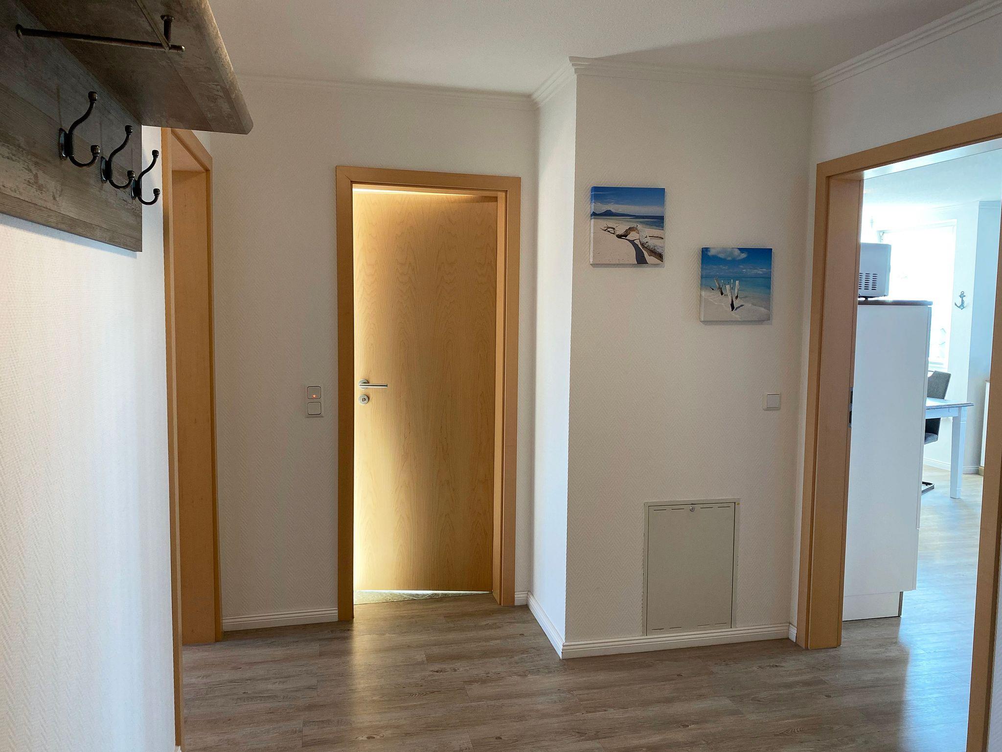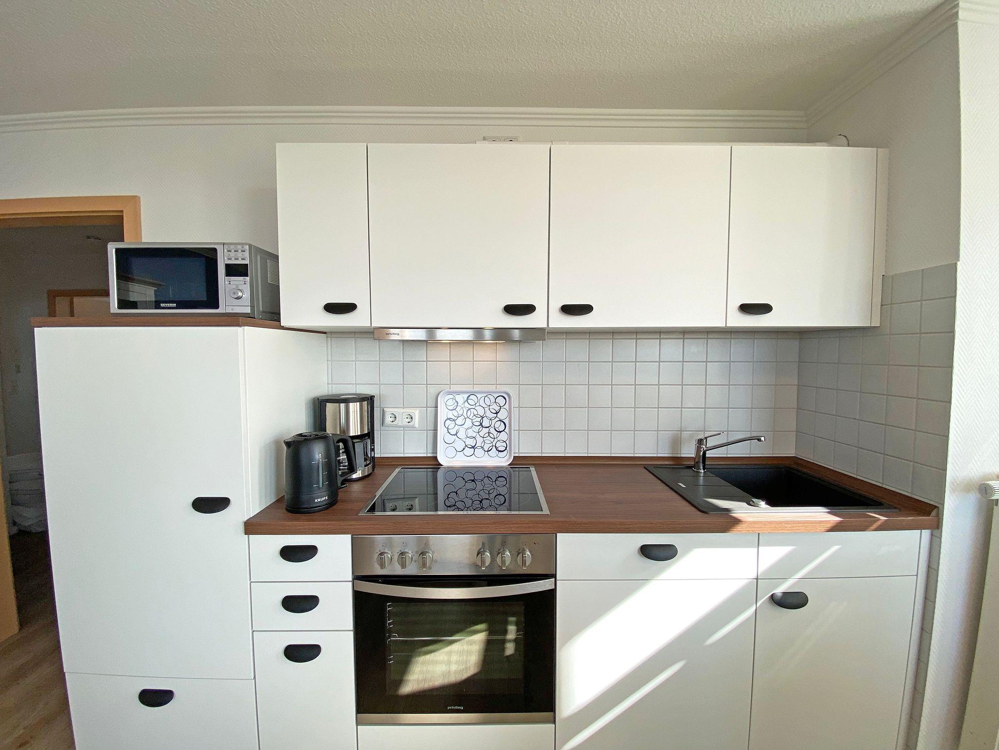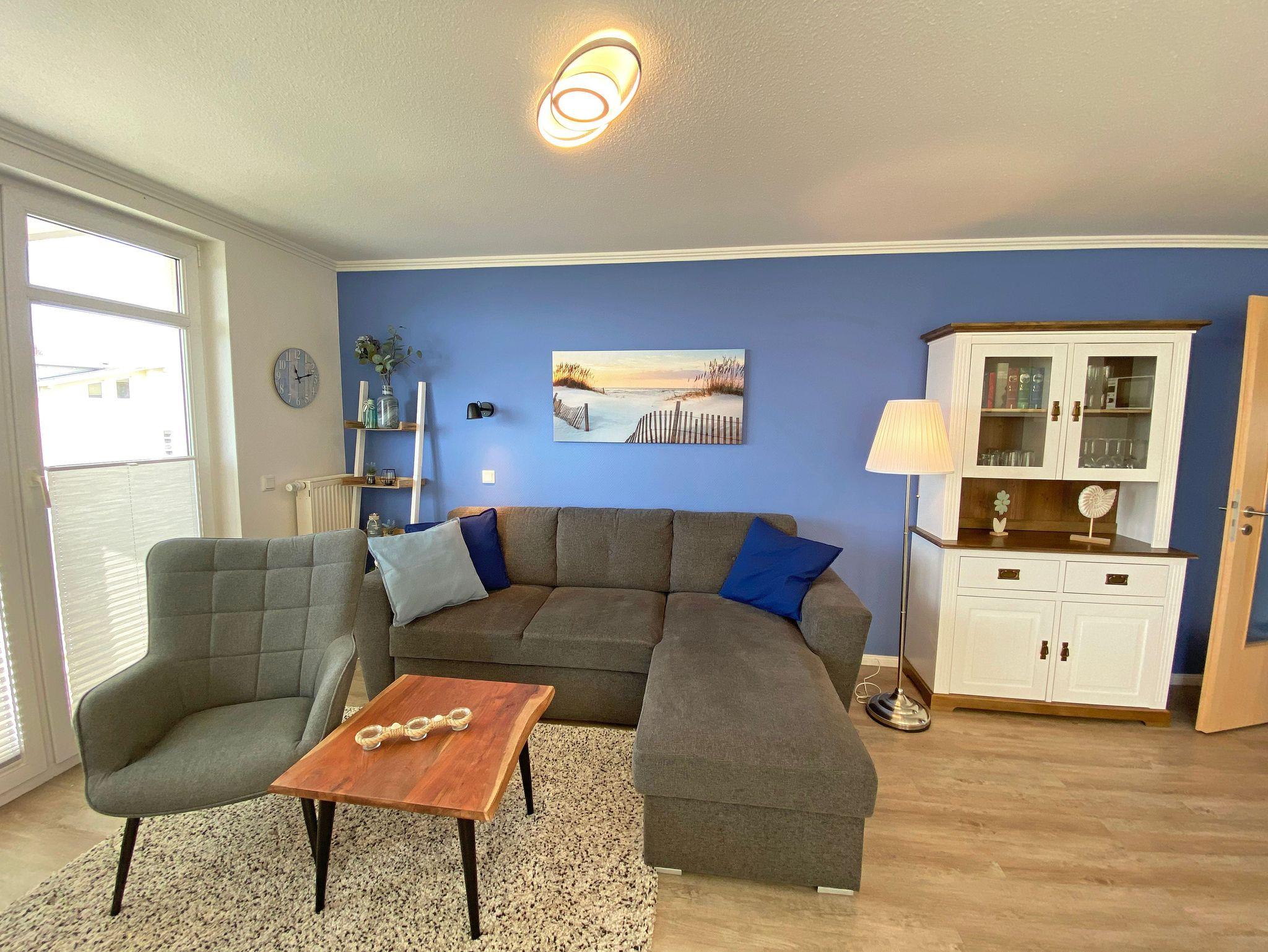 Unsere komfortable Nichtraucherwohnung von ca. 60 qm für 2 bis max. 4 Erwachsene und 1 Kleinkind im Kinderreisebett bis 3 Jahre verfügt über ein Schlafzimmer mit einem Boxspringbett (1,80m x 2,00m), einen Kleiderschrank, Nachttische, ein Sideboard sowie ein zweiter Smart-TV. Im zweiten kleineren Schlafzimmer befindet sich ein Boxspringbett (1,40m x 2,00m), ein weiterer Kleiderschrank sowie ein Nachttisch. Vom hellen Wohnbereich mit einem 2-Sitzer, Sessel, Vitrine, TV-Board, mit Smart TV und Ministereoanlage gelangen Sie auf den bestuhlten Balkon mit Sonnenschirm und können von hier aus den einmaligen Blick auf die Ostsee genießen. WLAN ist für Sie inklusive nutzbar! Die moderne Küchenzeile bietet Ihnen einen Esstisch mit 4 Stühlen, einen Geschirrspüler, ein 4 Zonen-Ceranfeld mit Backofen, eine Mikrowelle, ein Toaster, eine Kaffeemaschine, ein Wasserkocher, ein Kühlschrank mit Eisfach, eine Dunstabzugshaube sowie diverse Küchenutensilien. Das Badezimmer mit Fenster ist mit einer Dusche, einem WC, ein Kosmetikspiegel und einen Fön ausgestattet. Die Fenster verfügen teilweise über einen Insektenschutz. Ein Kinderreisebett (ohne Matratze und Bett Inlett) und ein Hochstuhl können für unsere kleinen Gäste gegen eine Gebühr gestellt werden. Ein PKW-Stellplatz (Nr. 04) sowie eine Unterstellmöglichkeit für Ihre Fahrräder ist direkt am Haus vorhanden. Ein Haustier ist gegen eine Gebühr ein gern gesehener Gast. Die Erstausstattung eines Wäschepaketes (komplette Bettwäsche, 1 Duschhandtuch, 1 kleines Handtuch) können Sie bis 14 Tage vor der Anreise gegen einen Aufpreis dazu buchen oder durch eigene ergänzen. Ab 2 gebuchten Paketen erhalten Sie einmalig 1 Geschirrtuch und einen Duschvorleger dazu.