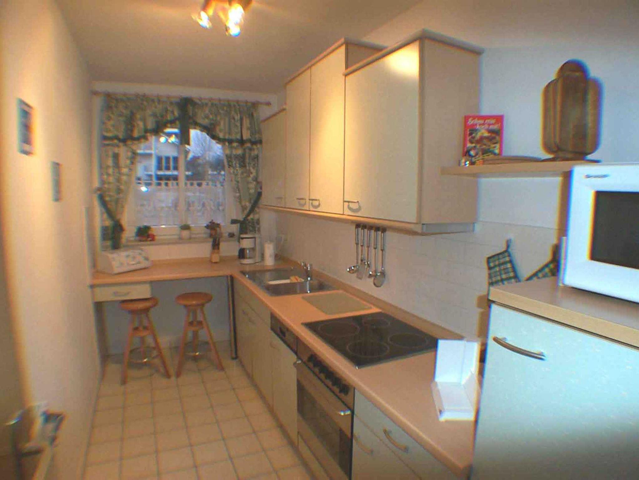 Von der Diele aus erreichen Sie u.a. die geflieste und komplett eingerichtete Küche (inkl. Mikrowelle, E-Herd, Kühlschrank mit Gefrierteil, Geschirrspüler) , wo Sie sich einen kleinen Snack zubereiten können.