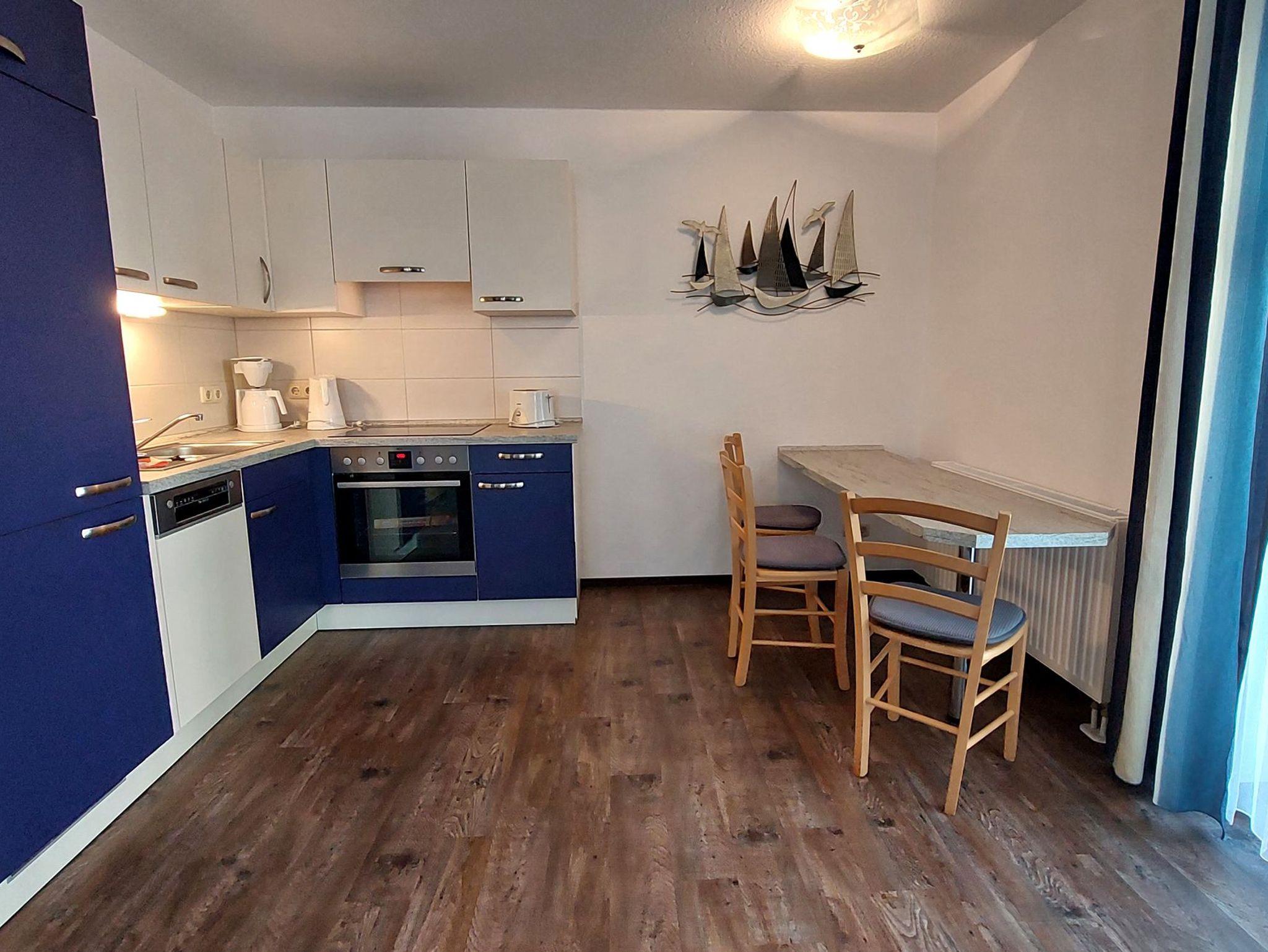 Diese freundliche Wohnung ist aufgeteilt in einen Wohnraum mit zwei Terrassen und integrierter Küchenzeile, ein Schlafzimmer und ein Duschbad mit Waschtisch und WC. Das Wohnzimmer begrüßt Sie mit einem Schlafsofa und Sessel sowie Flachbild-TV. Das geräumige Schlafzimmer verfügt über ein Doppelbett (1,80m x 2m) sowie einen Kleiderschrank. Die Küchenzeile ist mit Backofen, Geschirrspüler, Cerankochfeld, Kühlschrank mit kleinem Gefrierfach, Cerankochfeld, Microwelle, Kaffeemaschine, Wasserkocher und Toaster ausgestattet. Highlights: Kostenfreies WLAN sowie ein frei wählbarer PKW-Stellplatz direkt am Haus. Haustiere sind in dieser Wohnung herzlich willkommen.