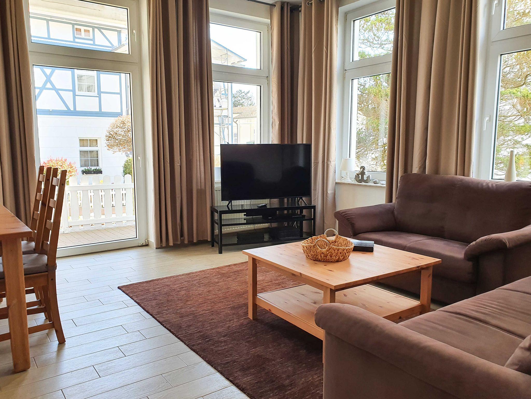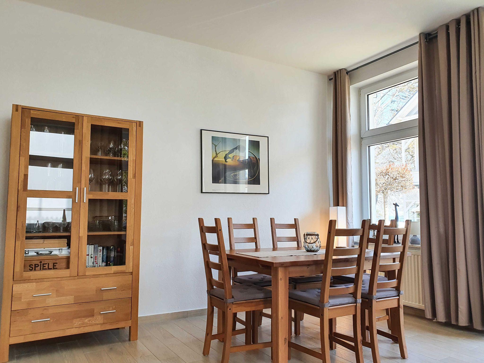 Die in 2014 vollständig hochwertig sanierte und renovierte ca. 79 qm große 3-Raum Ferienwohnung für 4-(5) Personen befindet sich im Erdgeschoss des Appartementhauses am Ende einer ruhigen Sackgasse mit Seeblick ca. 3 Minuten vom Strand entfernt. Große Fensterfronten, großzügige Deckenhöhe und eine schöne Terrasse mit Vorgarten zum entspannen, runden das Bild ab.
