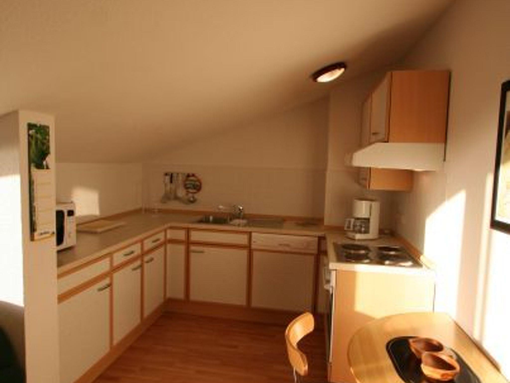 Das stilvolle 2-Zimmer-Appartement im Dachgeschoss bietet auf ca. 48 m² Wohnfläche Platz für bis zu vier Personen. Ein separates Schlafzimmer mit Doppelbett sowie ein Wohnbereich mit Schlafcouch, Essplatz und voll ausgestatteter Küchenzeile inklusive Geschirrspüler und Mikrowelle schaffen ein angenehmes Wohnambiente. Das moderne Bad ist mit Dusche/WC ausgestattet. Ein Balkon mit Blick auf die Ostsee, SAT-TV, ein Safe im Flur sowie ein Außenstellplatz für den PKW runden das Angebot ab.