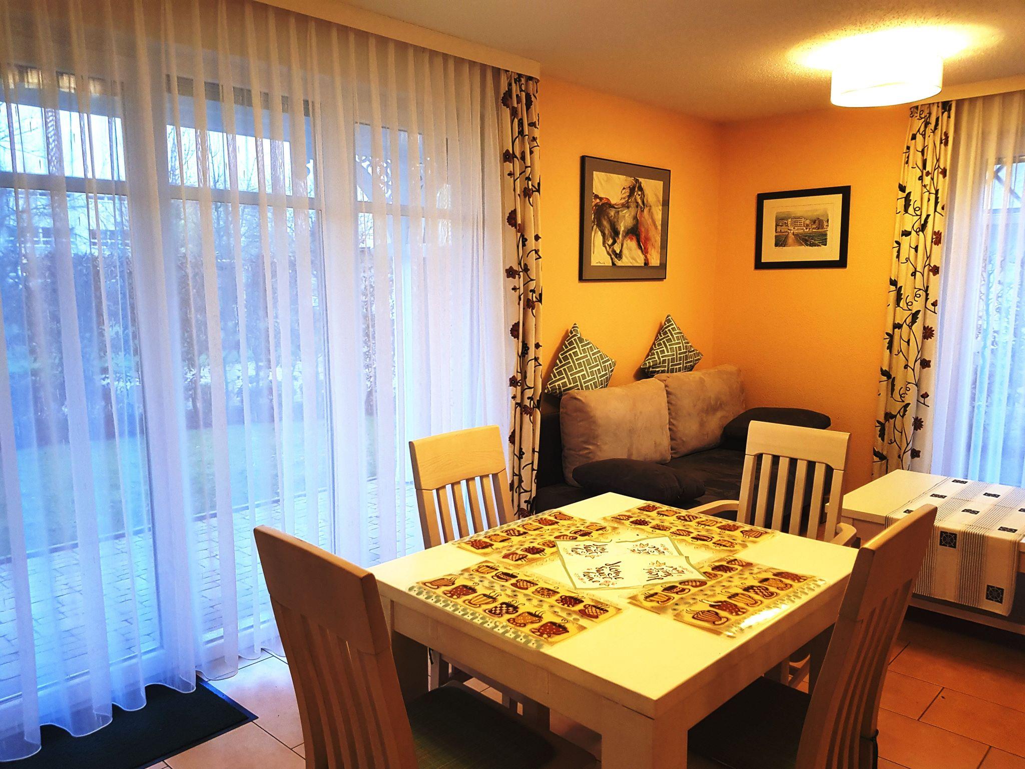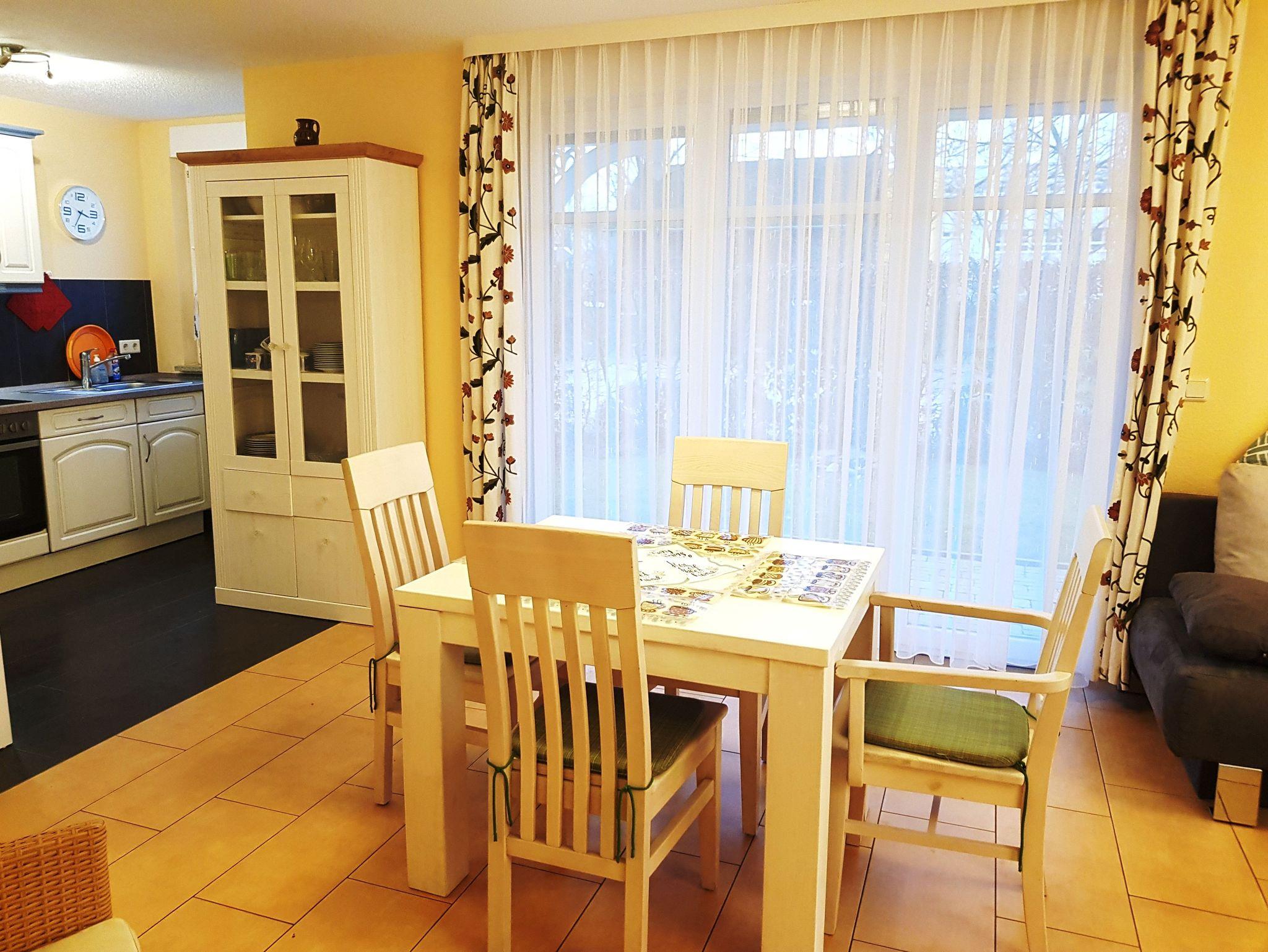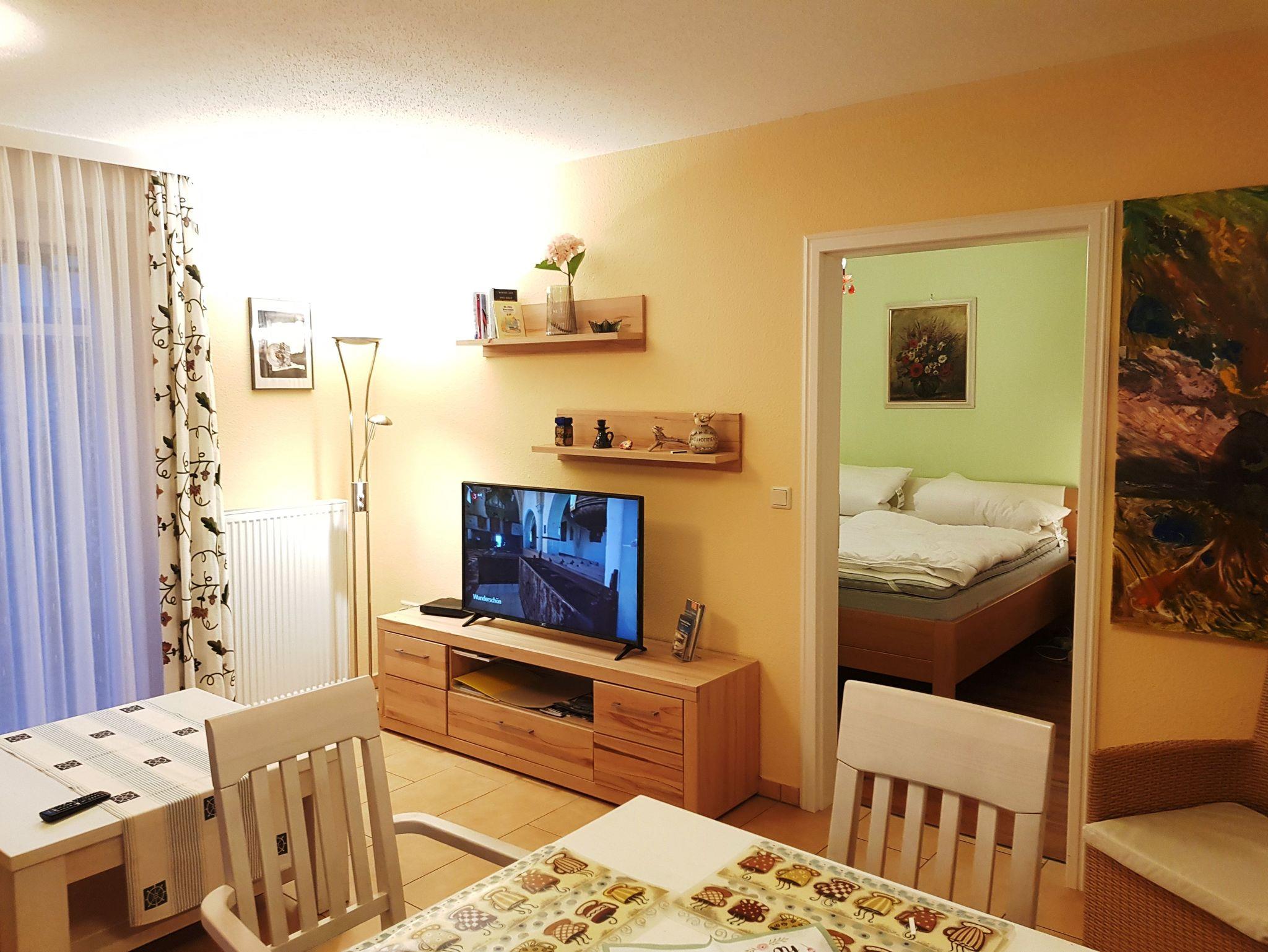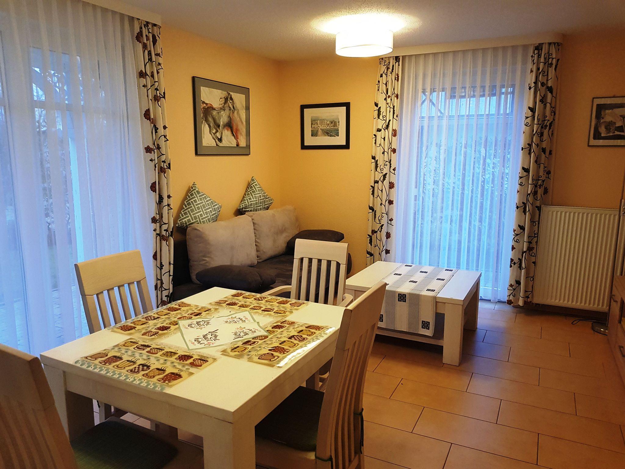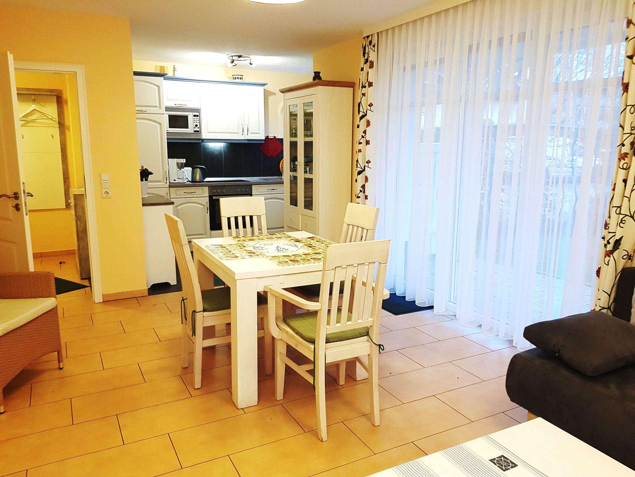 Diese schöne 2 Raumwohnung mit Terrasse befindet sich in einem Haus mit mehreren Ferienwohnungen. Direkt am Haus befindet sich Ihr Parkplatz. Für Ihre Fahrräder ist ein abschliesbarer Raum vorhanden.