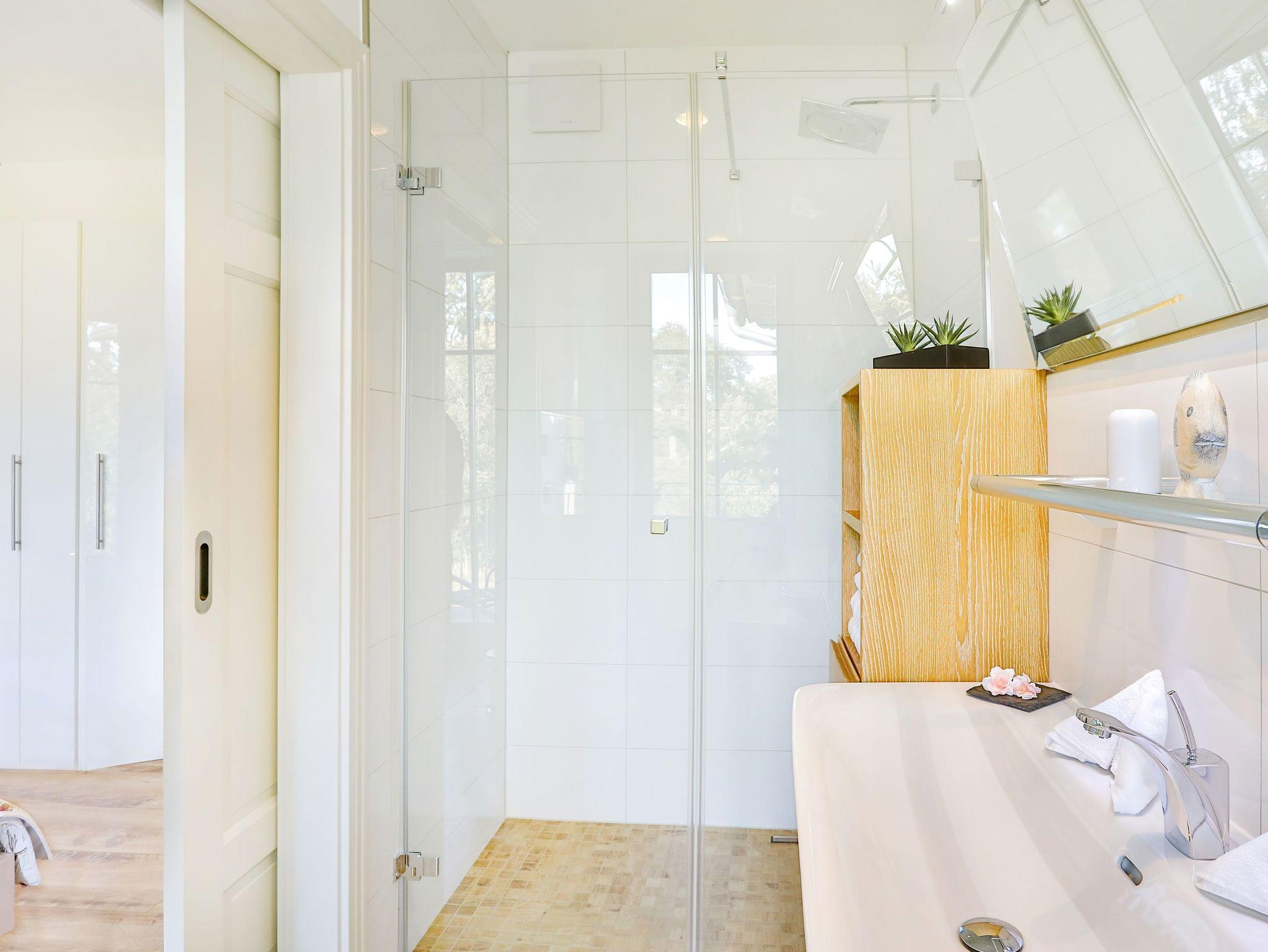 Genießen Sie Ihren Morgenkaffee auf dem möblierten Balkon mit Blick auf die malerische Landschaft und die Ostsee je nach Jahreszeit mit Meeresrauschen inklusive. Im Anschluss können Sie sich im Wellnessbad mit der hauseigenen Sauna entspannen oder einen Spaziergang am nahegelegenen Strand unternehmen. Die zwei Balkone sind sowohl vom Wohnraum als auch von den Schlafzimmern aus begehbar.