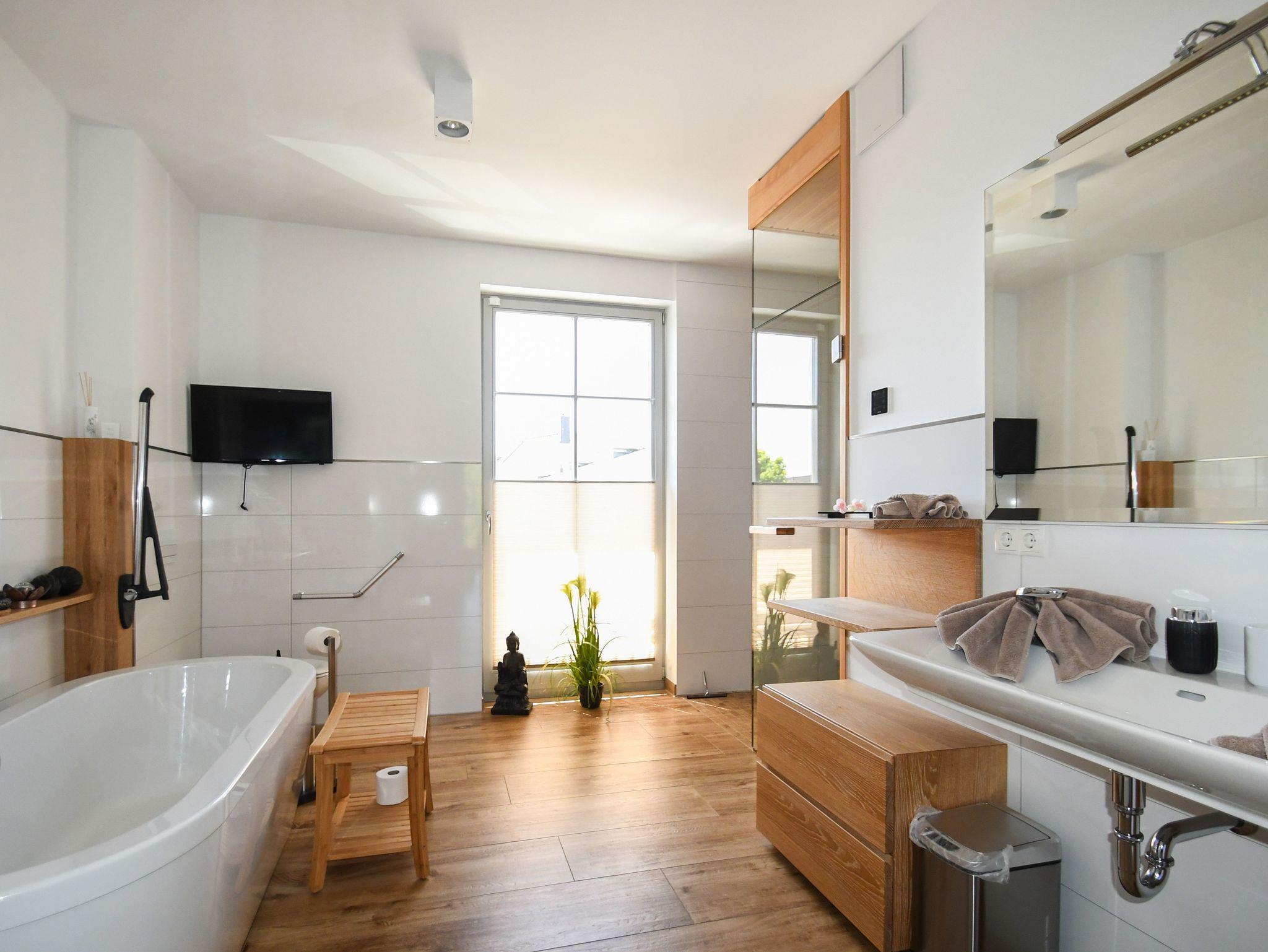 Weiterhin überzeugt die Ferienwohnung mit einer privaten finnischen Sauna im Wellnessbad!