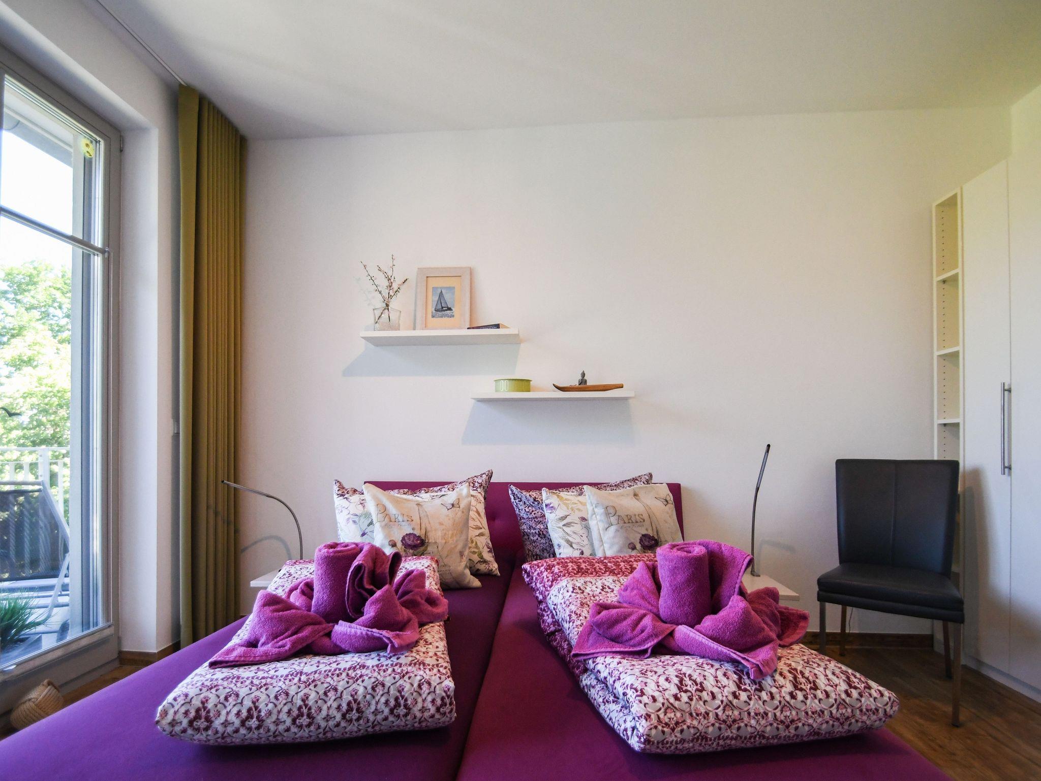 Genießen Sie Ihren Rügen Urlaub in dieser wunderschönen, exklusiv eingerichteten Nichtraucher Penthouse-Ferienwohnung. Freuen Sie sich auf einen L- förmigen großen Balkon zur Meerseite, der mit 2 Relaxliegen und Sitzgelegenheiten zu einem entspannten Frühstück einlädt und einem kleinen Balkon. Beide sind von fast allen Zimmern begehbar.