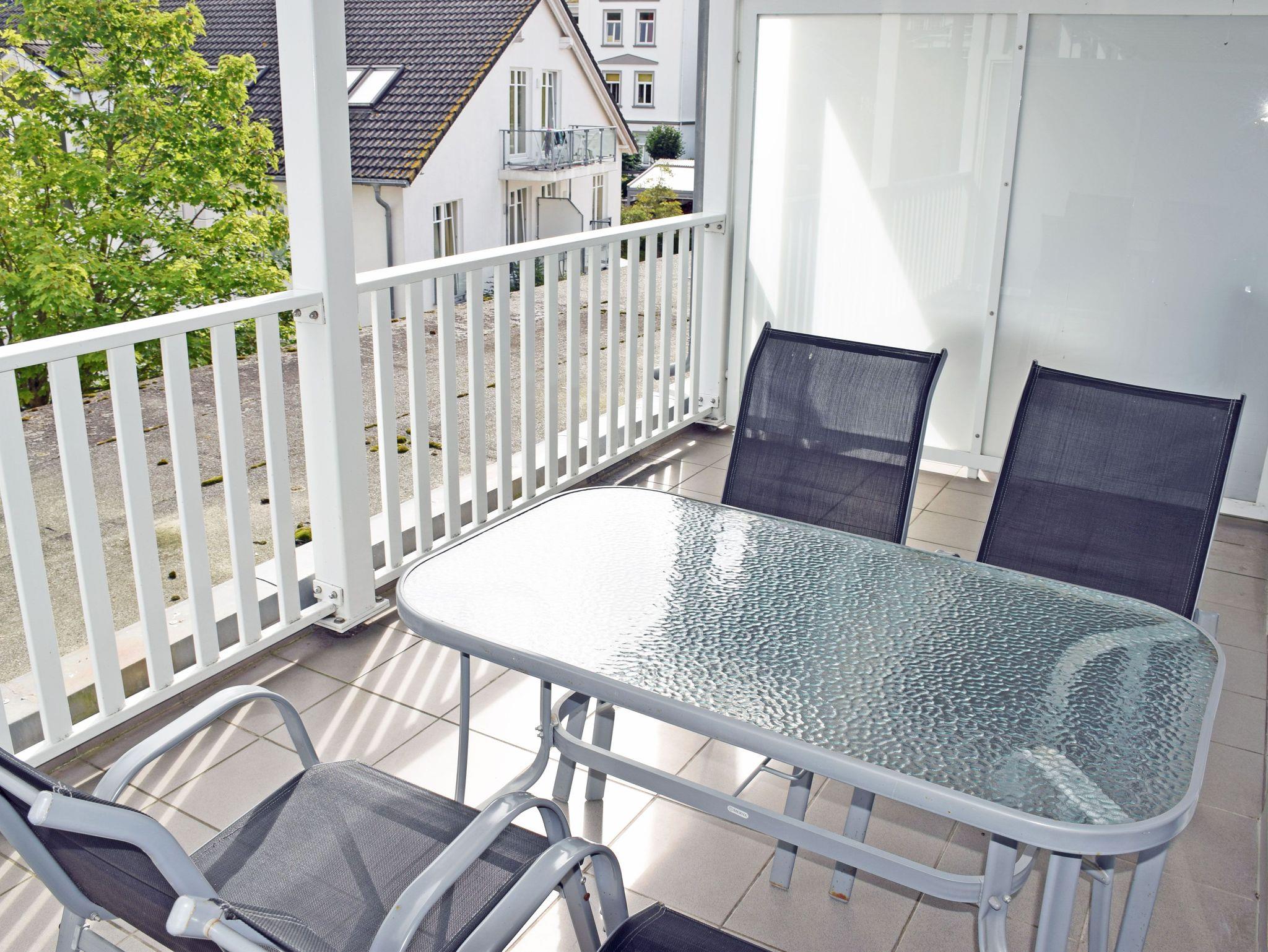 Der schöne Balkon mit Gartenmöbeln lädt zu gemütlichen Stunden ein. Hier können Sie die Abende bei einem Glas Wein ausklingen lassen und jederzeit die gute Ostseeluft und Sonne auf Rügen genießen.