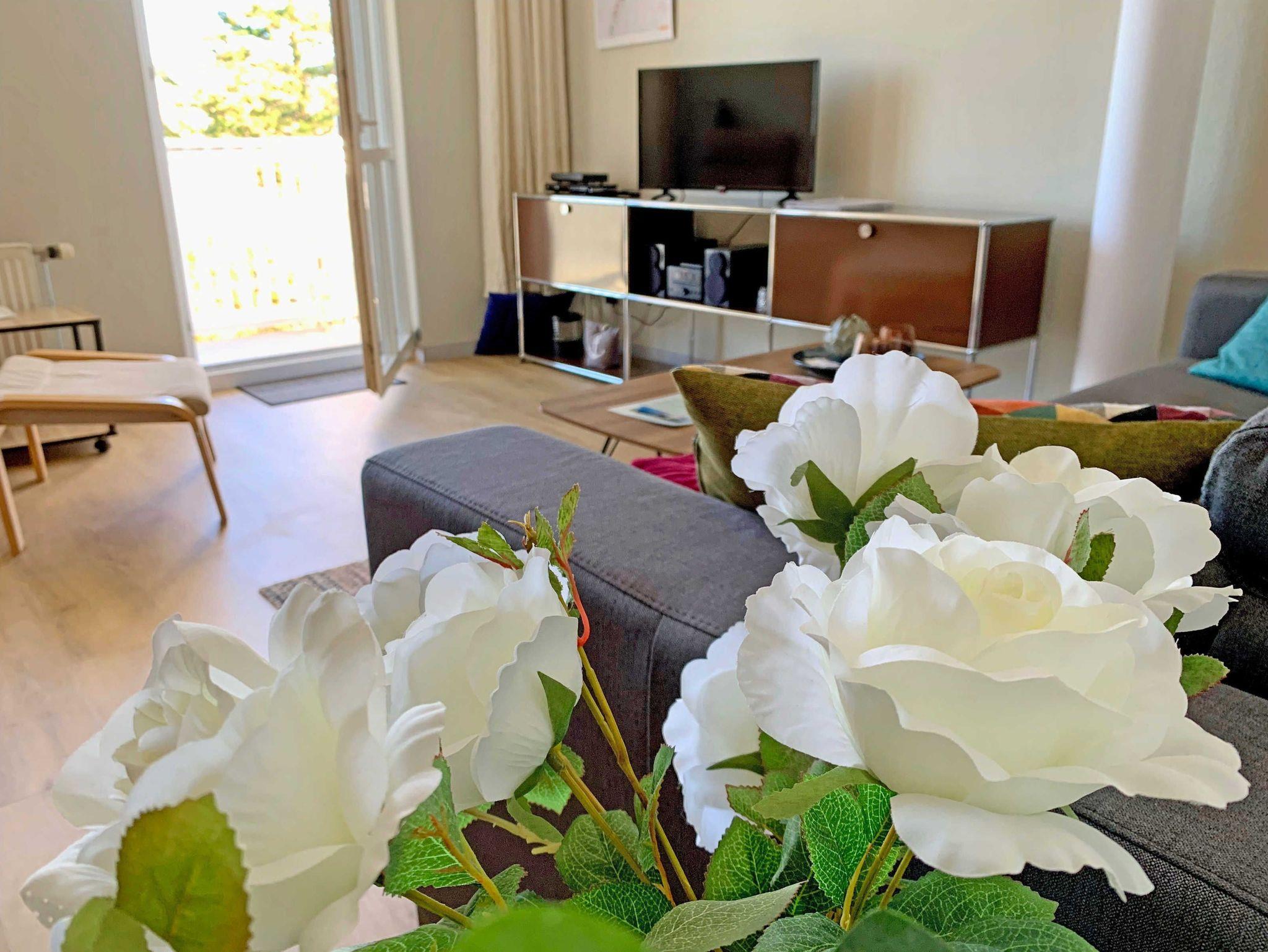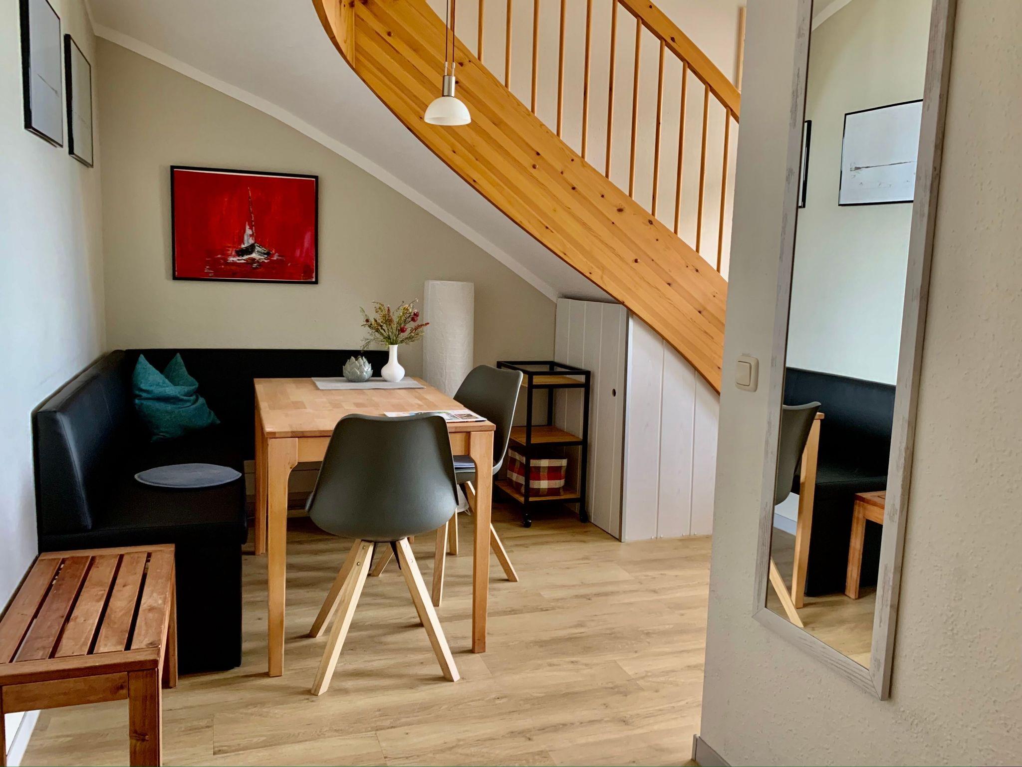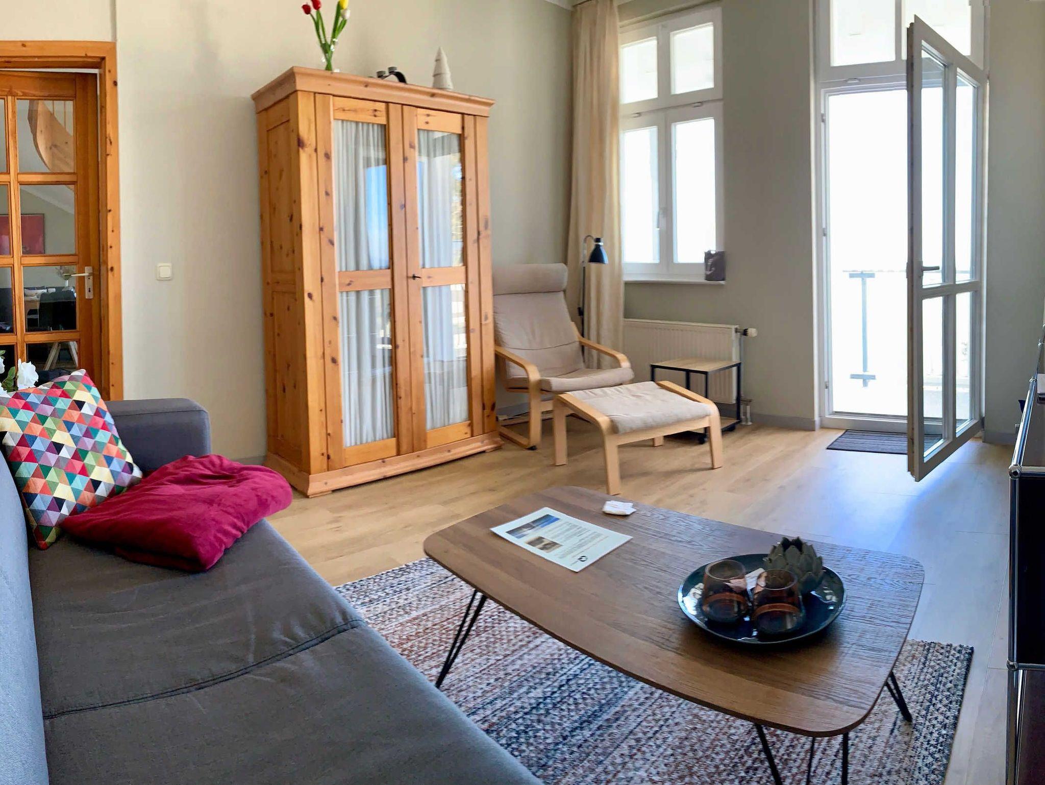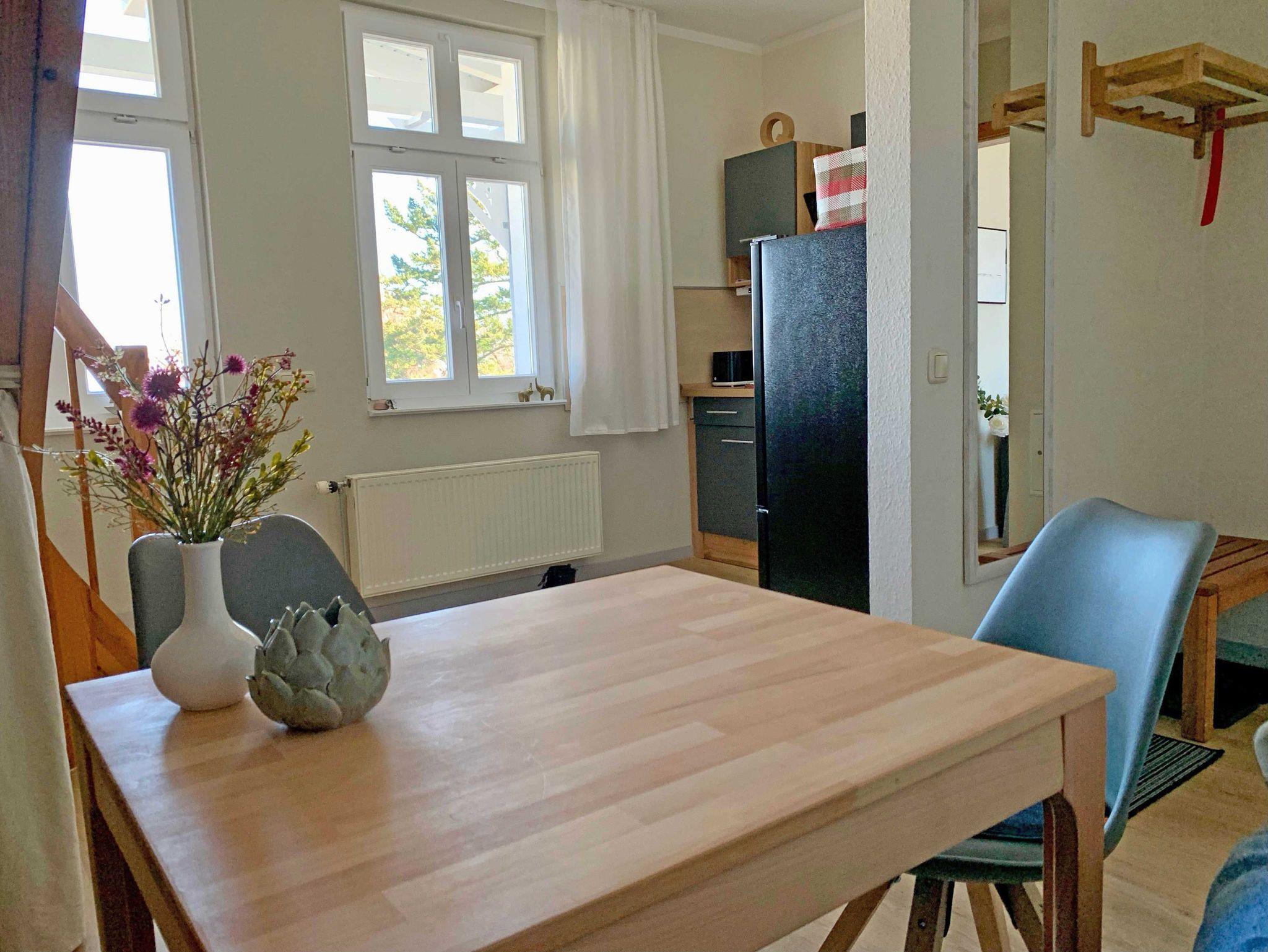 Die 2-Raum-Maisonette-Ferienwohnung hat einen schönen Ostseeblick von allen Zimmern aus. Sie ist ca. 70 qm groß, hat Platz für maximal 4 Erwachsene und 1 Kind bis 3 Jahre im Kinderreisebett. Die Wohnung wurde modern und komfortabel eingerichtet und verfügt auch über einen WLAN-Internetanschluss.