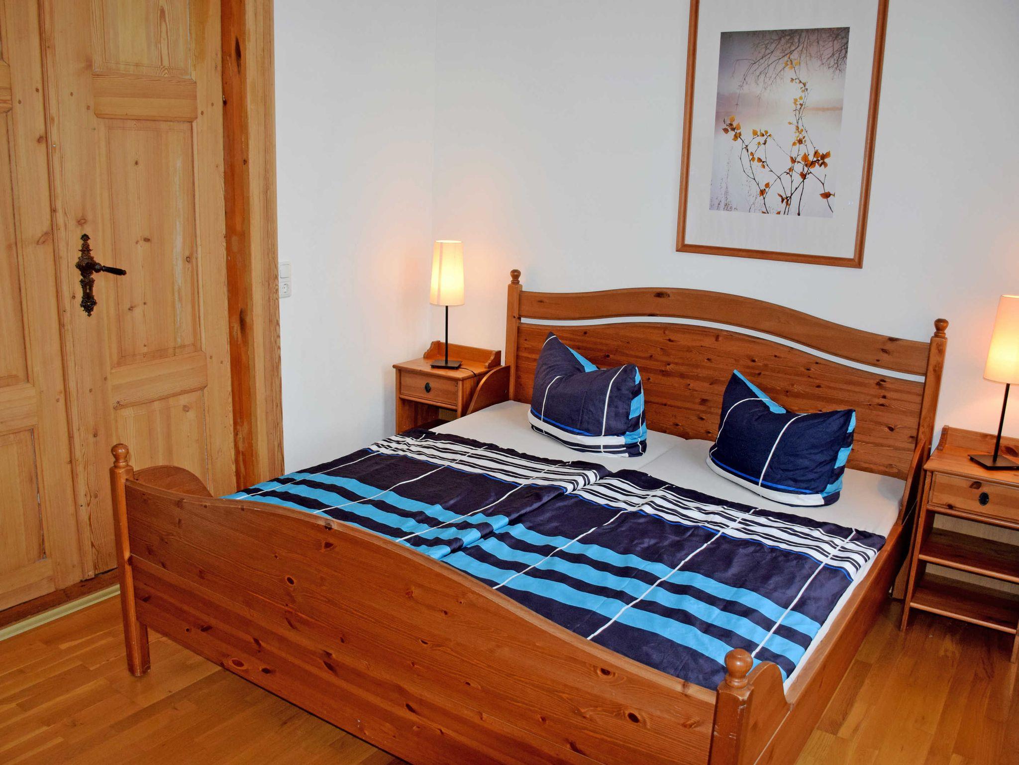 1 Schlafzimmer mit Doppelbett (180 x 200 cm), Nachttischen und Kommode sowie Zugang zum 2. Bad.