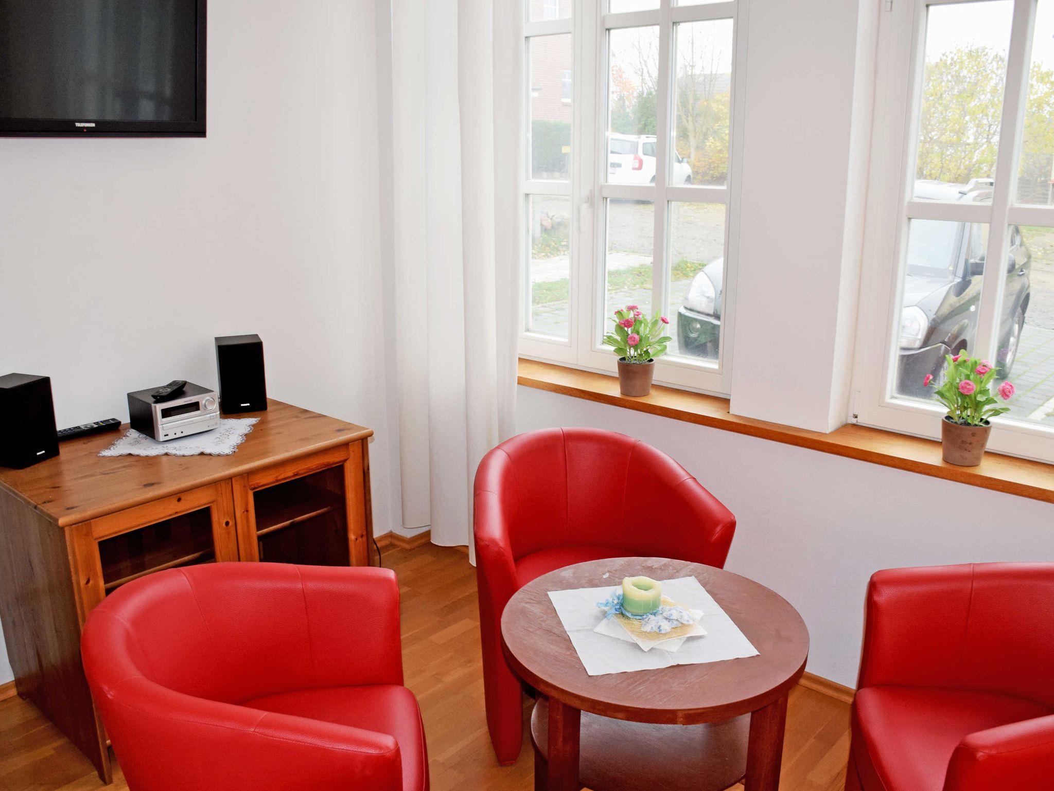 Die vier Nichtraucher-Ferienwohnungen (separater Eingang, 25-35 qm, 1 Wohnzimmer, 1-2 Schlafzimmer, Küchenzeilen, Bad mit Dusche oder Wanne und WC, WLAN-Internet, max. 2 - 4 erwachsene Gäste und ein Kind im Kinderreisebett) sind modern und komfortabel eingerichtet. Zum Objekt gehört im Erdgeschoss ein großer Aufenthaltsraum mit kleiner Bibliothek und Kamin, der zum Verweilen und Entspannen einlädt. Der Innenhof mit einem Grillkamin sowie einer allgemein zugänglichen Terrasse ist für alle Urlauber des Hauses nutzbar.