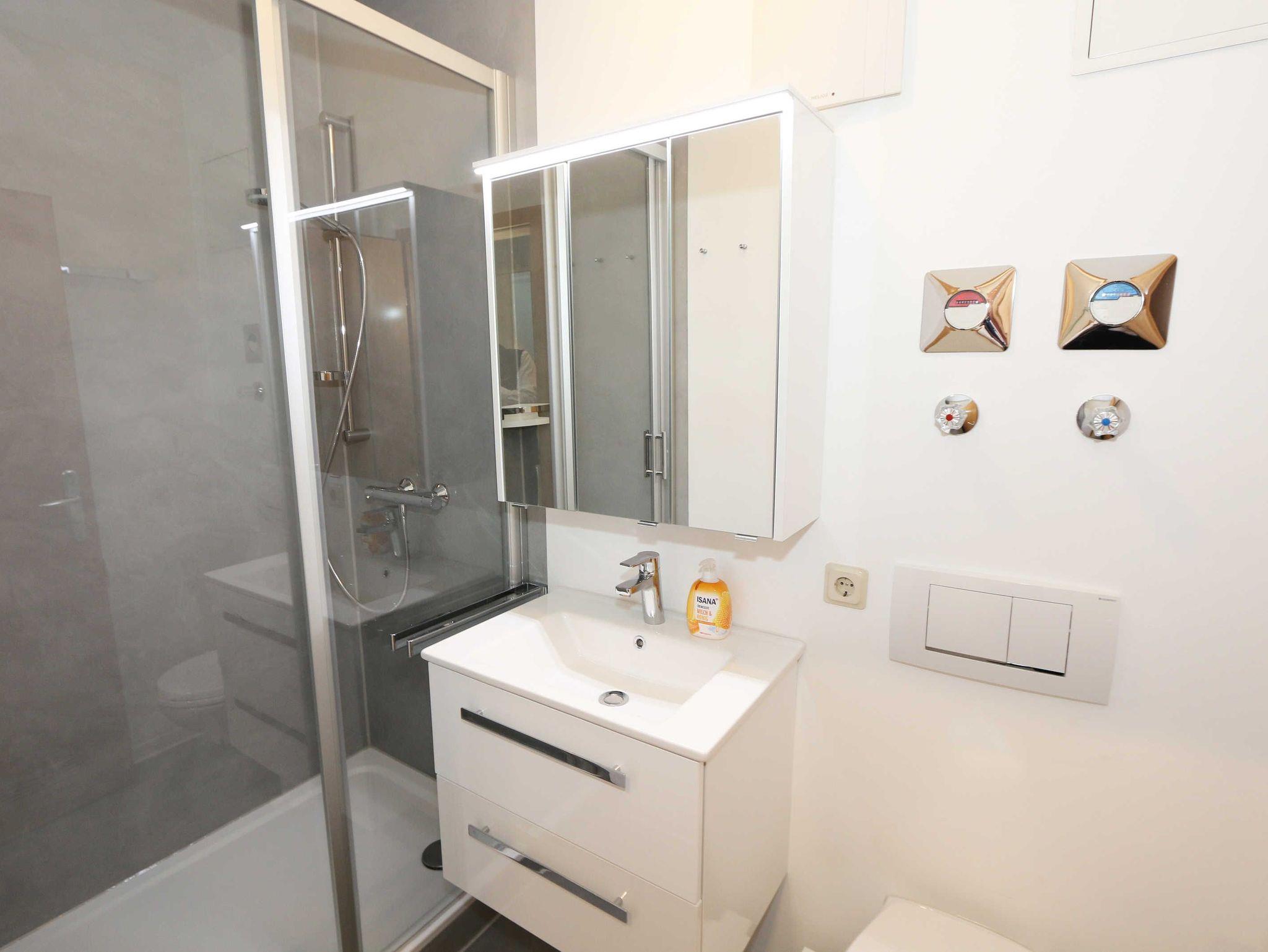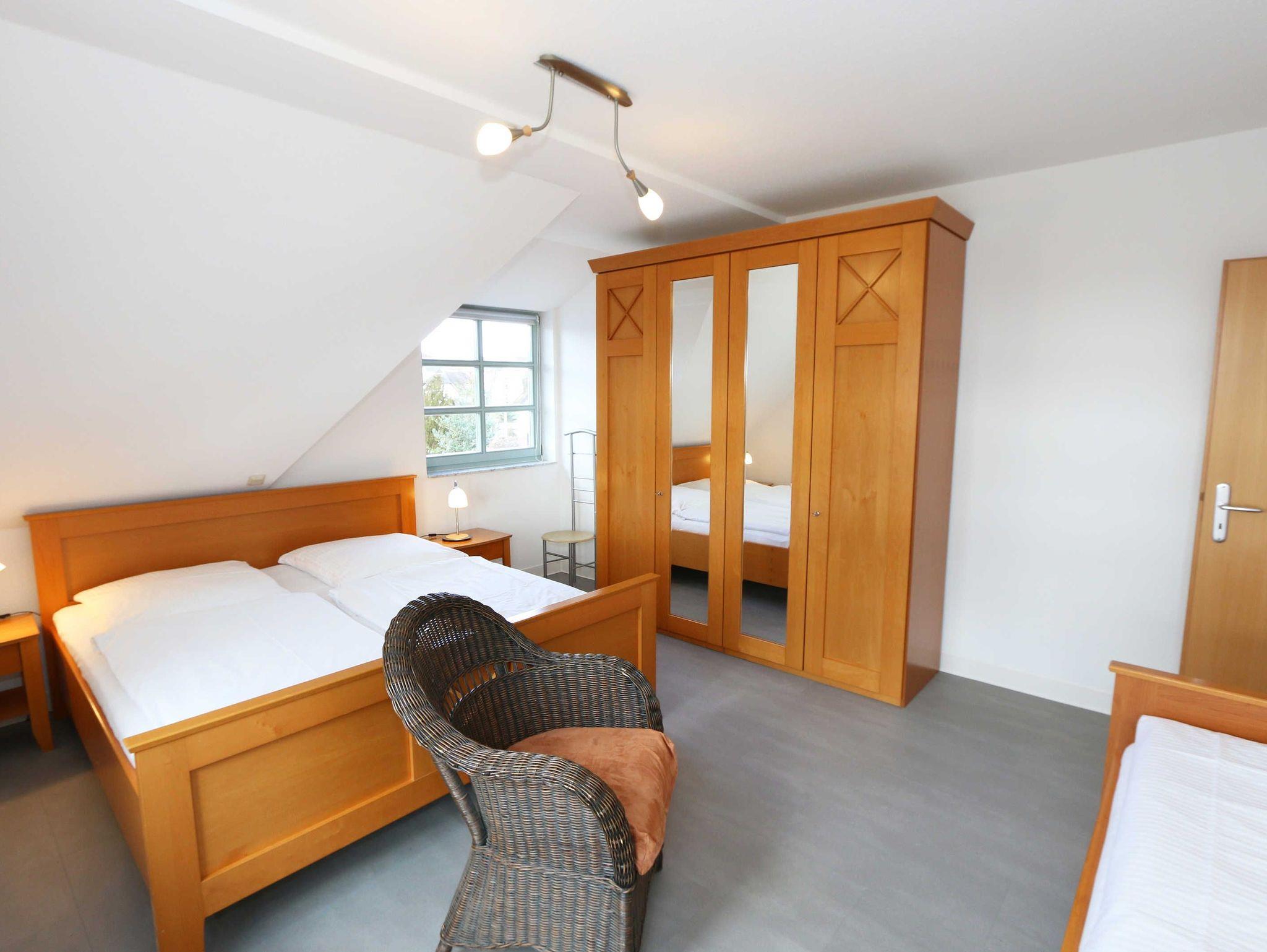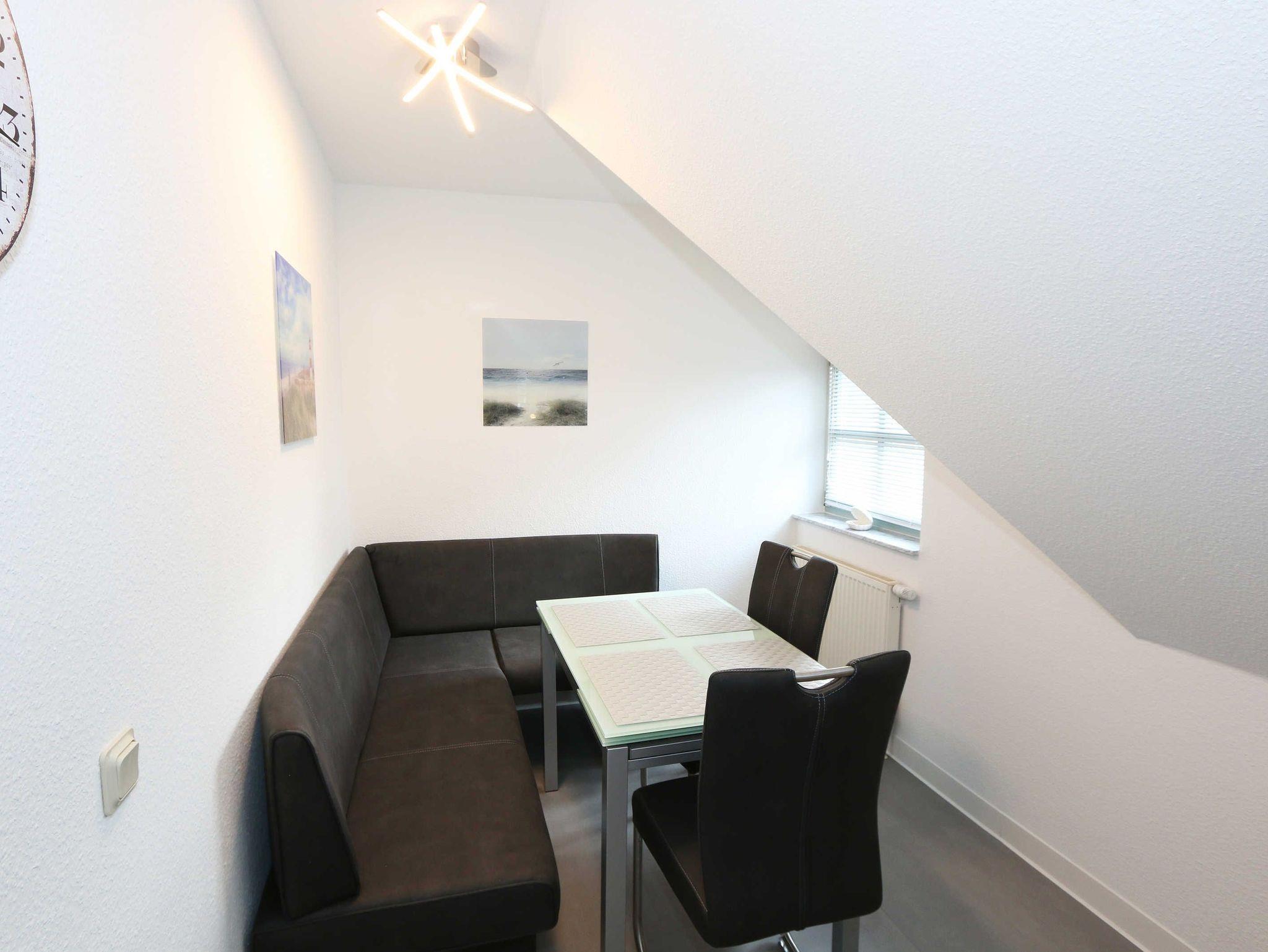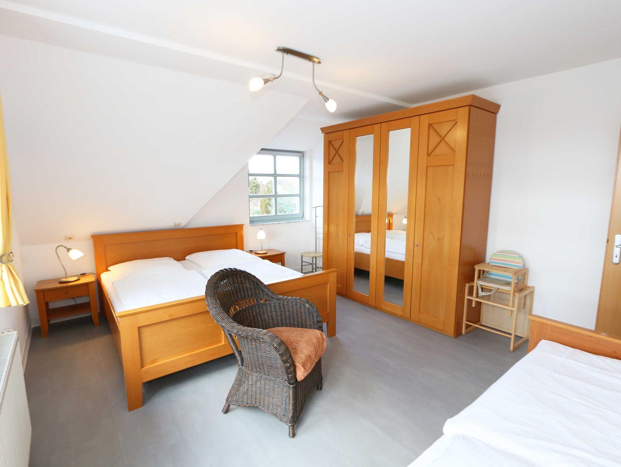 Die lichtdurchflutete, komfortable Nichtraucherwohnung verläuft auf über 70 qm und ist ideal für 2 bis 4 Personen geeignet. Ein Kleinkind (bis 3 Jahre) kann im Kinderreisebett als Aufbettung (5. Person) untergebracht werden. Der vom Wohn- und Schlafbereich zu erreichende Balkon in Richtung Süden lädt zum Verweilen ein und erlaubt es Ihnen die Sonne sowie den Blick auf das Meer zu genießen. Im Rahmen der Renovierung im Februar 2020 wurde in der ganzen Wohnung ein neuer Vinylboden verlegt und eine neue, moderne Küche wurde eingebaut. Die Küchenzeile beinhaltet ein 4-Zonen-Ceranfeld, Backofen, Mikrowelle, Geschirrspüler, Kühlschrank mit Gefrierfach, Kaffeemaschine, Toaster, Wasserkocher sowie diverse Küchenutensilien. Der dazugehörige Essbereich wurde ebenfalls mit neuen Möbeln ausgestattet, hierzu gehören zwei Stühle, ein Glastisch sowie eine Sitzecke. Der Wohnbereich mit einer Couchecke (in wenigen Handgriffen zur 2. Schlafstätte für 2 Personen hergerichtet, 1,20m x 2,00m), ein Couchtisch, eine Leselampe, ein Flachbild-TV mit DVD-Player und CD-Stereoanlage runden das Ganze ab. Das großzügige Schlafzimmer ist mit einem Doppelbett (1,80 m x 2,00 m/HG 2), 2 Nachtschränken, 1 Einzelbett und einem großen Kleiderschrank mit Ganzkörperspiegel ausgestattet. 1 Kinderreisebett (ohne Matratze und Bett Inlett) und 1 Kinderhochstuhl sind für einen kleinen Gast inklusive. Das neu renovierte Bad ist mit einer komfortablen Dusche (1,20m x 0,80m) mit Glasschiebetür, WC sowie Waschtisch mit Unter- und Spiegelschrank ausgestattet. Ein Kosmetikspiegel sowie ein Fön befinden sich ebenso hier. Auch im Urlaub brauchen Sie auf einen Internetzugang (WLAN) in Ihrer Wohnung nicht zu verzichten. Dieser ist inklusive. Ein Parkplatz (Nr.06) gehört zu jeder Wohnung. Ihre Fahrräder können Sie auf dem Areal unter einem überdachten Fahrradständer abstellen. Im Untergeschoss des Hauses befindet sich zum Entspannen eine Sauna (gegen Gebühr) sowie für die sportliche Betätigung ein Tischtennisraum. Waschmaschine und Trockner können Sie gegen Gebühr nutzen. Die Erstausstattung eines Wäschepaketes (komplette Bettwäsche, 1 Duschhandtuch, 2 kleine Handtücher) können Sie bis 14 Tage vor Anreise gegen einen Aufpreis dazu buchen oder jedoch Ihre eigenen mitbringen. Ab 2 gebuchten Paketen erhalten Sie einmalig 1 Geschirrhandtuch und 1 Duschvorleger hinzu. Für Ihre Sicherheit in der Wohnung sorgen regelmäßig gewarteten Rauchmelder. Für einen angenehmen Schlaf im Dunkeln sorgen die vorhandenen Rollläden.