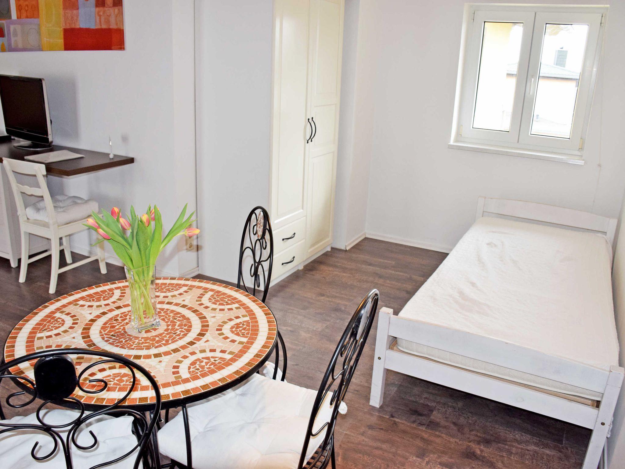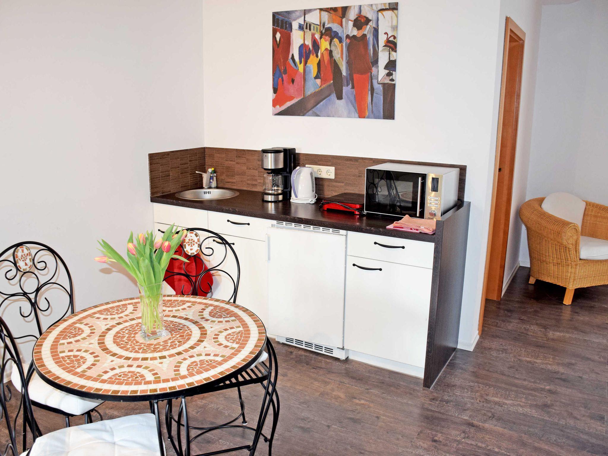 Es erwarten Sie sechs geräumige und stilvoll eingerichtete Appartements für je zwei Personen (Apartment 6 für 3 Personen).