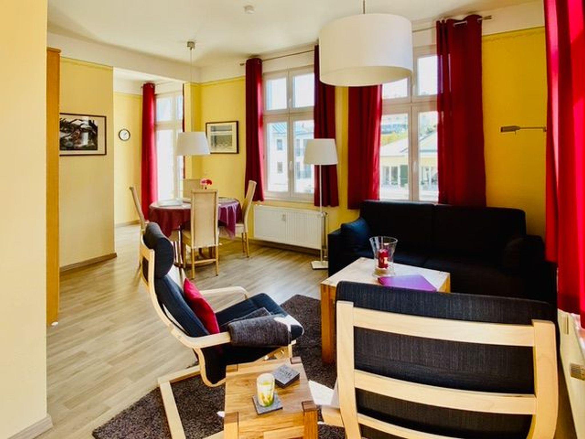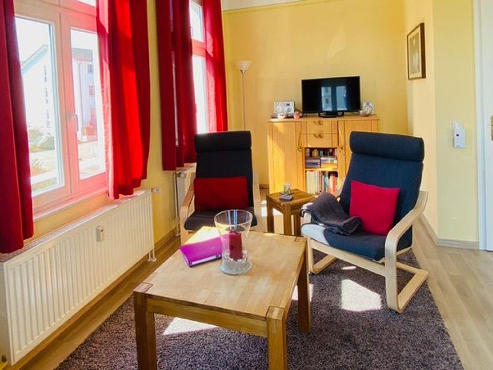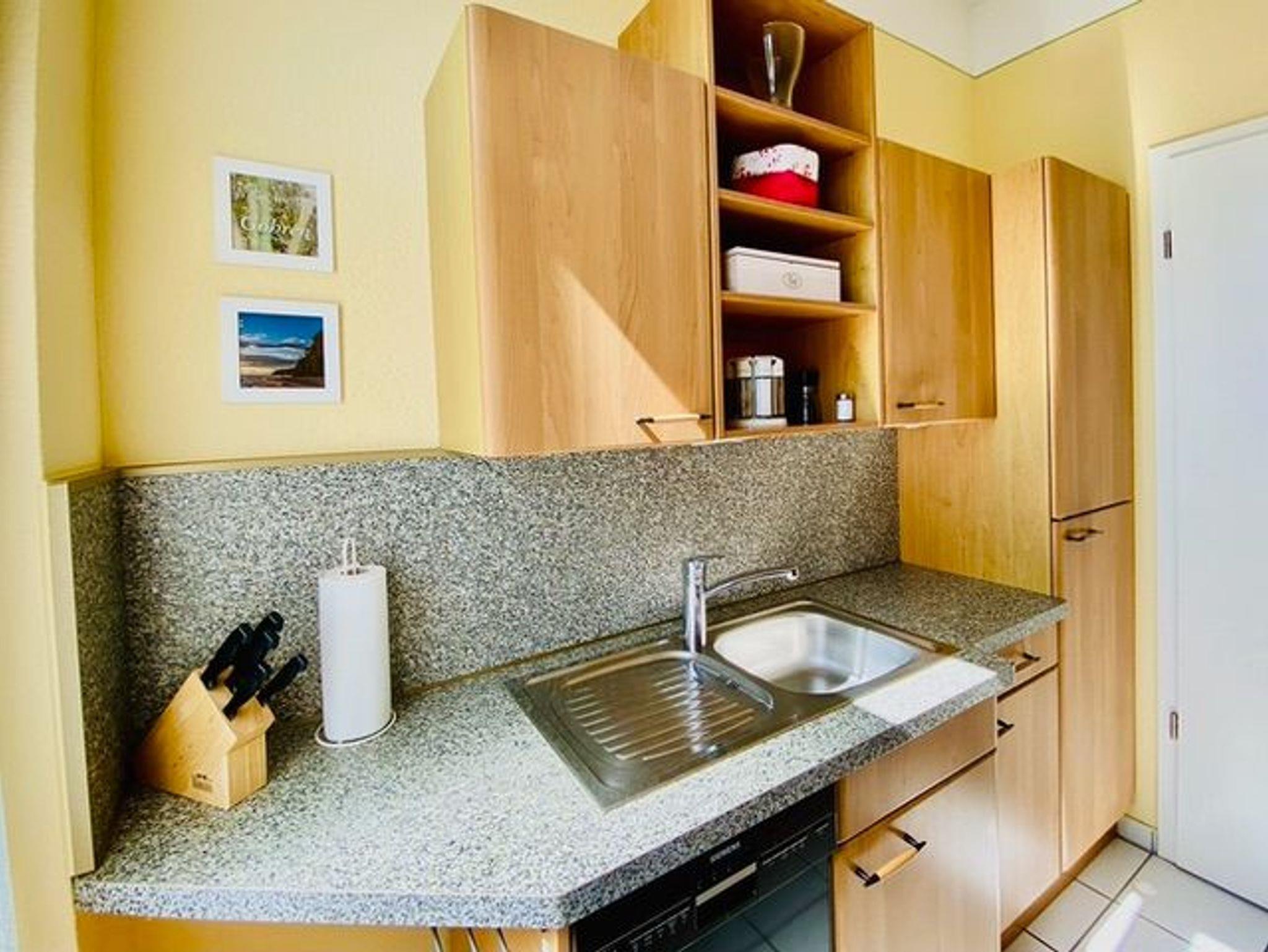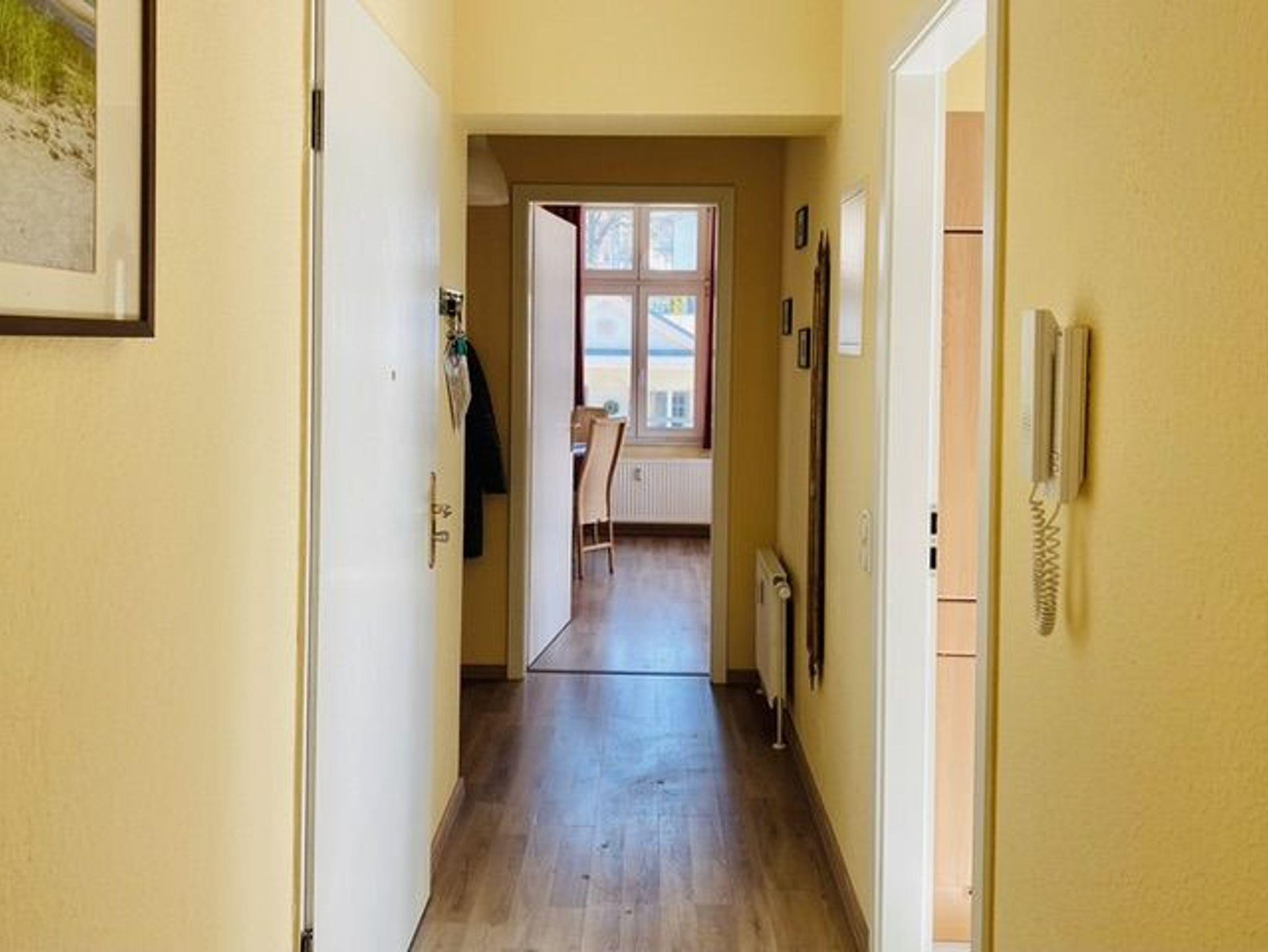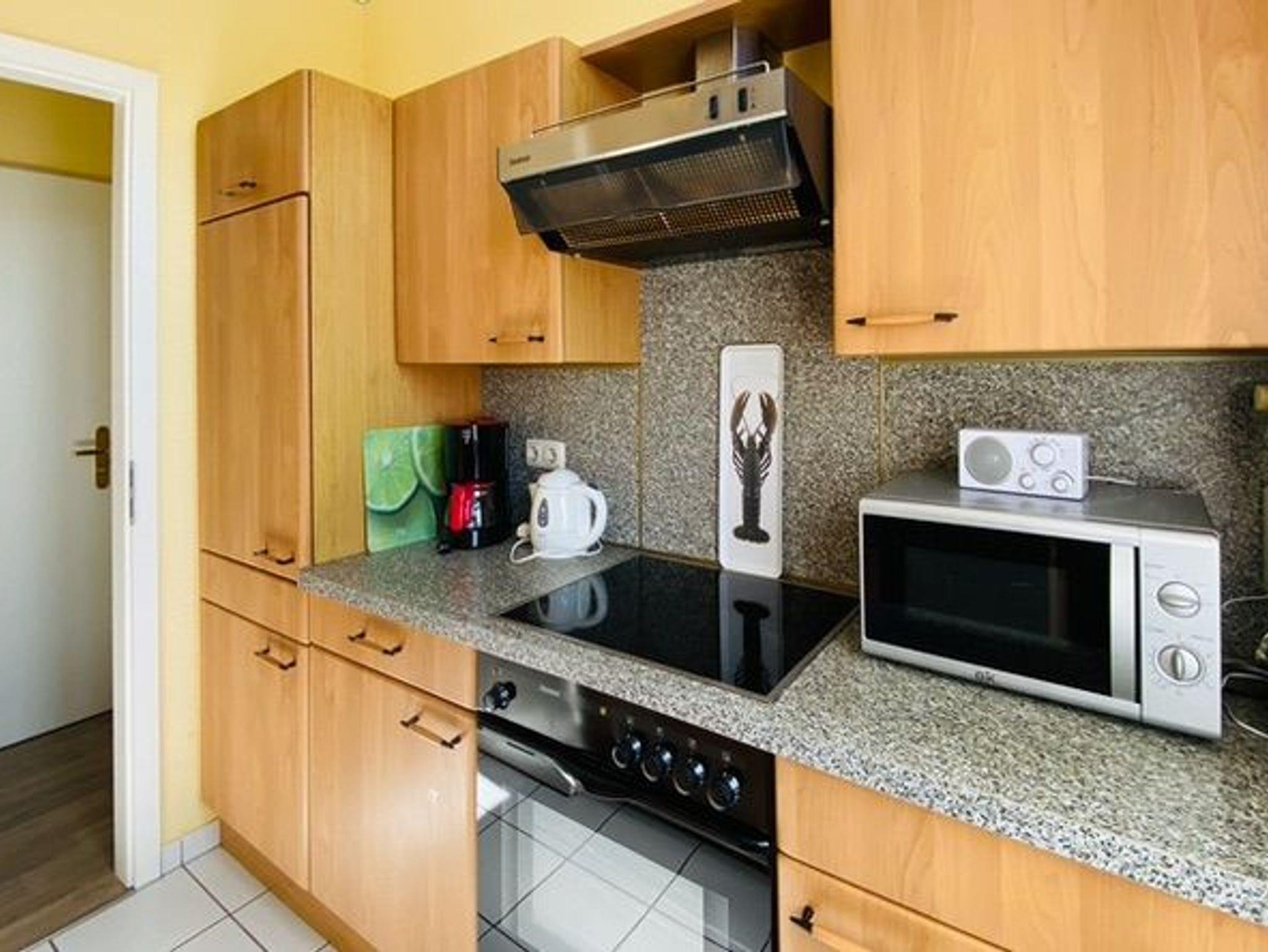Die Wohnung bietet mit 65 m² viel Platz. Ein großes Wohnzimmer, ein Schlafzimmer, eine Küche und ein geräumiges Bad stehen für den Ferienaufenthalt zur Verfügung. Alles sehr komfortabel für zwei Personen und einfach durch die Schlafcouch im Wohnzimmer auch für 3 oder 4 Personen zu nutzen. Große Schränke bieten viel Raum für Kleidung, Gepäck usw. Küche und Badezimmer sind komplett ausgestattet.