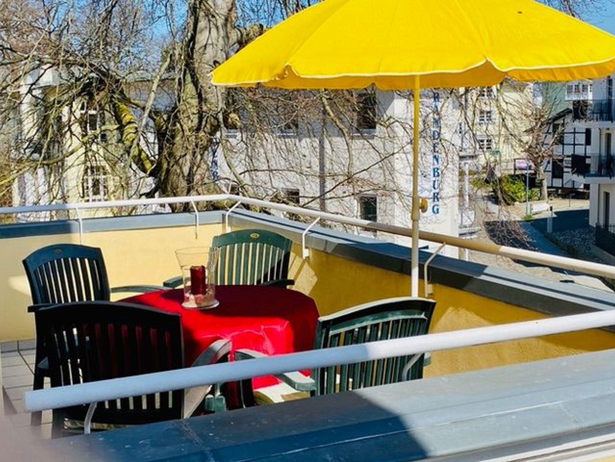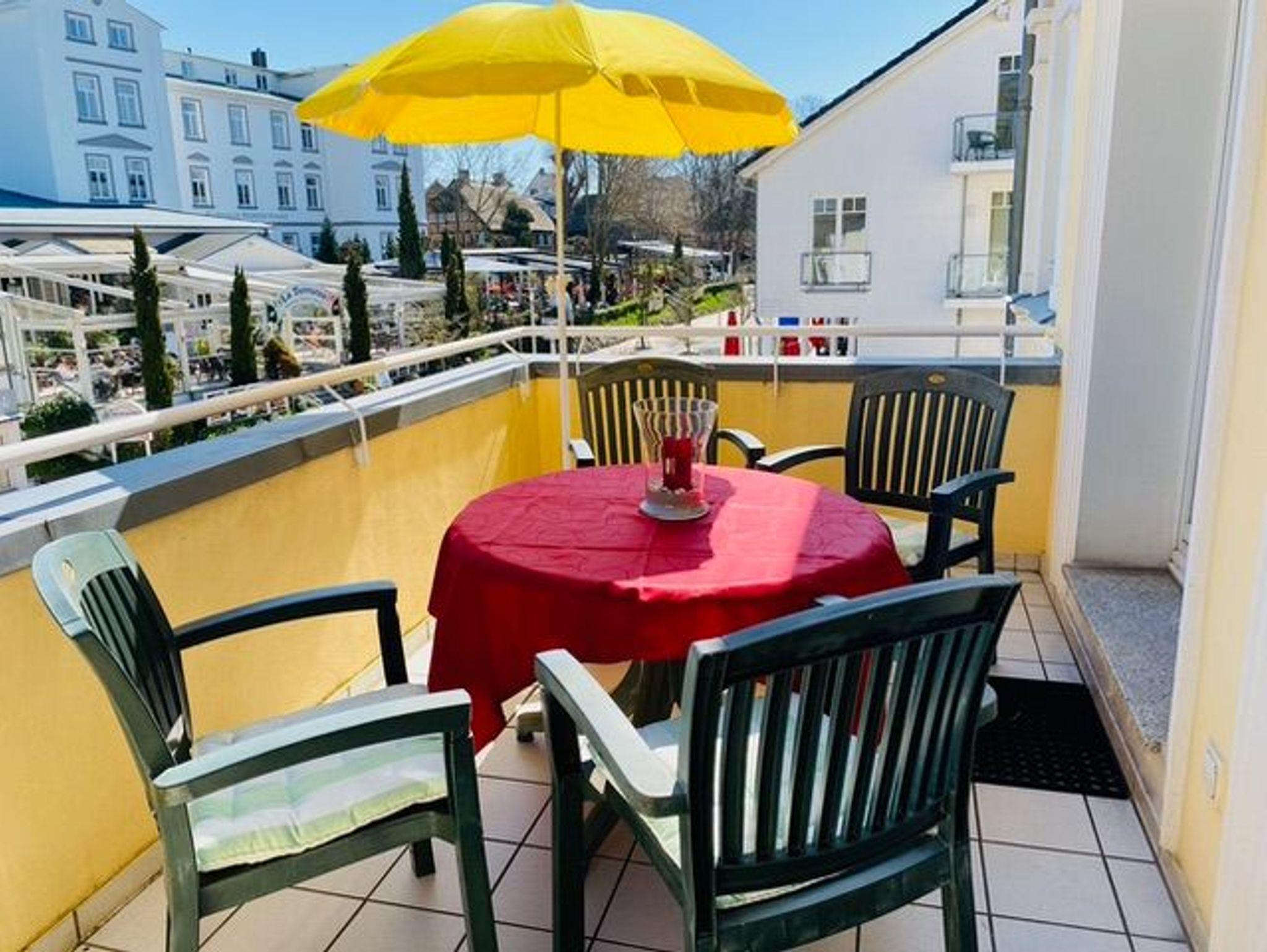 Die großzügige Ausstattung und die allerbeste Lage zeichnen diese Ferienwohnung aus. Sie liegt in der „Belétage“ der repräsentativen Villa Granitz, im ersten Stock an der Vorderseite der Villa mit großem Balkon, mit Gartenmöbeln und Sonnenschirm.