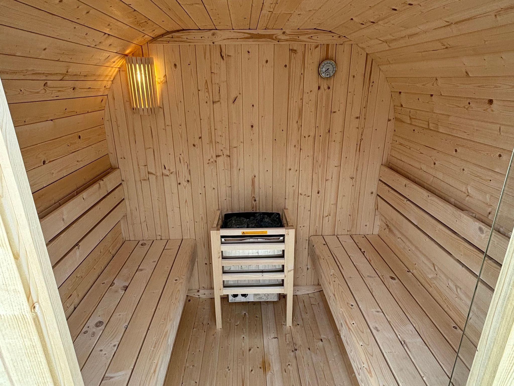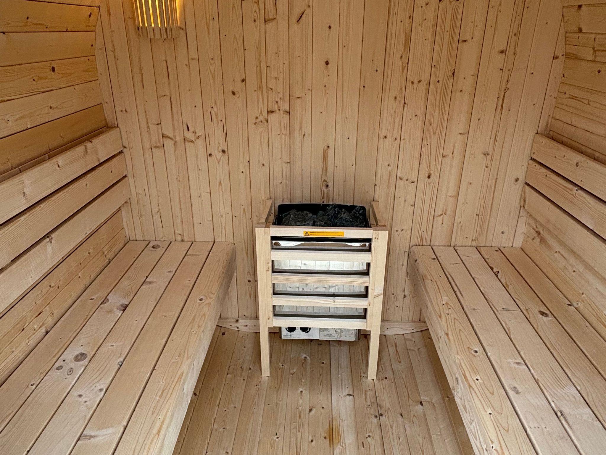 Die Ferienwohnung verfügt über eine eigene Südterrasse und einen Grill. Zur alleinugen Nutzung steht eine Fasssauna und ein Whirlpool zur Verfügung.