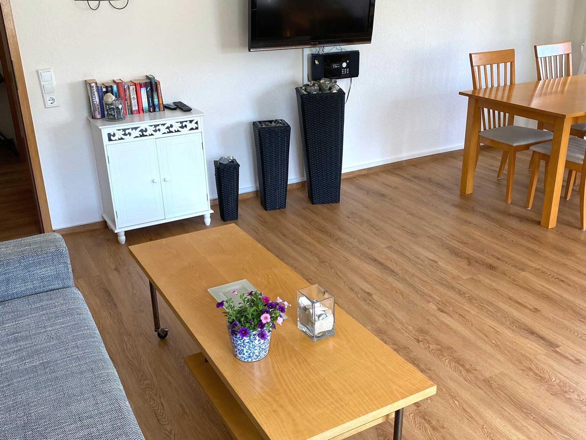 Auf einer Grundfläche von ca. 60 qm können sich vier Erwachsene bequem aufhalten und sich wohlfühlen. Neben dem großen Wohnzimmer mit Essbereich gibt es ein Schlafzimmer sowie ein Bad und eine umfangreich ausgestattete Küche. Im Wohnzimmer lädt eine gemütliche Sofalandschaft, die mit wenigen Handgriffen zu einer Schlafmöglichkeit für 2 Personen wird, zum Erholen nach einem langen Strandtag, einer Wanderung zu Fuß oder per Rad oder einem anderen Ausflug ein. Zur technischen Ausstattung gehört ein 40-Zoll Flachbildfernseher, CD/DVD-Player und eine Musikanlage. Ein W-LAN-Zugang zur kostenlosen Nutzung ist selbstverständlich vorhanden ? oder Sie schauen vom Esszimmertisch einfach weiter auf das Meer. In der komplett ausgestatteten Küche finden Sie ein Cerankochfeld, Backofen, einen Geschirrspüler, Kühlschrank mit Eisfach, Toaster, Kaffeemaschine, Wasserkocher und weitere praktische Helfer. Das Schlafzimmer mit Doppelbett (2x 0,90 m x 2,00m) ist zusätzlich mit einem 32 Zoll Flachbildfernseher ausgestattet. Nachtischablagen und Kleiderschränke sind selbstverständlich, der Blick auf das Meer rundet die Ausstattung des Schlafzimmers ab. Die Badausstattung besteht aus einer Badewanne mit Duschfunktion, Waschbecken und WC.