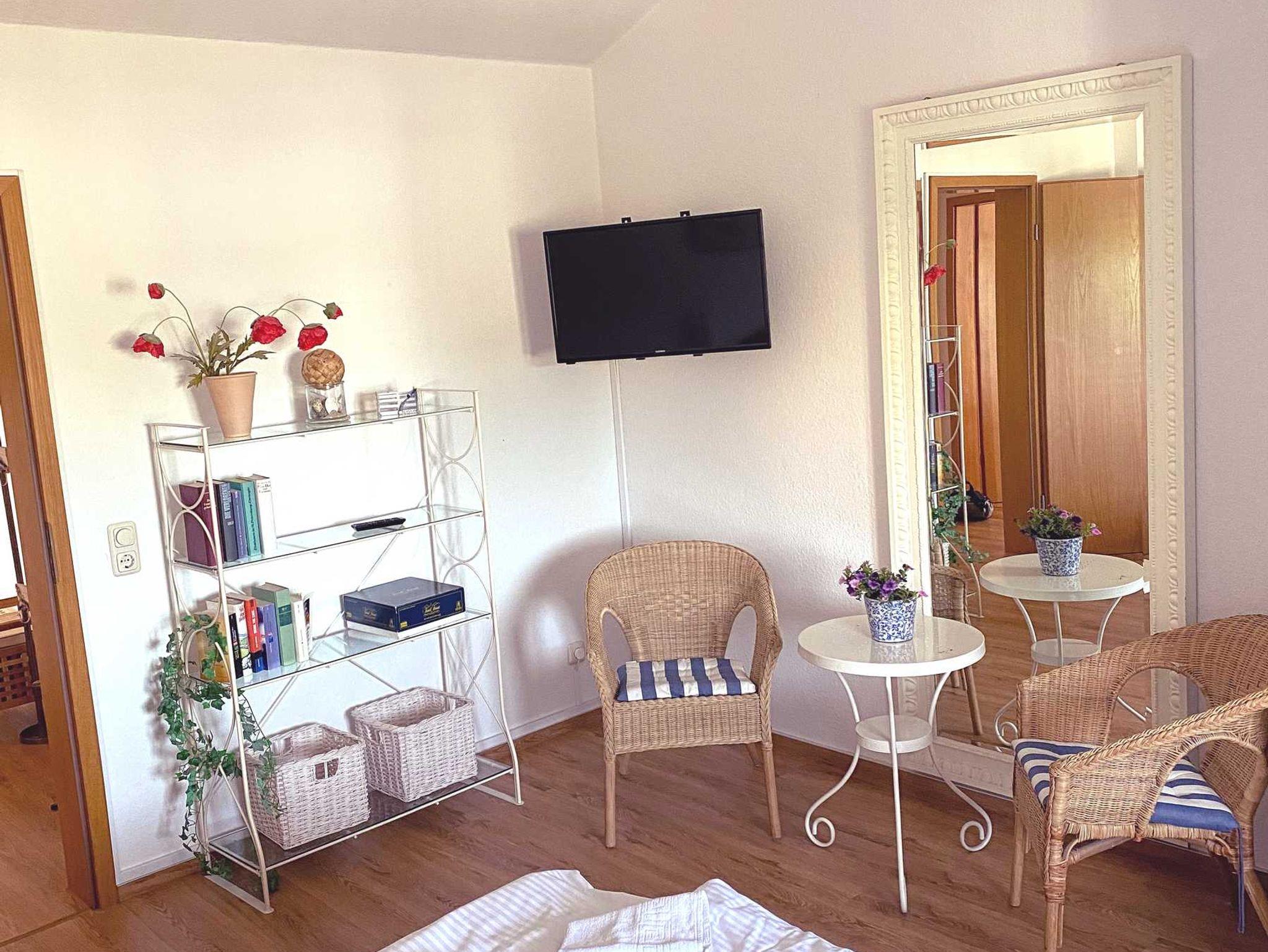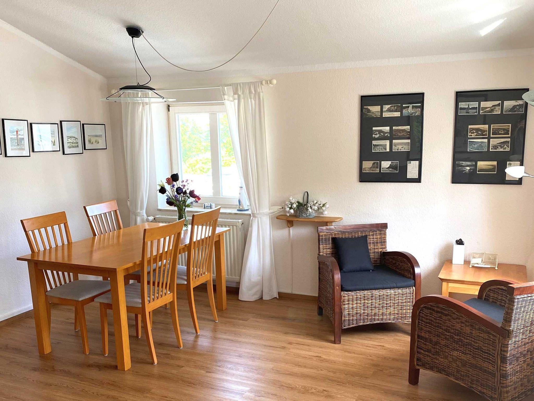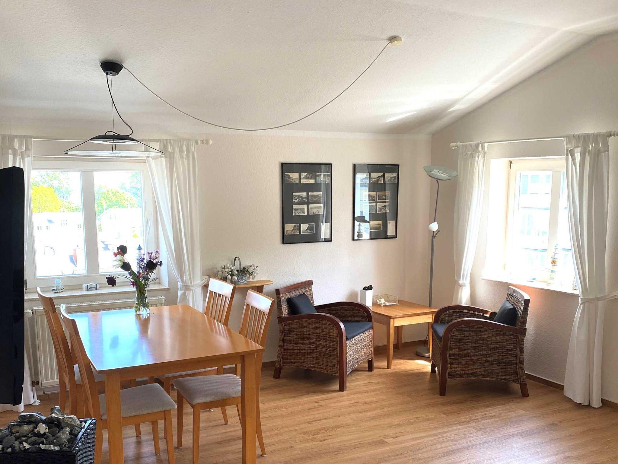 Die gemütliche Ferienwohnung befindet sich über den Dächern von Göhren im Dachgeschoss des Hauses - kein Aufzug im Haus. Von dort können Sie auf das Meer schauen.