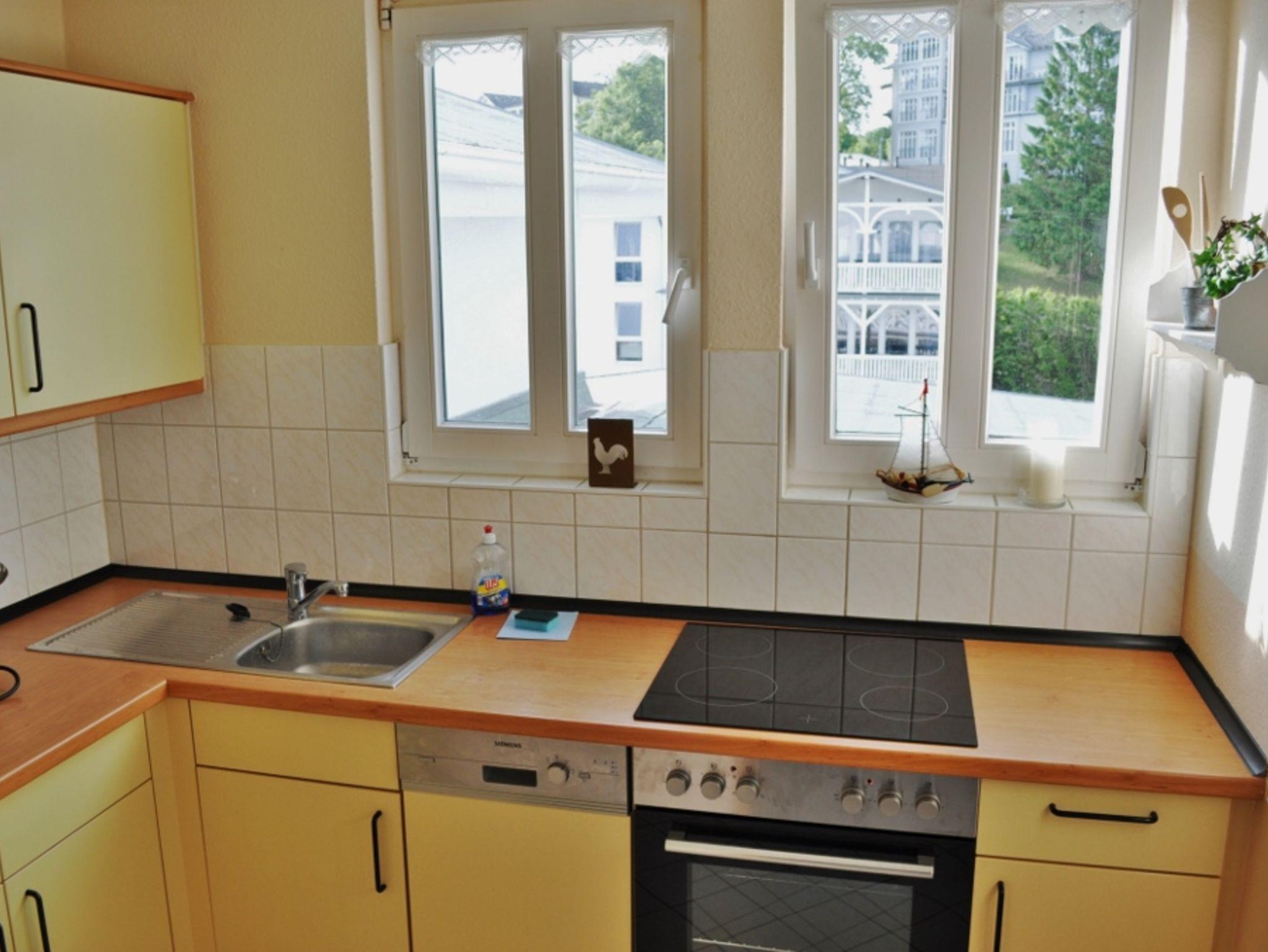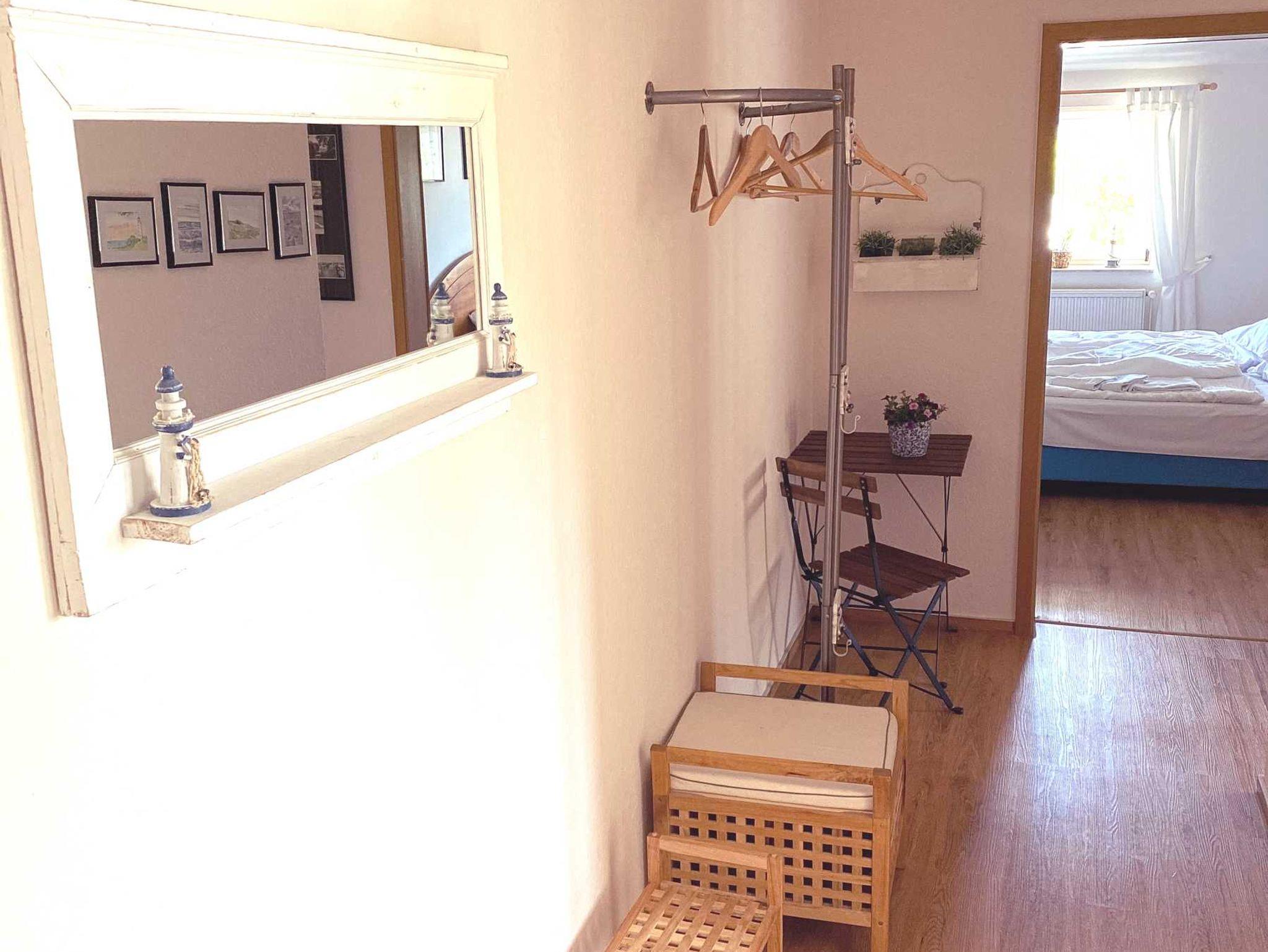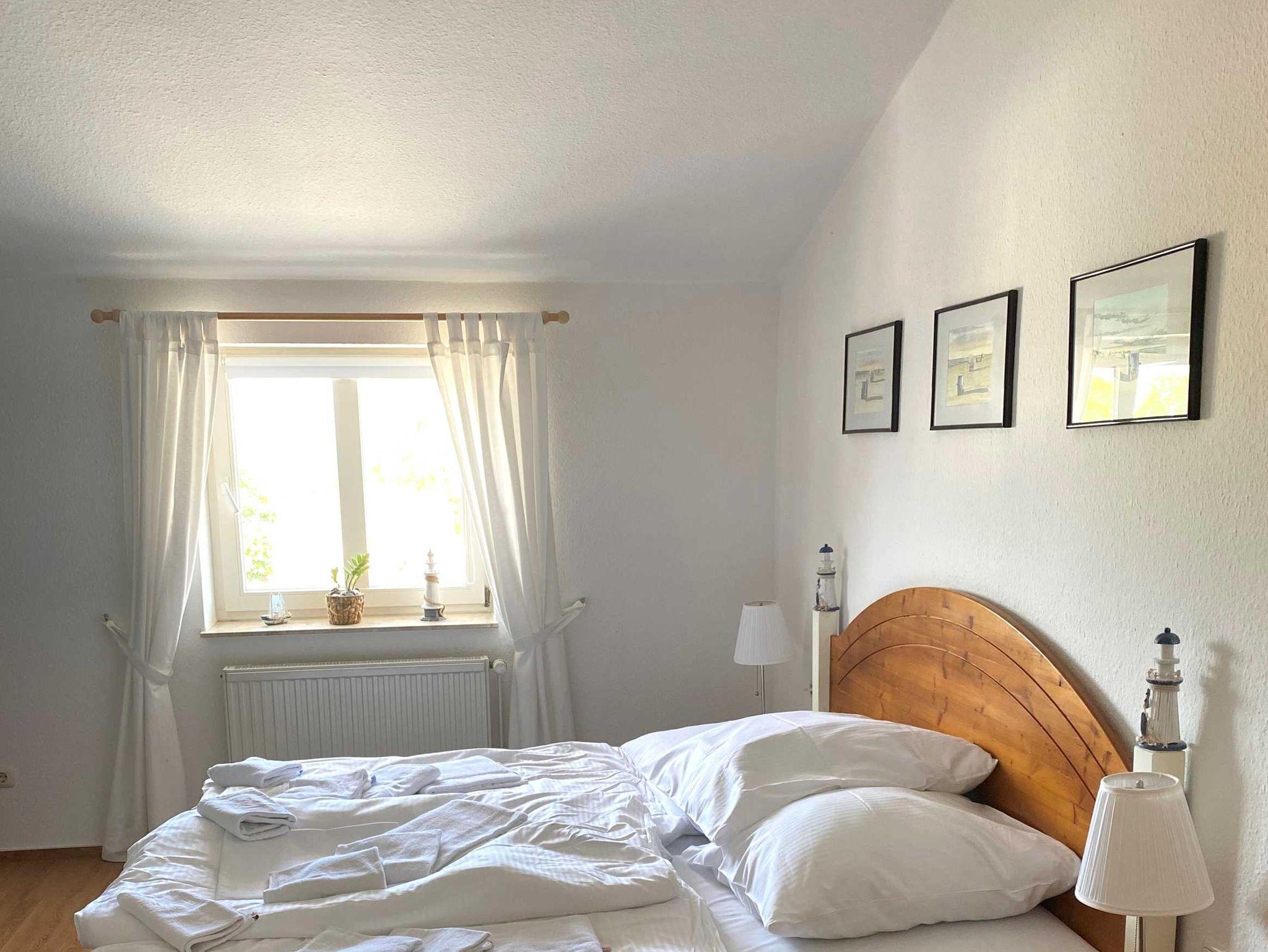 Die gemütliche Ferienwohnung befindet sich über den Dächern von Göhren im Dachgeschoss des Hauses - kein Aufzug im Haus. Von dort können Sie auf das Meer schauen.