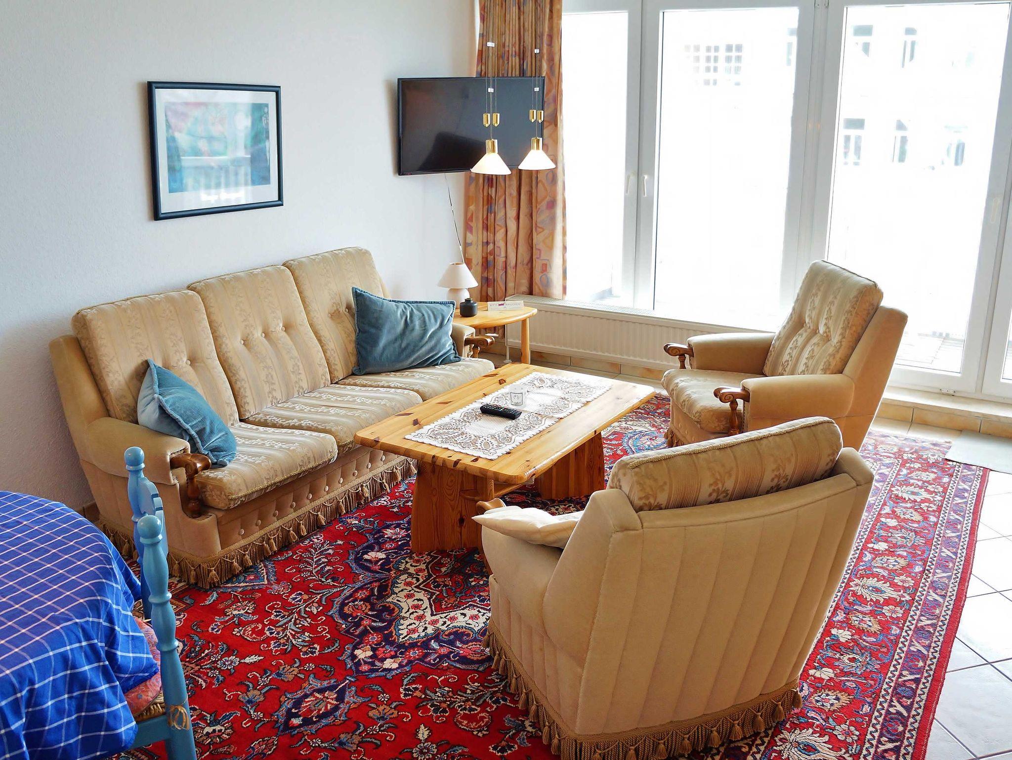 Die Ferienwohnung mit Ostseeblick vom Wohnzimmer, befindet sich im Hochparterre des Hauses .