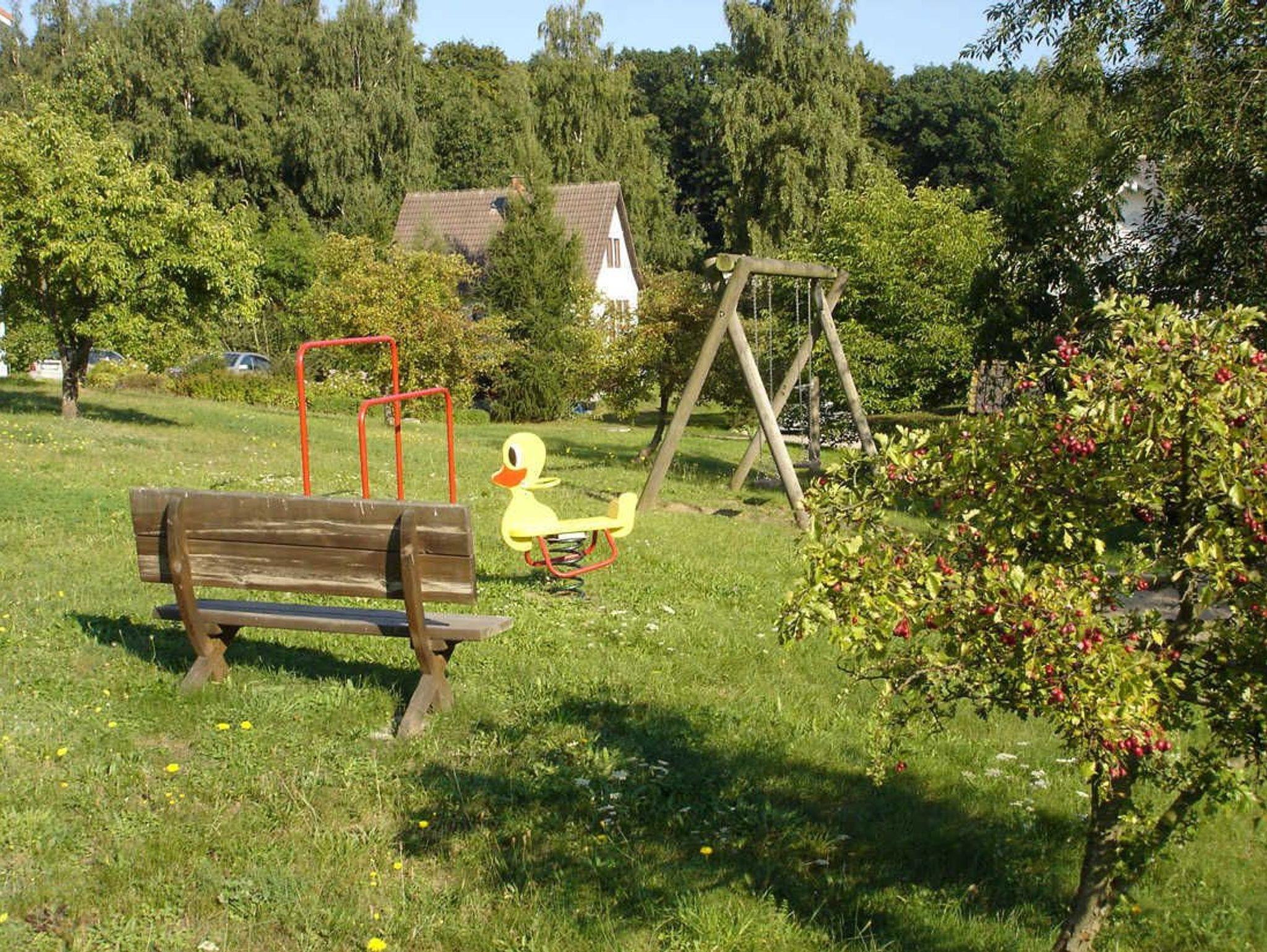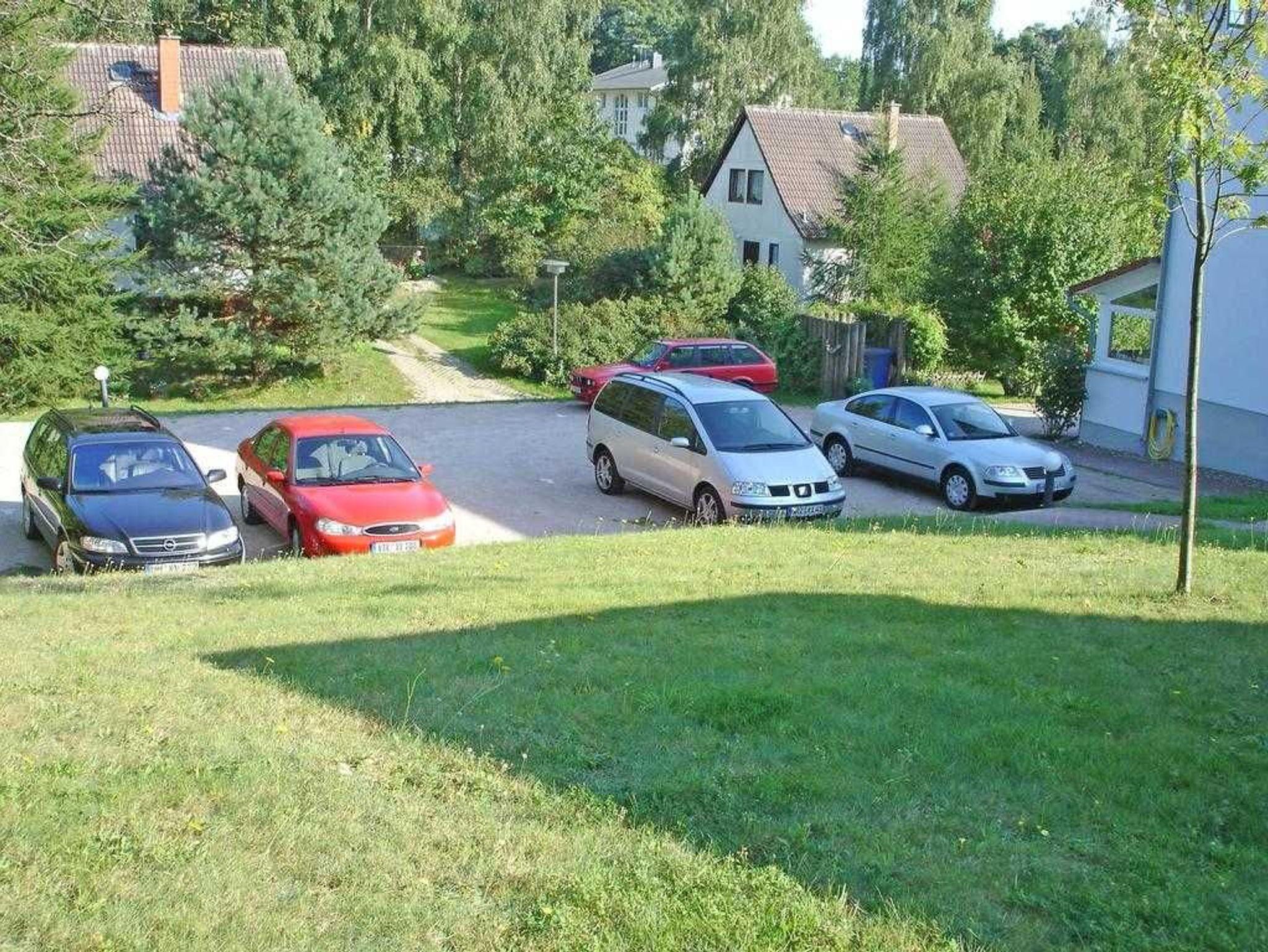 Auf unserem 3000 m² großen Grundstück finden Sie vor dem Haus eine große Wiese mit kleinem Spielplatz, hinter dem Haus einen Parkplatz für jede Wohnung sowie eine verschließbare Fahrradunterstellmo¨glichkeit.