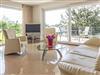 Der Wohnraum von 35 m² ist großzügig eingerichtet und mit Rosa Portogallo Marmor-Feinstein ausgelegt. Große Schiebetüren öffnen die Fensterfronten zur 24 m² großen Terrasse und Rasenfläche nach Süden mit Blick ins Grüne und nach Osten mit Blick auf die Insel Oie und die 100 jährige Eiche.