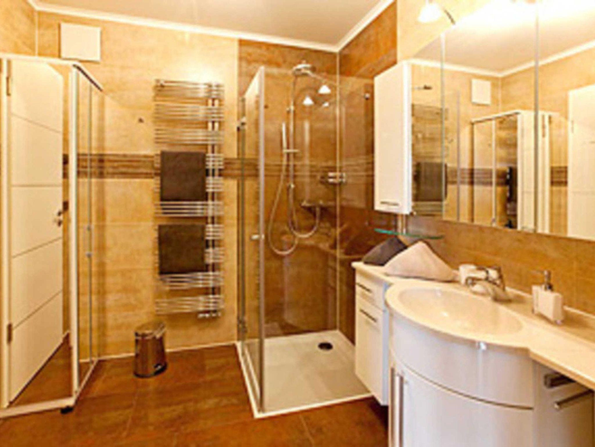 Zwei Bäder, eines davon mit Badewanne, das andere mit bodengleicher Dusche garantieren höchsten Badespaß ? noch dazu bei leiser Musik oder den aktuellen Nachrichten. Beide Bäder sind mit je einem WC, einem Waschtischschrank und einem Spiegelschrank mit Kosmetikspiegel und Haartrockner komfortabel ausgestattet.