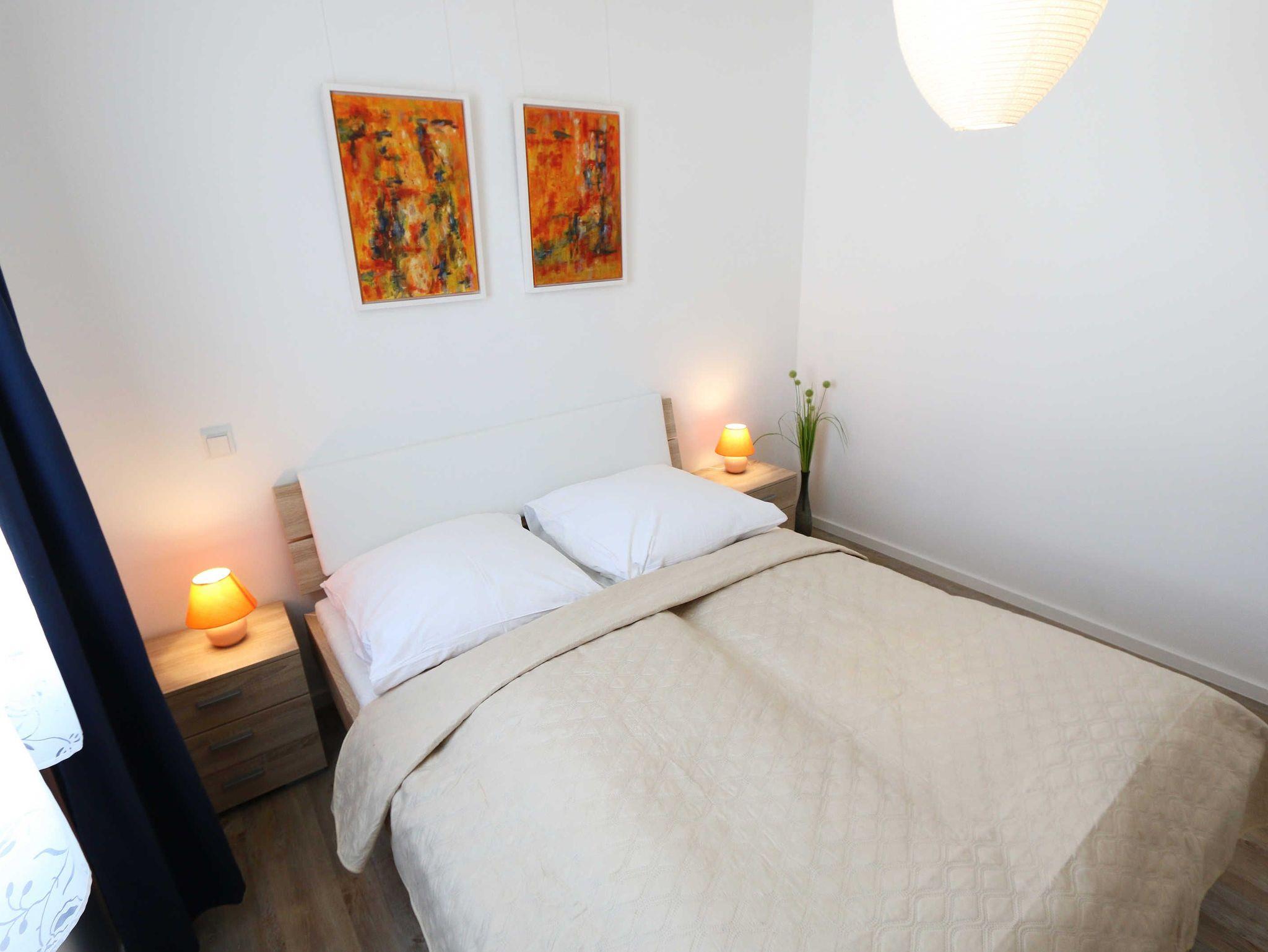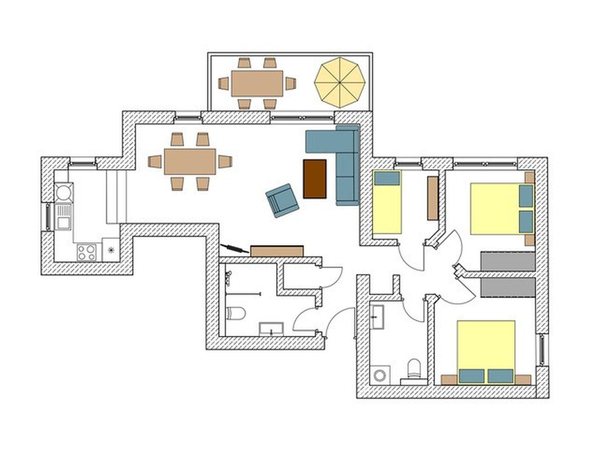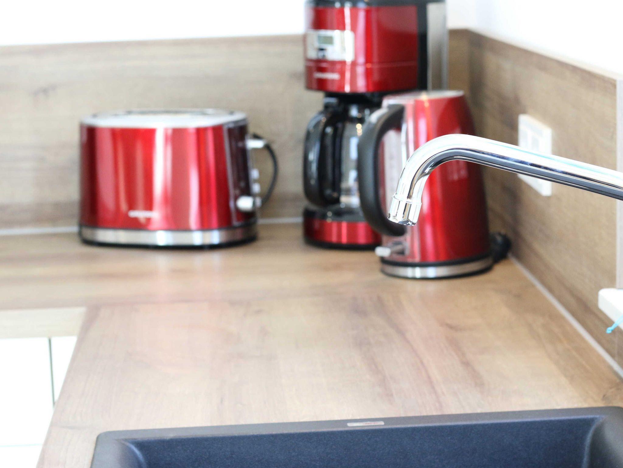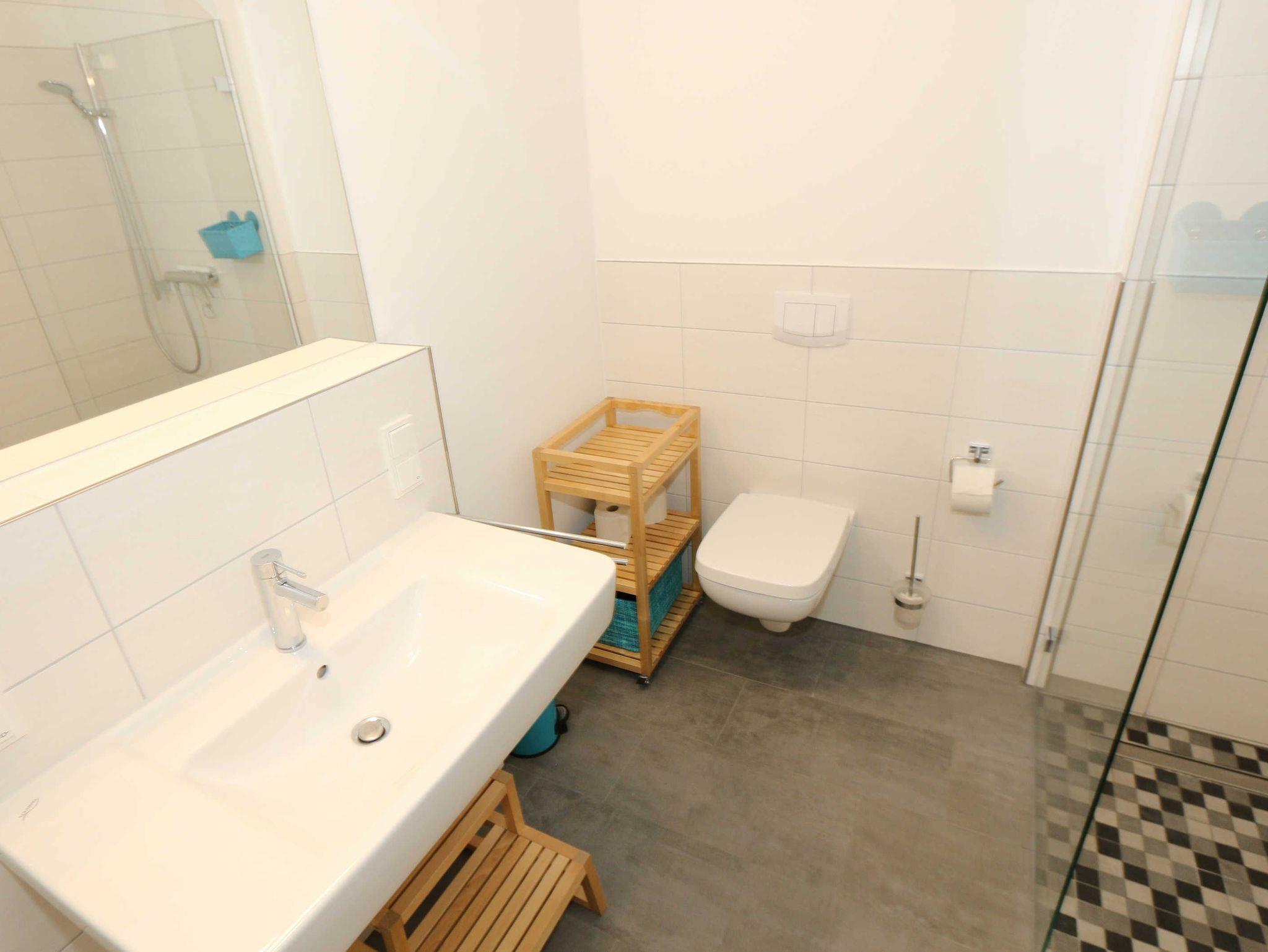 Die Wohnung Nr. 6 der Villa Anni ist eine komfortable, ca. 82 m² große und stilvoll eingerichtete Nichtraucherferienwohnung im ersten Obergeschoss. Sie bietet mit ihren 3 Schlafzimmern ausreichend Platz für 5 Erwachsene + 1 Kleinkind bis 3 Jahre im Kinderreisebett. Der kombinierte Wohn-/Koch- und Essbereich mit der modernen und integrierten Küchenzeile lässt mit Ceranfeld, Backofen, Geschirrspüler, Mikrowelle, Kühlschrank mit Gefrierfach, Kaffeemaschine, Wasserkocher, Toaster und diversen Küchenutensilien keine Wünsche offen. Der Essbereich fügt sich der Küchenzeile an. Der offene Wohnbereich verfügt über eine gemütliche Sitzecke mit Couchtisch, einen Sessel, eine Leselampe, ein Smart-TV mit CD-Player, DAB-Radio und einen Blu Ray Player. Auch auf einen Internetanschluss (WLAN) müssen Sie in Ihrem Urlaub nicht verzichten. Dieser ist für Sie inklusive! Eine Auswahl an Gesellschaftsspielen und Urlaubslektüre sorgt für eine gelungene Abwechslung. Der nach Westen ausgerichtete, bestuhlte Balkon mit Sonnenschirm ist direkt vom Wohnbereich aus zu erreichen. Das erste Schlafzimmer verfügt über ein Doppelbett mit Kaltschaummatratzen (1,60m x 2,00m), verstellbaren Lattenrosten, Nachttischablagen und einen Kleiderschrank. Das zweite Schlafzimmer verfügt über ein Doppelbett mit einer durchgehenden Kaltschaummatratze (1,40m x 2,00m), Nachttischablagen, Smart-TV und einen Kleiderschrank. Im dritten Schlafzimmer befindet sich ein Einzelbett (0,90m x 2,00m). Für einen ruhigen Schlaf sorgt in allen 3 Schlafzimmern eine Verdunklungsmöglichkeit. Das erste Bad ist mit einer ebenerdigen Dusche, Waschplatz, WC, Handtuchheizkörper und Fön ausgestattet. Im zweiten Bad befinden sich neben einem WC und einem Waschplatz auch eine Waschmaschine. In den Schlafzimmern und in der Küche sind Insektenschutzgitter vorhanden. Alle Räumlichkeiten sind mit einer Fußbodenheizung versehen und sorgen für eine angenehme Wärme. Für unsere kleinen Gäste steht 1x Kinderhochstuhl sowie 1x Kinderreisebett (ohne Zusatzmatratze und ohne Bettinlett) inklusive zur Verfügung. Ein eigener PKW-Stellplatz (Nr. 6) befindet sich in der Tiefgarage (Einfahrtshöhe: 2,00 m) des Hauses. Haustiere sind in der Wohnung nicht erlaubt! Die Erstausstattung eines Wäschepaketes (komplette Bettwäsche, 1 Duschhandtuch, 2 kleine Handtücher) können Sie bis 14 Tage vor Anreise gegen einen Aufpreis dazu buchen oder durch eigene ergänzen. Ab 2 gebuchten Paketen erhalten Sie einmalig 1 Geschirrhandtuch und 1 Duschvorleger hinzu.