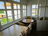 * 1 Einbauküche ausgestattet mit: 4-Platten-Ceran-Kochfeld, Backofen, Kühl-Gefrier-Kombination, Spüle, Mikrowelle, Toaster, Kaffeemaschine, Wasserkocher, diverse Küchenutensilien, 1 Sitzecke mit Esstisch und 2 Stühlen in verglaster Veranda, 1 Kinderhochstuhl
