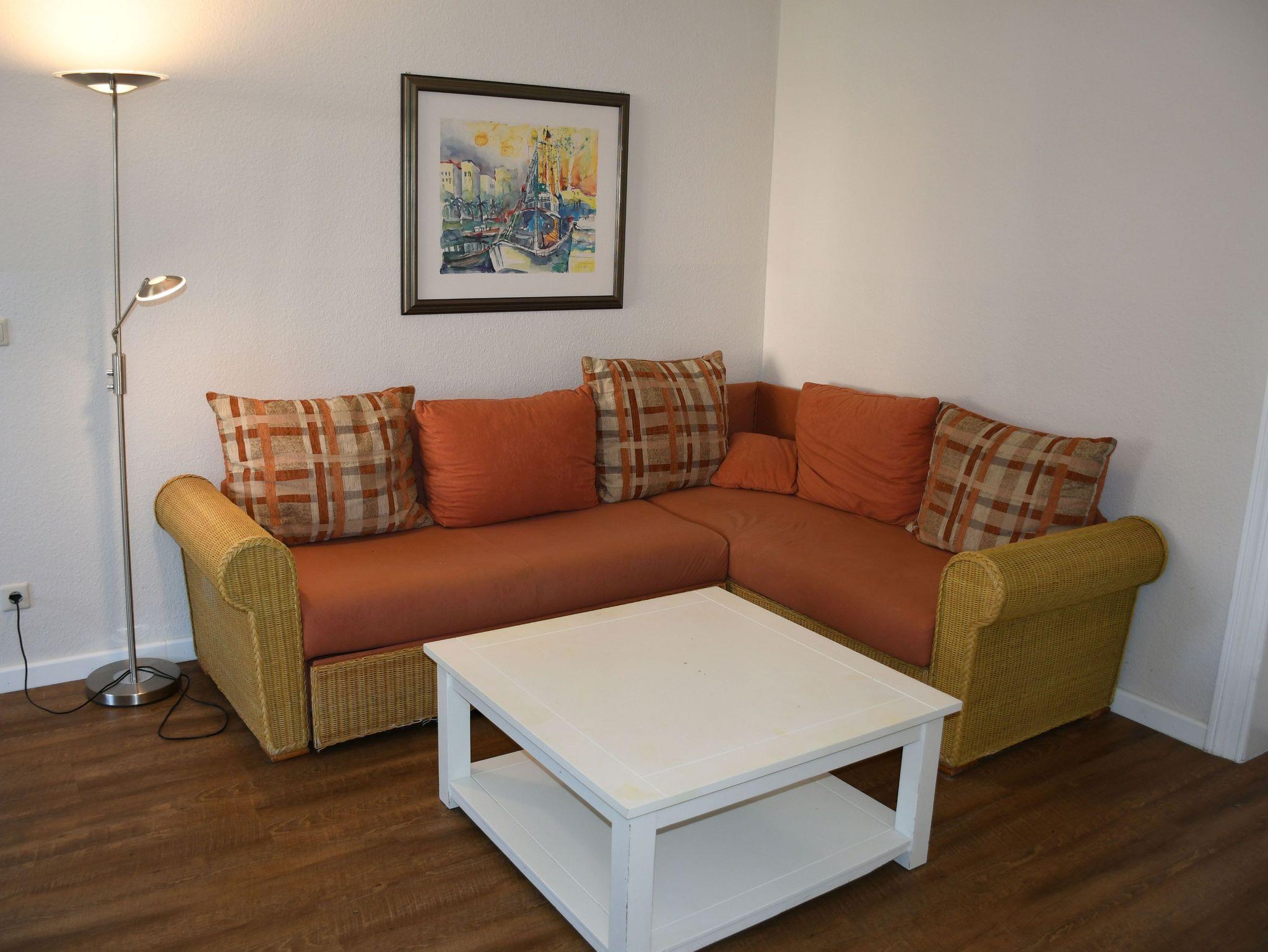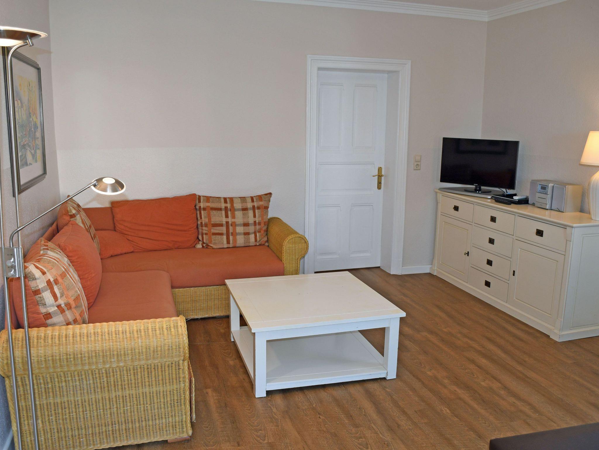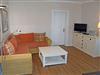 * Wohnbereich mit moderner Wohnlandschaft, ausziehbarer Couch, Couchtisch, Flat-TV , Radio