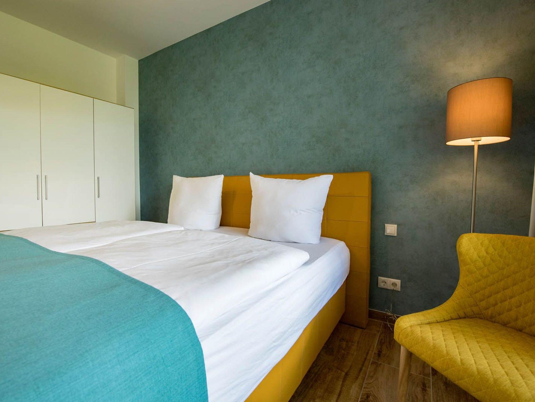 Unsere hellen und modern eingerichteten 3-Raum-Ferienwohnungen liegen im Erdgeschoss und sind wie folgt ausgestattet: