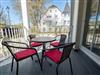 * 1 kleine umzäunte Terrasse mit Gartenmöbeln für 4 Personen