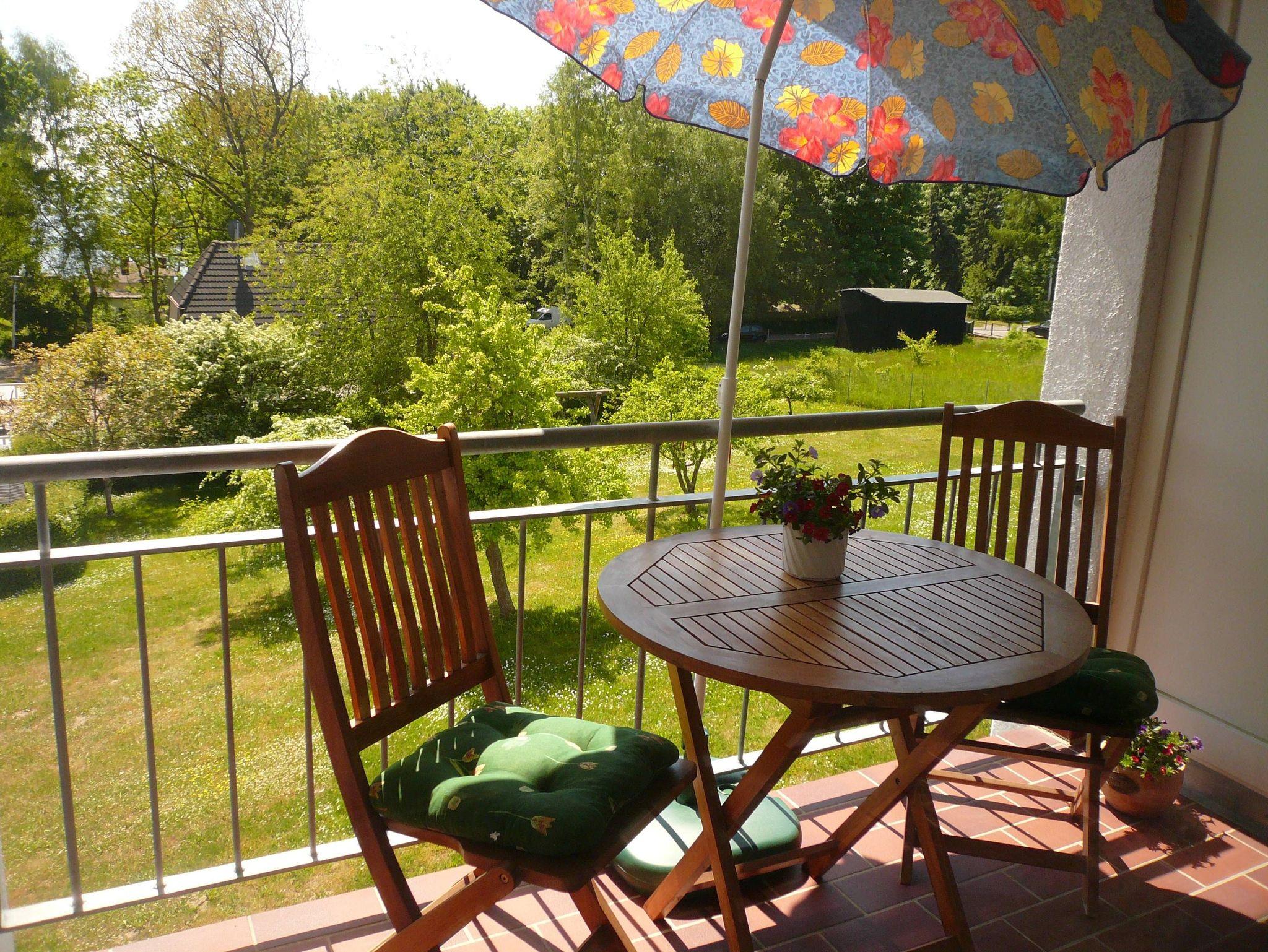 • Überdachter, möblierten Südbalkon ? natürlich mit Sonnenschirm.