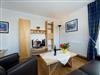 - Wohnbereich mit ausziehbarer, moderner Doppelbettschlafcouch, 1 bzw. 2 Sesseln, Couchtisch, Anrichte mit großem Flat-TV (integr. Radiofunktion) und Esstisch mit 4 Stühlen