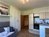 Die offene Küchenzeile ist voll ausgestattet und mit reichlich Küchenutensilien versehen. Das innen liegende Badezimmer verfügt über ein WC, ein Waschbecken und eine Dusche. Vom Wohnbereich können Sie die Ostsee sehen.