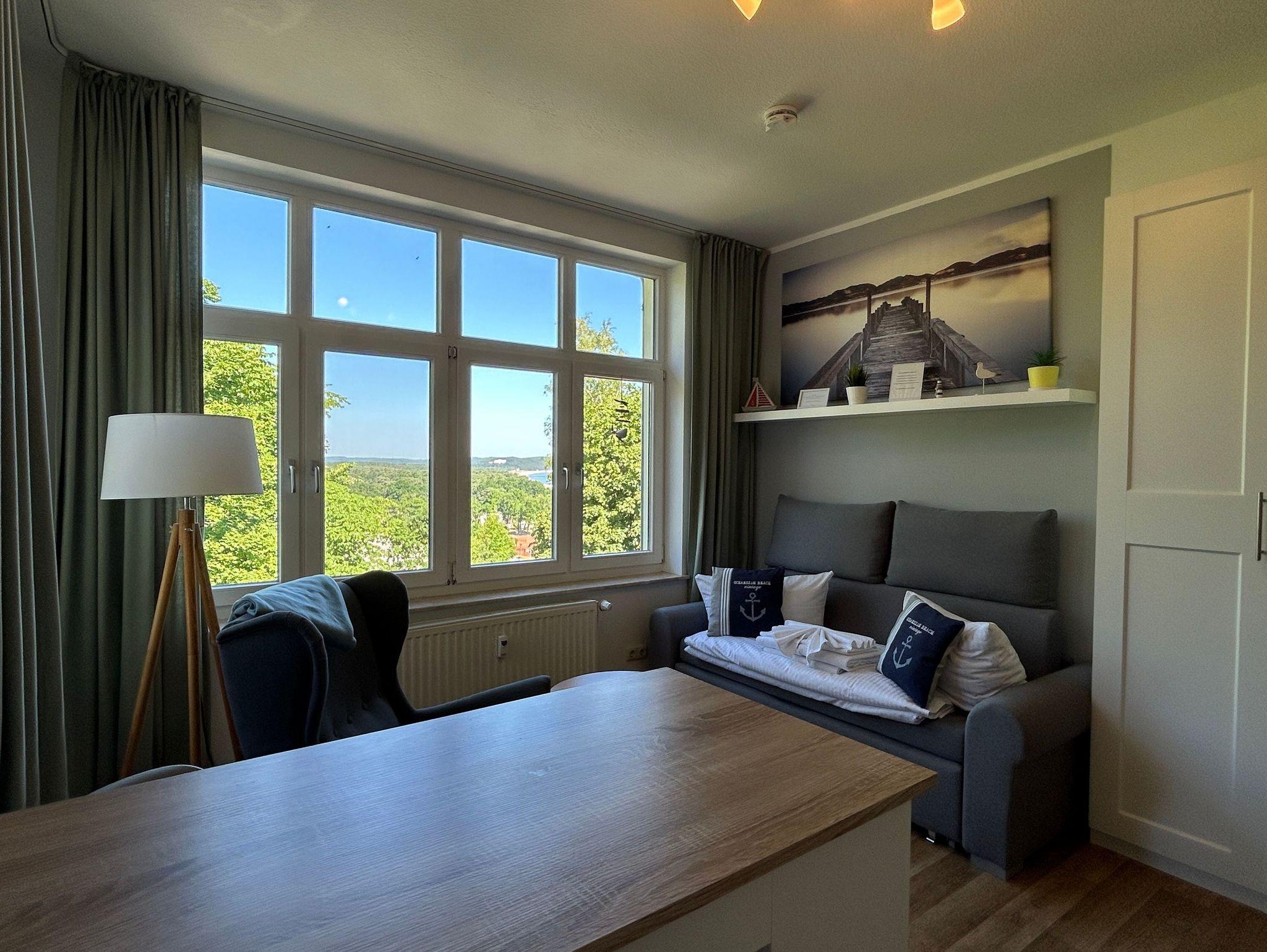 Vom Wohnbereich können Sie die Ostsee sehen.