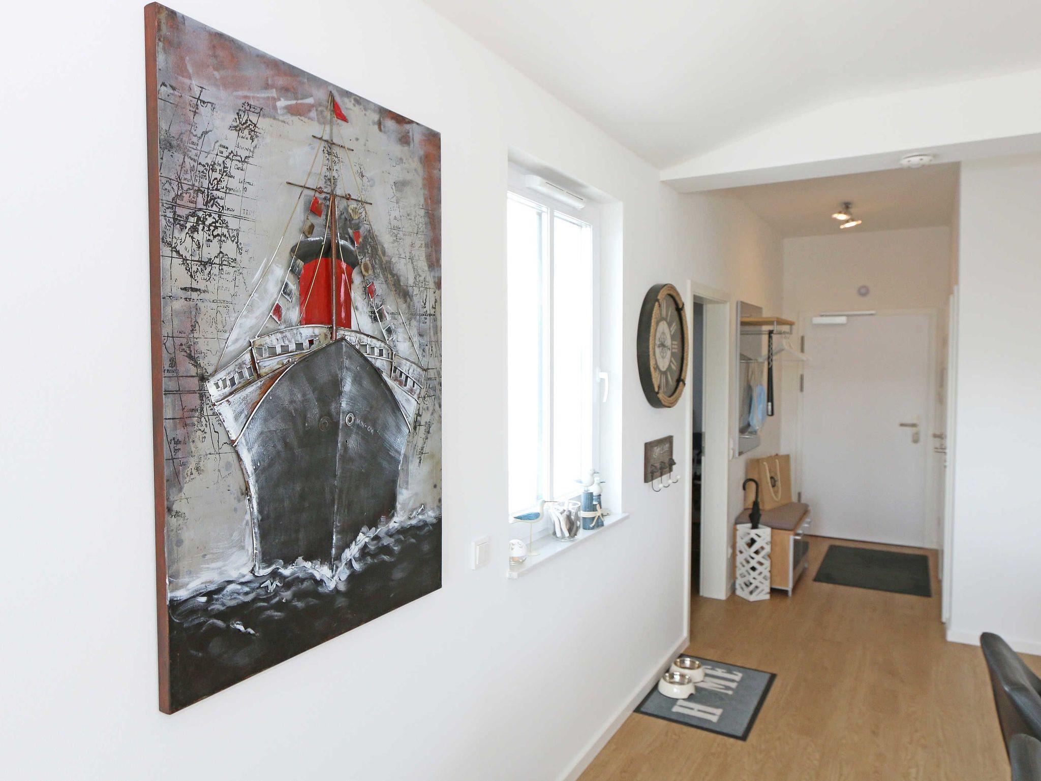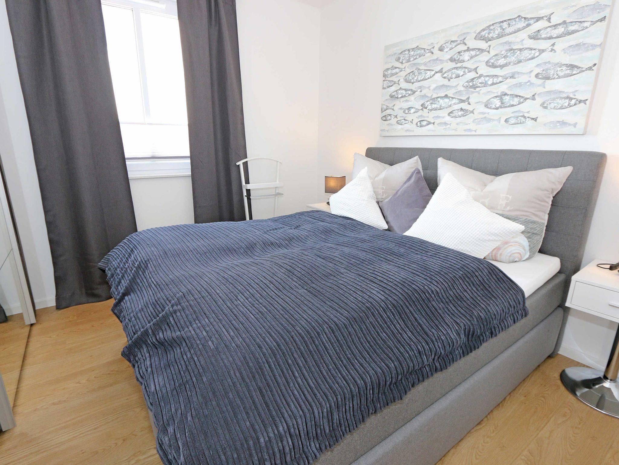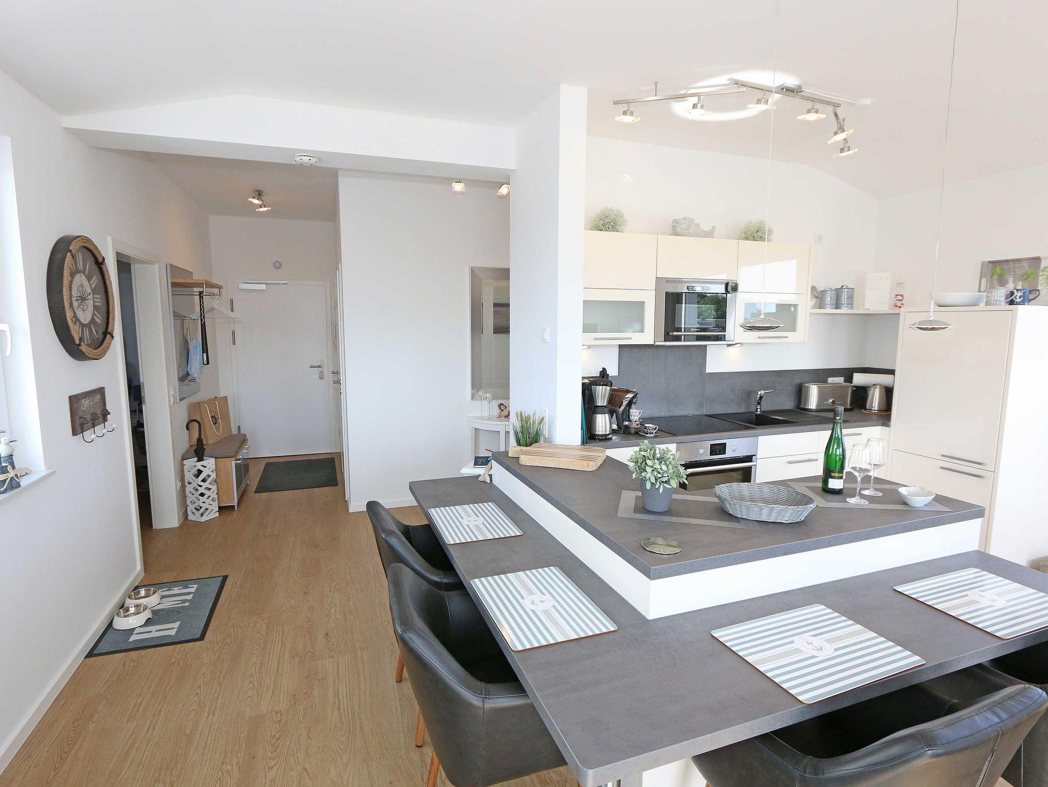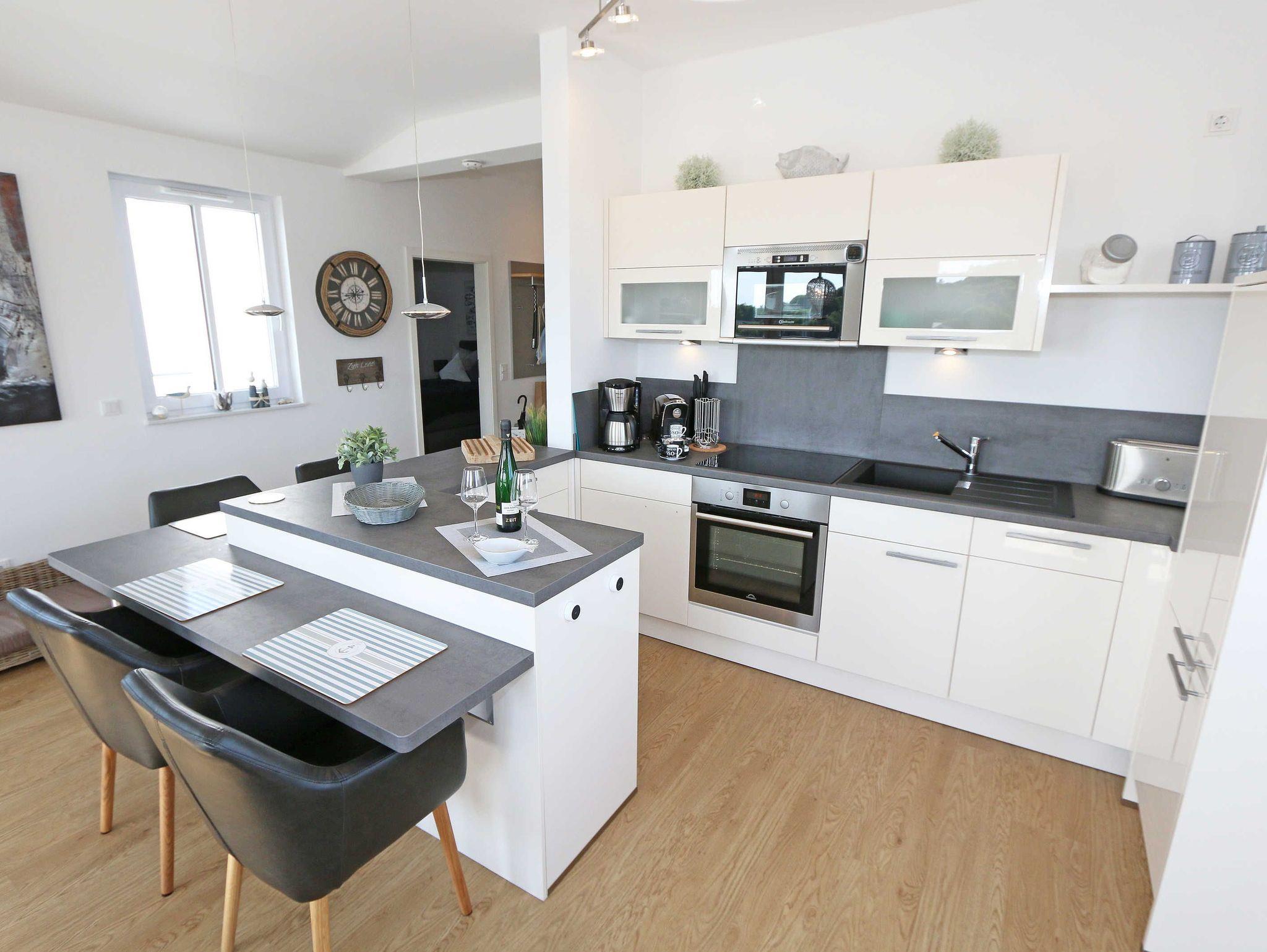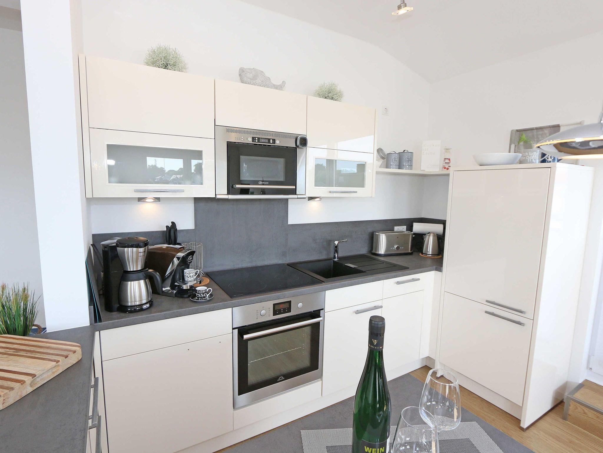 Die komfortable, stilvolle und modern eingerichtete 3-Zimmerferienwohnung besticht mit ihrem Panoramablick über Göhren. Auf ca. 86 m² ist diese Nichtraucherwohnung mit viel Liebe zum Detail eingerichtet. Sie ist ausgestattet für max. 4 Erwachsene. Die hochwertig eingerichtete Einbauküche befindet sich im kombinierten Koch-Ess-/Wohnbereich einschließlich Induktionskochfeld, Geschirrspüler, Kühlschrank mit Gefrierkombination, Backofen, Mikrowelle, Waschtrockner, Kaffeemaschine, Caffissimo-Kapselmaschine, Mixer, Pürierstab, Toaster, Wasserkocher, Eierkocher und diverse Küchenutensilien. Der Essbereich mit 4 Stühlen fügt sich der Küchenzeile an. Der offene Wohnbereich verfügt über eine moderne Ledercouch, ein Sideboard, Leselampe, ein Lowboard, ein Sony Full HD 55 Zoll Smart-TV und eine Yamaha Musikanlage mit DAB-Radio. Auch auf einen Internetanschluss (WLAN) müssen Sie im Urlaub nicht verzichten. Dieser ist für Sie inklusive! Eine kleine Auswahl an Urlaubslektüre und Gesellschaftsspielen sorgt für eine gelungene Abwechslung. Auf der großen Dachterrasse (Nördlich) mit einer gemütlichen Lounge, können Sie den Abend bei einem Glas Wein ausklingen lassen und den wunderbaren Blick über Göhren genießen. Der nach Süd-Ost ausgerichtete Balkon verfügt über eine Sitzgarnitur an der Sie morgens das Frühstück genießen und dabei auf das Meer schauen können. Für erholsamen Schlaf erwarten Sie im 1.Schlafzimmer ein bequemes Boxspringbett mit einem durchgehenden Topper (1,80 m x 2,00 m) in Komforthöhe, Nachttischablagen mit Nachttischleuchten, ein Radio-Wecker, Flachbild- TV, ein großzügiger Kleiderschrank sowie eine Kommode. Das zweite Schlafzimmer verfügt ebenfalls über ein Boxspringbett mit durchgehendem Topper (1,60m x 2,00m), Nachttischablagen mit Leuchten, ein Flachbild-TV, ein Kleiderschrank, eine Ablagebank und einen Herrendiener. Für einen ruhigen Schlaf sorgt in beiden Schlafzimmern eine Verdunklungsmöglichkeit sowie Insektenschutzgitter. Im innenliegenden Bad mit WC tragen eine ebenerdige Dusche, ein Fön, ein Badradio, ein Kosmetikspiegel, ein Waschtisch mit Unterschrank und eine wohnungseigene Sauna zu Ihrer Entspannung bei. Genug Ablageflächen für Ihre Pflegeprodukte sind hier ausreichend vorhanden. In der Gästetoilette befinden sich ebenfalls Ablageflächen, ein Waschtisch und ein kleiner Fön. Alle Räumlichkeiten sind mit einer Fußbodenheizung versehen und sorgen für eine angenehme Wärme. Ein separater Abstellraum in dem unter anderem Staubsauger, Bügel ? und Reinigungsutensilien ihren Platz haben, befindet sich im Eingangsbereich der Wohnung. Auch 1 Haustier mit seinem eigenen Schlafplatz ist gegen eine Gebühr ein gern gesehener Gast. Fress-und Wassernapf stehen ebenfalls für Ihren Liebling bereit. Ein eigener PKW-Stellplatz (Nr.07) befindet sich in der Tiefgarage (Einfahrtshöhe: 2,00 m) des Hauses. Ihre mitgebrachten oder geliehenen Fahrräder können Sie im Außenbereich in einem Fahrradständer abstellen. Die Erstausstattung eines Wäschepaketes (komplette Bettwäsche, 1 Duschhandtuch, 2 kleine Handtücher) können Sie bis 14 Tage vor Anreise gegen einen Aufpreis dazu buchen oder durch eigene ergänzen. Ab 2 gebuchten Paketen erhalten Sie einmalig 1 Geschirrhandtuch und 1 Duschvorleger hinzu.