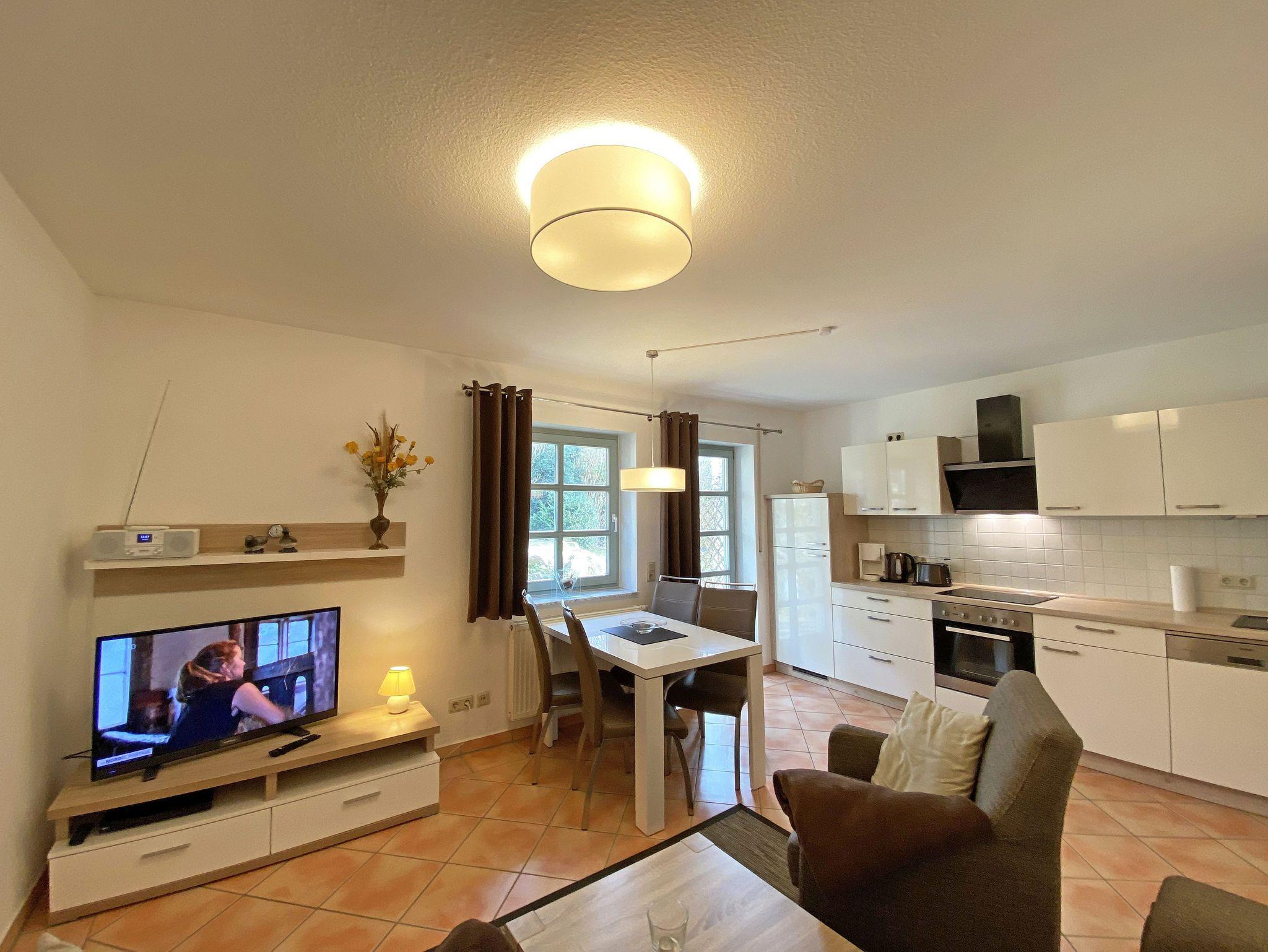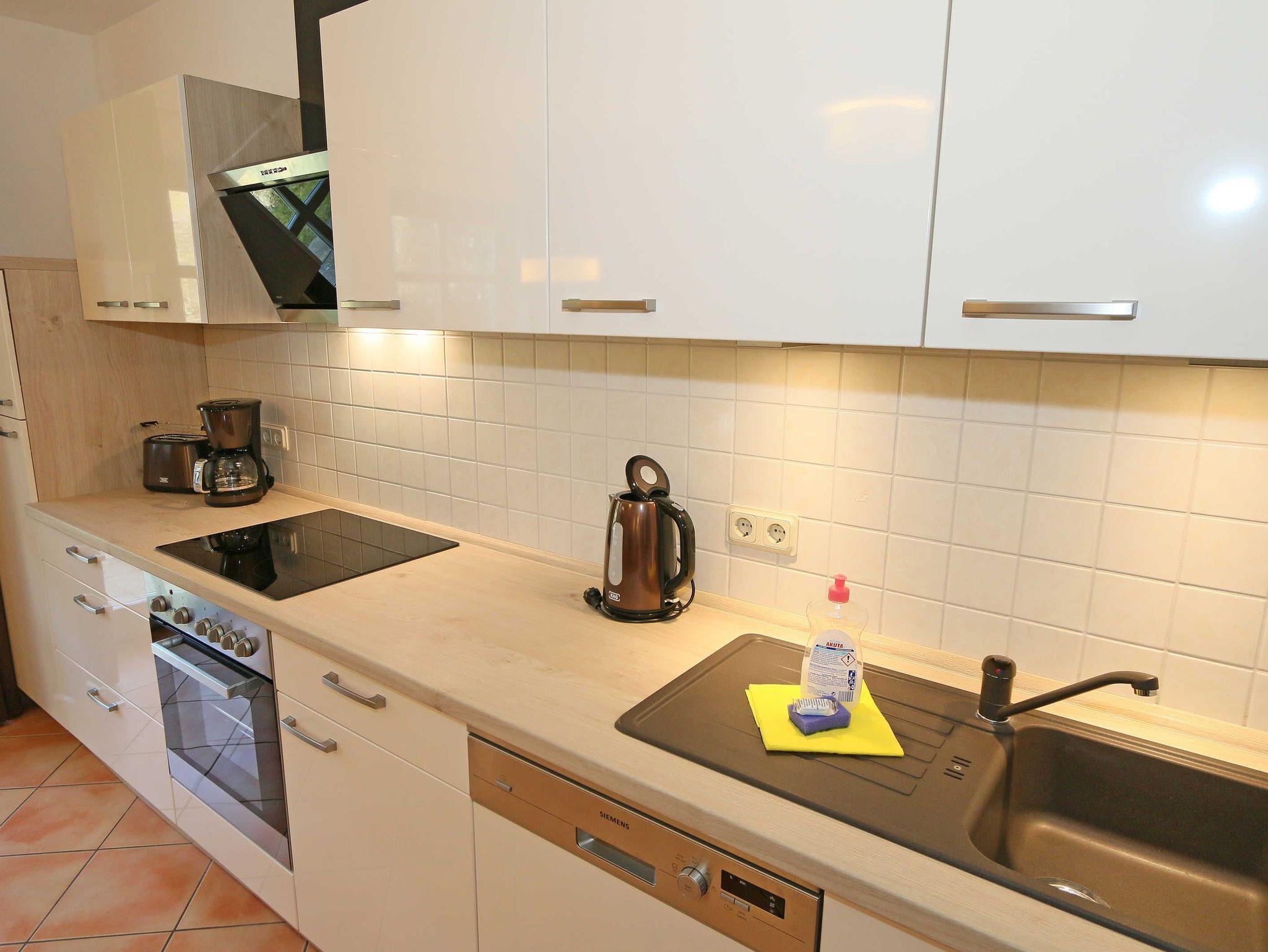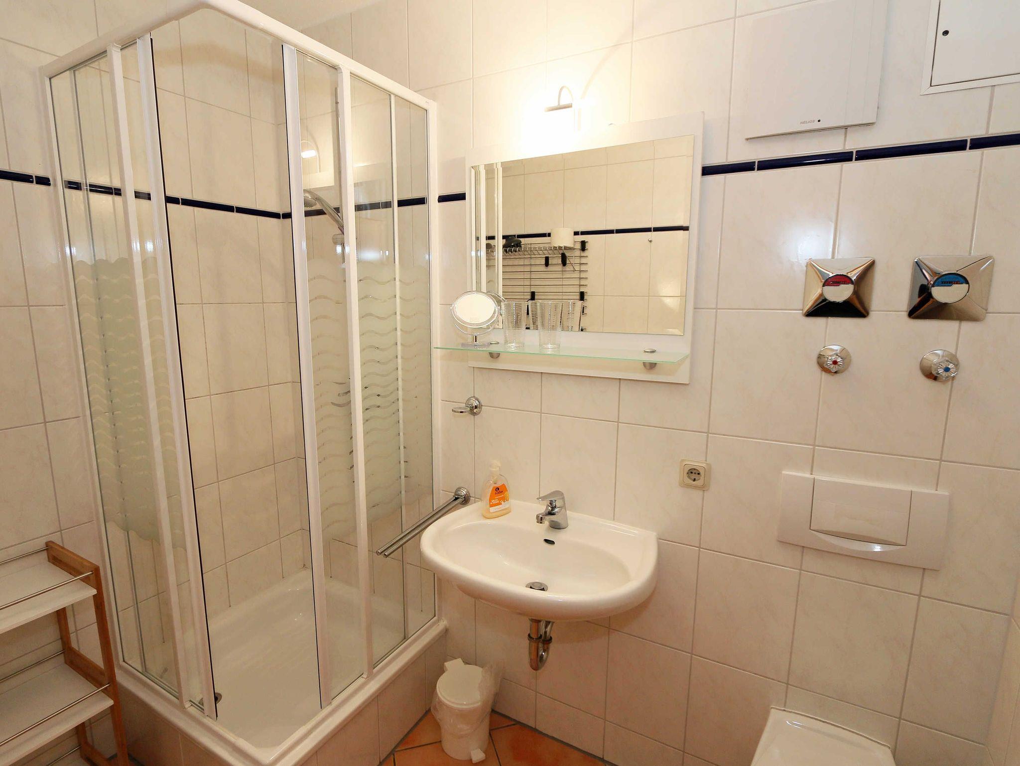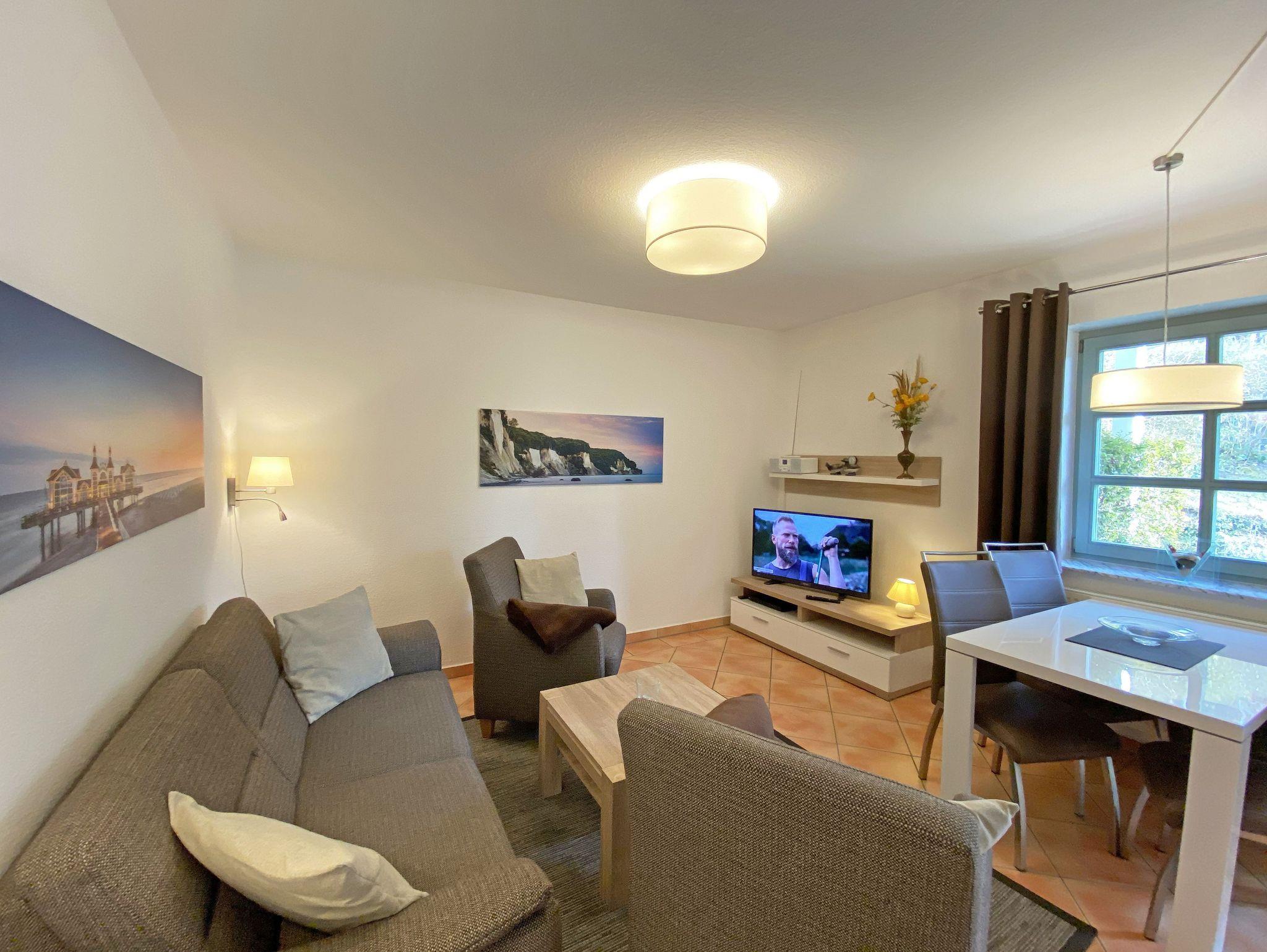 Die ca. 57m² große Nichtraucher-Wohnung befindet sich im Erdgeschoss des Hauses Südstrand und bietet Ihnen ausreichend Platz für 2 bis 4 Personen. Der moderne Wohnbereich lädt mit einer gemütlichen Polsterecke mit Couchtisch und Leselampe zur Entspannung ein. Für Ihre Unterhaltung können Sie dabei einen Flachbild-TV, einen DVD-Player und eine Mini-Stereo-Anlage nutzen. Der angrenzende Essbereich wird durch eine moderne Küchenzeile mit einer Kühl-Gefrierkombination, einem Geschirrspüler, einen Backofen und 4-Zonen Ceran-Kochfeld, einer Kaffeemaschine, einen Toaster und einen Wasserkocher sowie diverse Küchenutensilien, abgerundet. Der freundliche Essplatz befindet sich direkt am Fenster. Vom Wohnbereich gelangen Sie auf die überdachte und bestuhlte Terrasse (Ost), welche Sie bereits in den Morgenstunden mit Sonne verwöhnt. Alle Räumlichkeiten können Sie vom Flur mit Garderobe erreichen sowie beide Schlafzimmer. Im ersten Schlafzimmer befinden sich ein Doppelbett (1,80 m x 2,00 m) mit Federkernmatratzen und Nachttischablagen und ein großer Kleiderschrank. Das kleinere Schlafzimmer ist mit einem Doppelbett (1,60 m x 2,00 m) und einem Kleiderschrank ausgestattet. Beide Schlafzimmer können durch Außenrollos verdunkelt werden, somit steht einem ruhigen Schlaf nichts im Wege. Der Sanitärbereich wird durch eine Dusche, WC, Fön und einem Waschplatz abgerundet. Ein kleiner Abstellraum bietet eine gute Möglichkeit Dinge zu verstauen. Unteranderem befinden sich hier diverse Reinigungsutensilien. Haustiere sind nicht erlaubt. Auch im Urlaub brauchen Sie auf einen Internetzugang (WLAN) in Ihrer Wohnung nicht zu verzichten. Dieser ist inklusive. Die Münzbetriebene Sauna steht allen Gästen des Hauses zur Verfügung. Ein inklusiver PKW-Stellplatz befindet sich direkt am Haus. Die Erstausstattung eines Wäschepaketes (komplette Bettwäsche, 1 Duschhandtuch, 2 kleine Handtücher) können Sie bis 14 Tage vor Anreise gegen einen Aufpreis dazu buchen oder durch eigene ergänzen. Ab 2 gebuchten Paketen erhalten Sie einmalig 1 Geschirrhandtuch und 1 Duschvorleger hinzu.