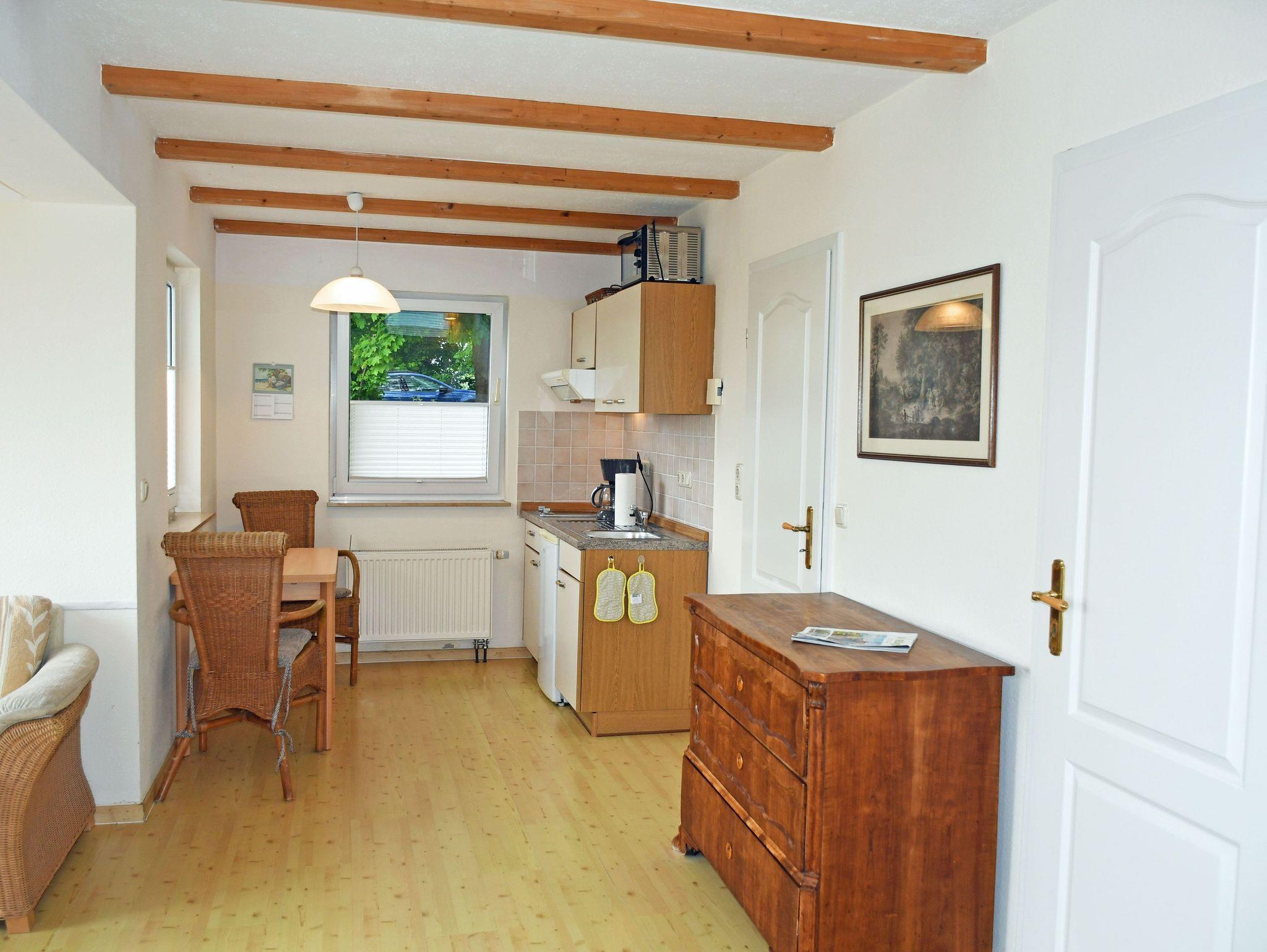 Unsere ruhig gelegene, helle und lichtdurchflutete 2-Raum-Ferienwohnung mit Meerblick ist wie folgt ausgestattet: