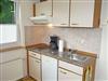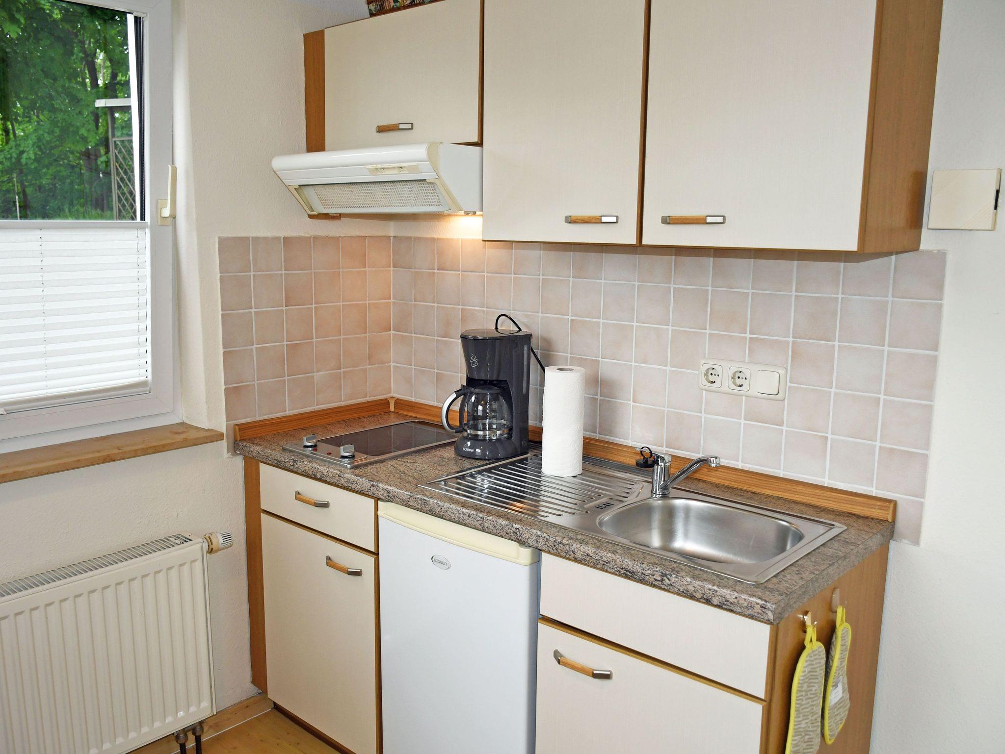 * separate Einbauküche mit 2- Platten-Kochfeld, Backofen, Kühlschrank mit Gefrierfach, Toaster, Kaffeemaschine,