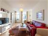 * Wohnbereich mit aufklappbarer Schlafcouch, 2 Sessel, Couchtisch, Anrichte mit Flat-TV, Radio, DVD-Spieler
