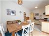 * Wohnküche, ausgestattet mit: großem Backofen mit Cerankochfeld, Dunstabzugshaube, Kühlschrank mit Gefrierfach, Geschirrspüler, Toaster, Kaffeemaschine, Wasserkocher, Mikrowelle und diverse Küchenutensilien sowie einem Esstisch mit Sitzbank und Stühlen