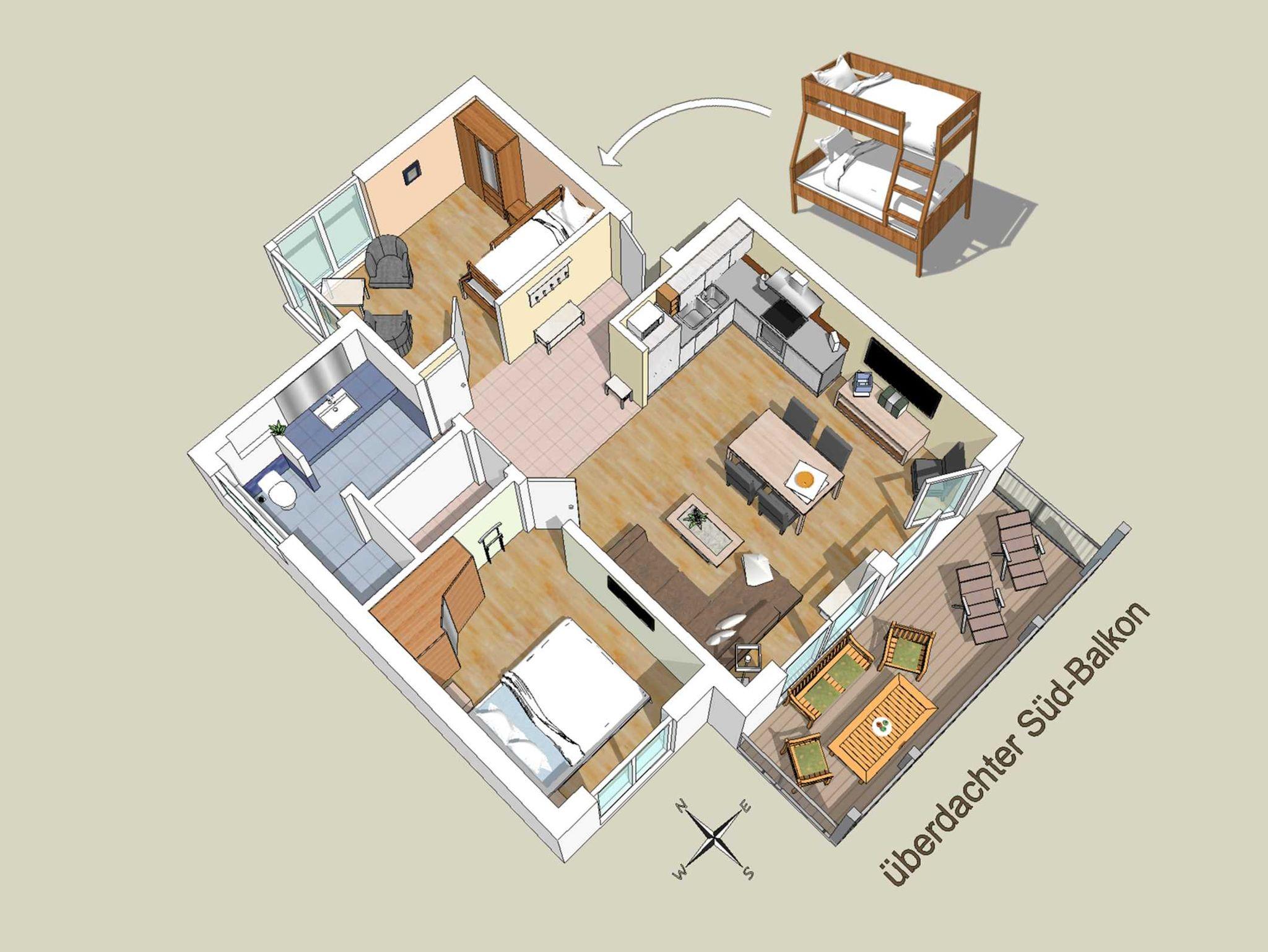 Komfortable 3 Zimmerwohnung für 4 Personen im Erdgeschoß, ca. 70 qm, ebenerdig