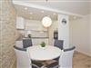 Kochen und Essen wird in der offenen Küche der Ferienwohnung in Göhren auf der Insel Rügen zu einem echten Leckerbissen. Der hell und freundlich konzipierte Raum im Raum schließt direkt an den Wohnbereich an und hält alles bereit, was Sie brauchen: ein hochwertiges Cerankochfeld mit vier Platten, einen Backofen sowie einen Toaster, einen Wasserkocher und eine Kaffeemaschine. Ein Kühlschrank ist ebenso vorhanden wie reichlich Küchenutensilien. Abgerundet wird die Küchenausstattung durch den Geschirrspüler, der den Abwasch für Sie erledigt. So können Sie in Ihrem Urlaub vollauf entspannen und müssen sich nicht um Nebensächlichkeiten kümmern. Ob Sie in der Ferienwohnung frühstücken, zu Mittag oder zu Abend essen: Der runde Esstisch mit vier modernen Sesseln bietet der ganzen Familie Platz.