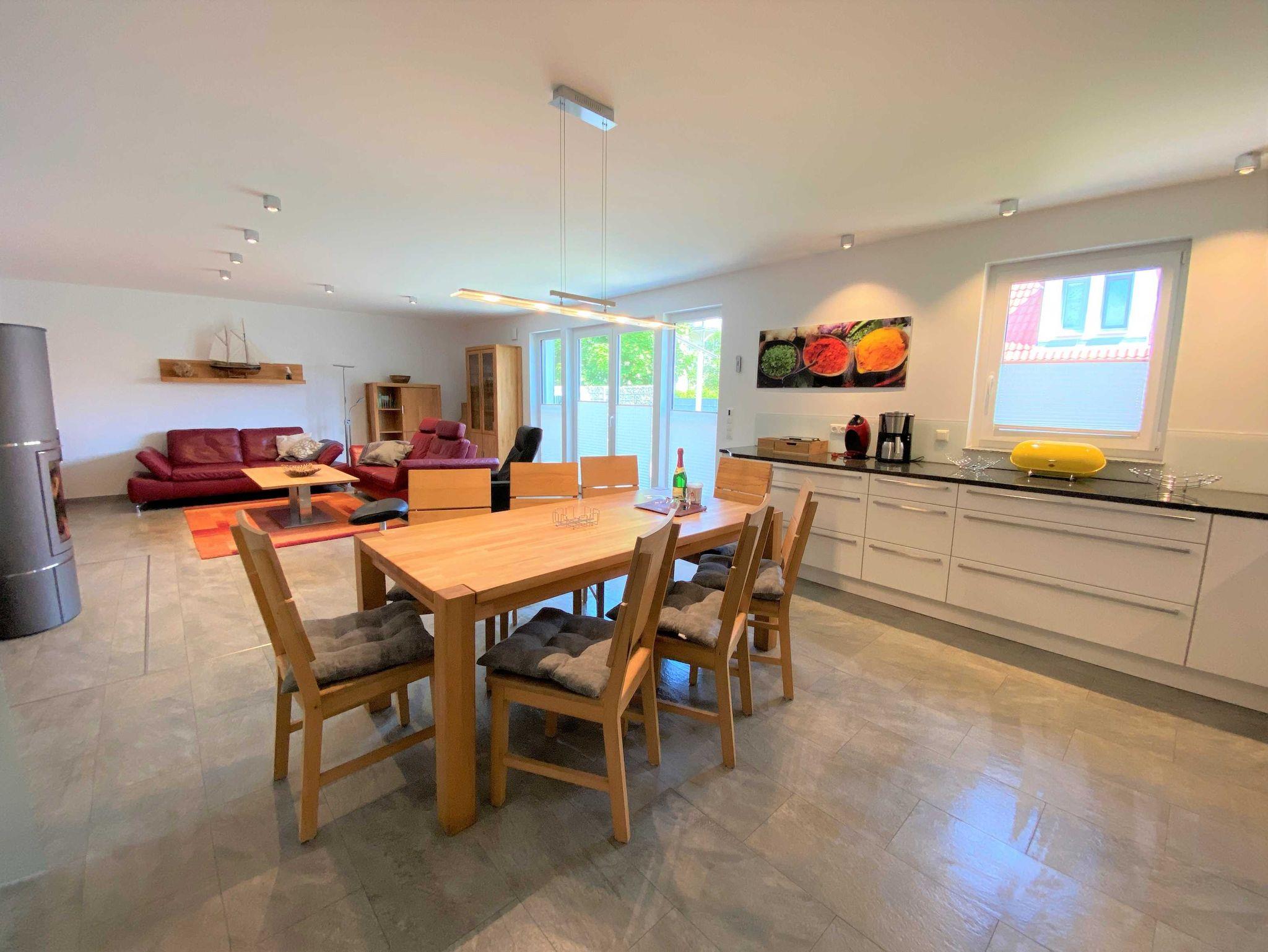 Das offene und großzügig geschnittene Haus verfügt über eine große Wohnküche mit angrenzenden Wohnzimmer. Perfekt für einen Urlaub mit Familie oder Freunden. Auf 200qm können bis zu 8 Personen nächtigen, auch unsere Vierbeiner sind herzlich Willkommen.