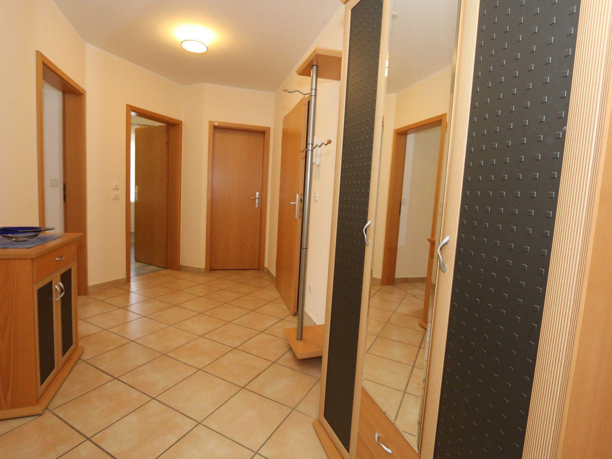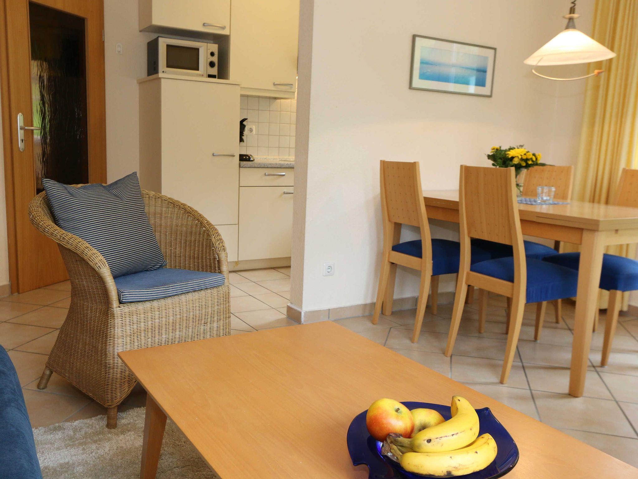 Die lichtdurchflutete, komfortable Nichtraucherwohnung verläuft auf über 78 m² und ist ideal für 2 bis 4 Personen geeignet. Ein Kleinkind (3 Jahre) im Kinderreisebett kann als Aufbettung (5. Person) untergebracht werden. Die beiden Terrassen (Richtung Westen und Süden) laden zum Verweilen ein und erlauben es Ihnen den ganzen Tag die mitwandernde Sonne zu genießen. Der kombinierte Wohn- und Essbereich ist mit einer hellen Küchenzeile ausgestattet. Die Küchenzeile beinhaltet ein Ceranfeld, Backofen, Geschirrspüler, Mikrowelle, Kühlschrank mit Gefrierfach, Kaffeemaschine, Senseo Kaffeeautomat, Toaster, Wasserkocher sowie diverse Küchenutensilien. Der dazugehörige Essbereich umfasst einen Esstisch mit 4 Stühlen. Ein Wohnbereich mit Sofa, Sessel, Couchtisch, Vitrine, Leselampe, Flatscreen-TV mit DVD-Player, Stereoanlage mit CD-Player und eine kleine Auswahl an Gesellschaftsspielen runden das Ganze ab. Das 1. Schlafzimmer ist mit einem Doppelbett (1,80 m x 2,00 m), 2 Nachtschränken, einen Flachbild-TV und Kleiderschrank ausgestattet. Das 2. Schlafzimmer verfügt ebenfalls über ein Doppelbett (1,80 m x 2,00 m) und 2 Nachtschränke und einen Kleiderschrank. Für einen ruhigen Schlaf sorgen in beiden Schlafzimmern Rollläden. Das großzügige Bad ist mit einer Dusche mit flachem Einstieg, Fön, WC und Waschtisch ausgestattet. In einem separaten Abstellraum, welcher zur Wohnung gehört finden Sie diverse Reinigungsutensilien sowie einen Wäscheständer. Auch im Urlaub brauchen Sie auf einen Internetzugang (WLAN über Hotspot) in Ihrer Wohnung nicht zu verzichten. Dieser ist inklusive. 1x Kinderreisebett (ohne Matratze und Bett Inlett) ist für unsere kleinen Gäste inklusive. Ein Hochstuhl kann gegen eine Extragebühr dazu gebucht werden. Haustiere sind nicht erlaubt. In einem Gemeinschaftsraum können Sie gegen einen Aufpreis eine Waschmaschine und einen Trockner nutzen. Der Parkplatz (Nr. 2) befindet sich direkt auf dem Grundstück. Ihre Fahrräder können Sie auf dem Areal in einen Fahrradschuppen unterstellen. Ein Gemeinschaftsgrillplatz mit massiven Holzbänken und Standgrill ist vorhanden. Die Erstausstattung eines Wäschepaketes (komplette Bettwäsche, 1 Duschhandtuch, 2 kleine Handtücher) können Sie bis 14 Tage vor Anreise gegen einen Aufpreis dazu buchen oder durch eigene ergänzen. Ab 2 gebuchten Paketen erhalten Sie einmalig 1 Geschirrhandtuch und 1 Duschvorleger hinzu.