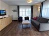 Diese freundliche Wohnung ist aufgeteilt in einen Wohnraum mit Balkon und integrierter Küchenzeile, ein Schlafzimmer und ein Duschbad mit Waschtisch und WC. Das Wohnzimmer begrüßt Sie mit einem Schlafsofa und Sessel sowie Flachbild-TV. Das Schlafzimmer verfügt über ein Doppelbett (1,80m x 2m) sowie einen Kleiderschrank. Die Küchenzeile ist mit Backofen, Geschirrspüler, Cerankochfeld, Kühlschrank mit kleinem Gefrierfach, Cerankochfeld, Mikrowelle, Kaffeemaschine, Wasserkocher und Toaster ausgestattet. Highlights: Kostenfreies WLAN sowie ein frei wählbarer PKW-Stellplatz direkt am Haus.