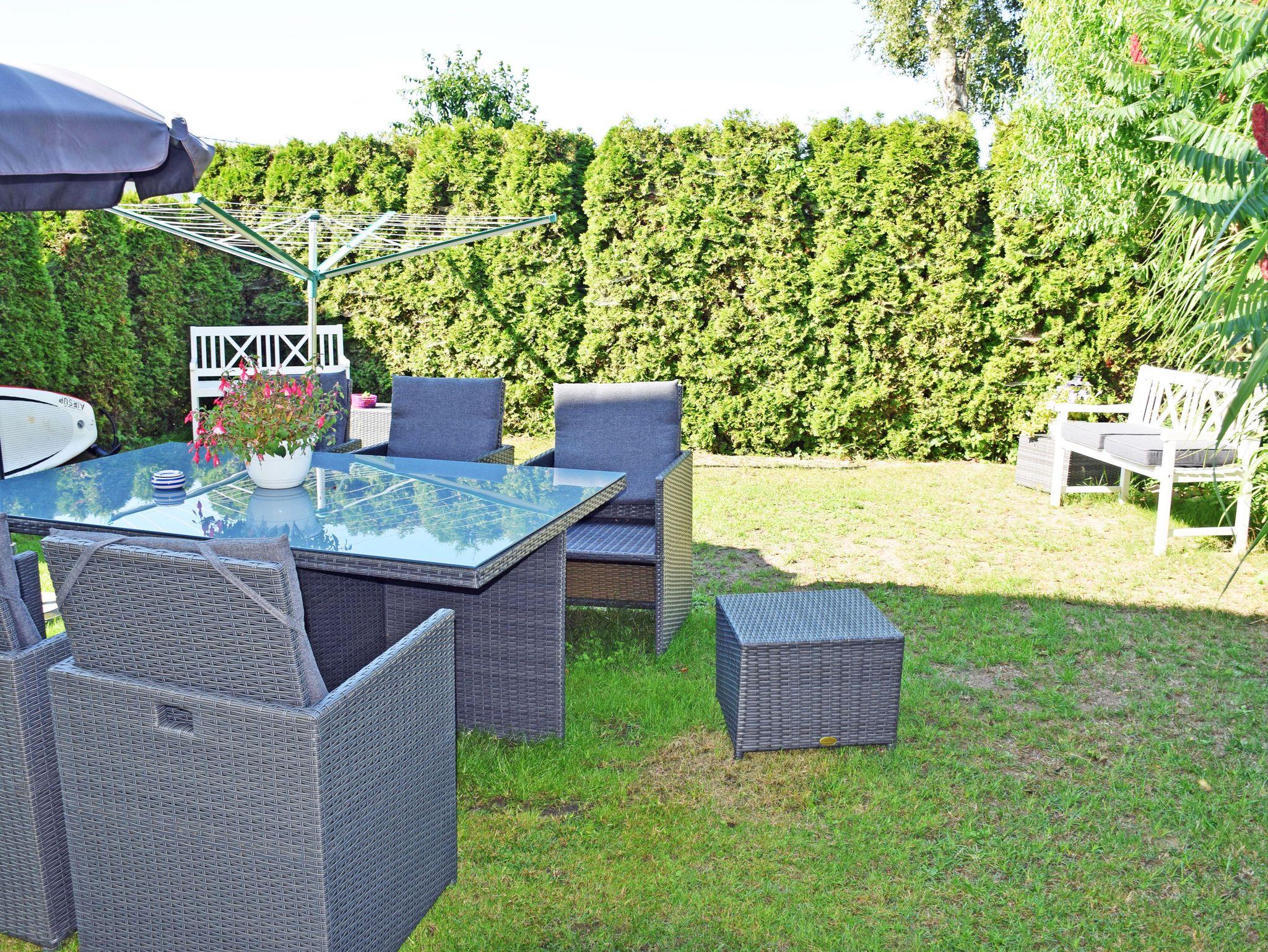 Apartment 5 und 6 haben weder Balkon noch Terrasse - trotzdem können Sie Ihre Zeit draußen verbringen, nutzen Sie den Garten mit neuen schönen und bequemen Gartenmöbeln, Grill usw.