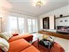 * Großzügiger Wohnbereich mit Ledersitzgarnitur und Couchtisch, Anrichte mit großem Flat-TV sowie CD-Radio-Anlage, Esstisch mit 4 Stühlen und Kamin