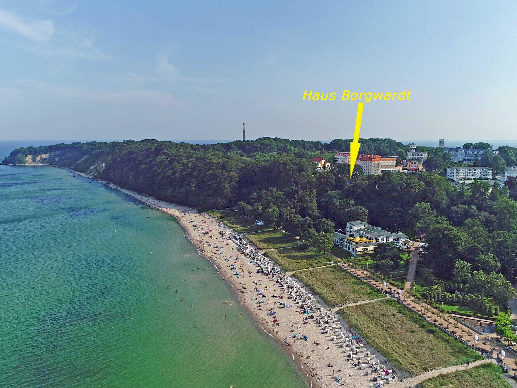 Das Haus „Borgwardt“ befindet sich im Ostseebad Göhren in der Wilhelmstraße, unmittelbar am Göhrener Hochufer. Auch wenn die belaubten Bäume mitunter den direkten Blick aus dem 2. Obergeschoss des Hauses auf die Ostsee behindern, so kann man doch als Gast, die unvergesslichen tollen Ausblicke auf die See genießen. Vom Haus aus können Sie in kurzer Zeit direkt zum schönen Sandstrand und zur Bernsteinterrasse gehen. Die Entfernung beträgt ca. 250 m oder knappe 5 Fußminuten.