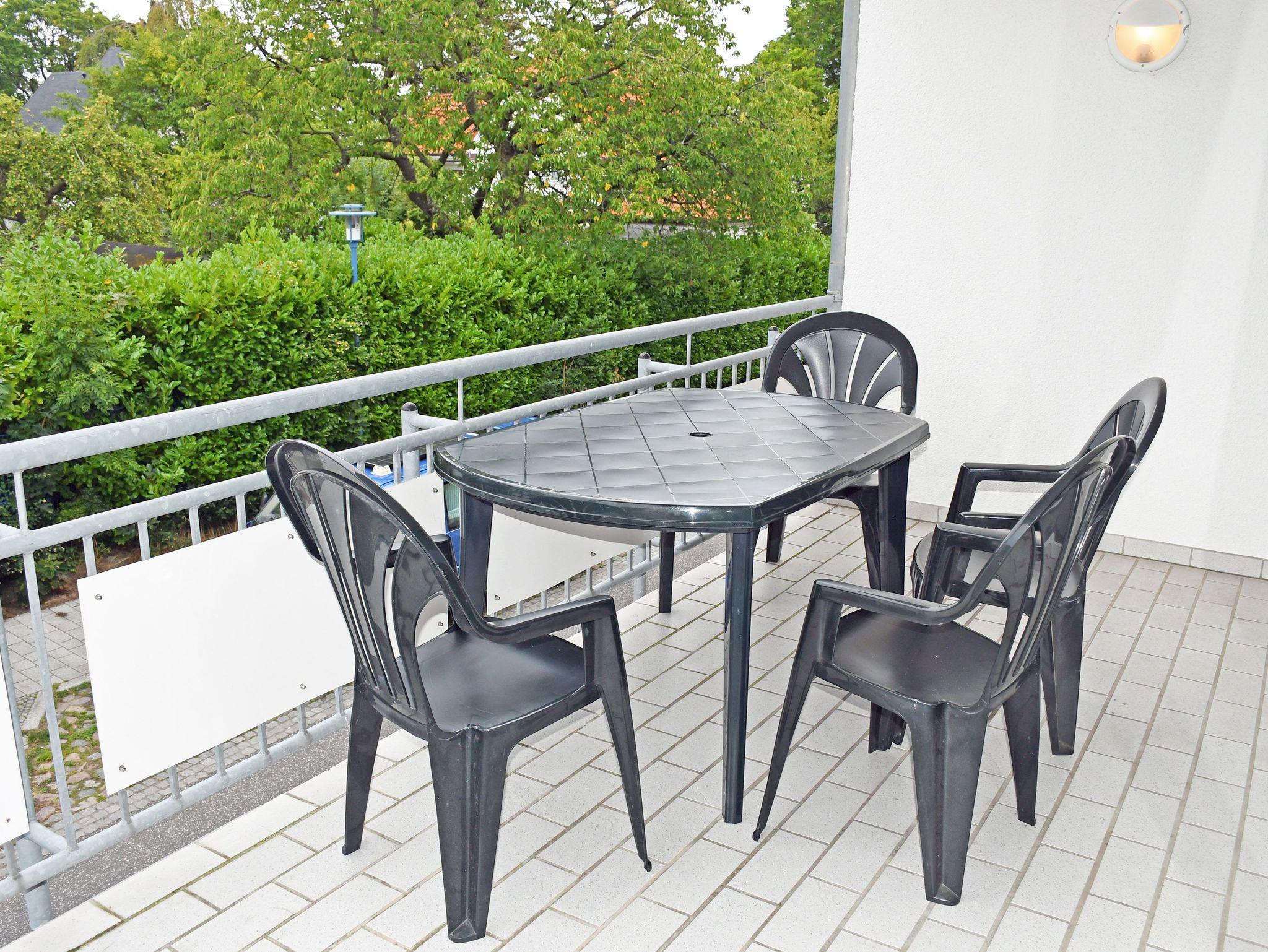 Der schöne Balkon mit Gartenmöbeln lädt zu gemütlichen Stunden ein. Hier können Sie die Abende bei einem Glas Wein ausklingen lassen und jederzeit die gute Ostseeluft und Sonne auf Rügen genießen.